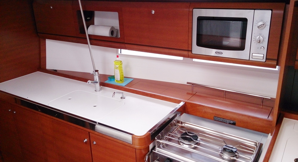 | Outside | 220 V-Landanschluss, Badeplattform, Biminitop, Cockpitdusche, Cockpitlautsprecher, Cockpittisch, Delta-Anker, elektr. Ankerwinsch, Gangway, Solaranlage, Sprayhood |