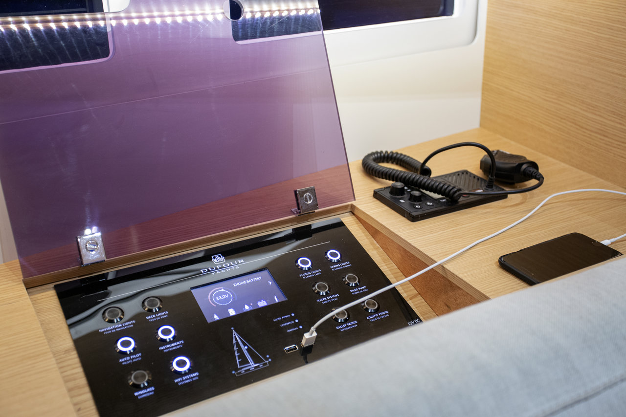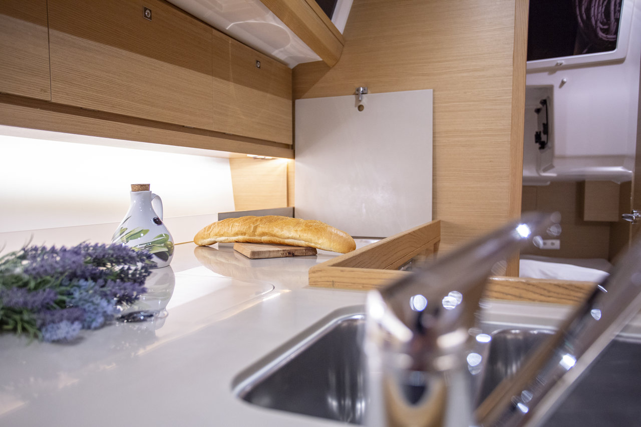 | Outside | Biminitop, Cockpitdusche, Cockpitlautsprecher, Cockpittisch, elektr. Ankerwinsch, Gas-Barbecue-Grill im Cockpit, Sprayhood, Spülbecken im Cockpit |