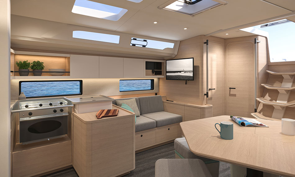 | Inside | Backofen, Frischwasserpumpe, FUSION Sound System, Gasherd, Klimaanlage (Landstrom), Kühlschrank, Ladegerät, Lautsprecher im Salon, LED-Innenleuchten, Moskitonetze, Spülbecken, Weinkühlschrank |