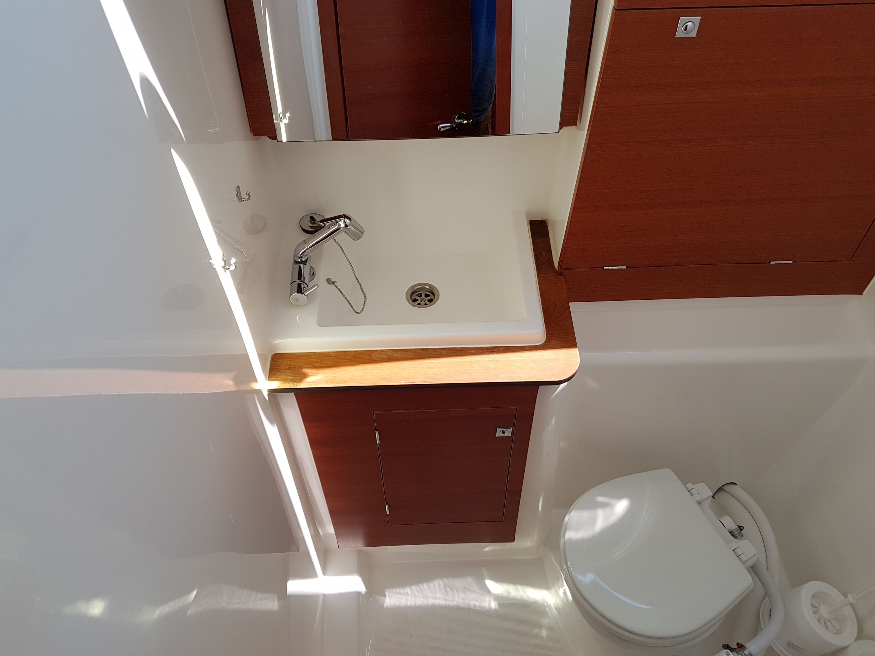 | Navigation | Barometer, Fernglas, GPS mit Kartenplotter im Cockpit, Hafenhandbücher, Handpeilkompass, Navigationsbesteck, Seekarten, Tridata (Log, Echolot, Windm.) |