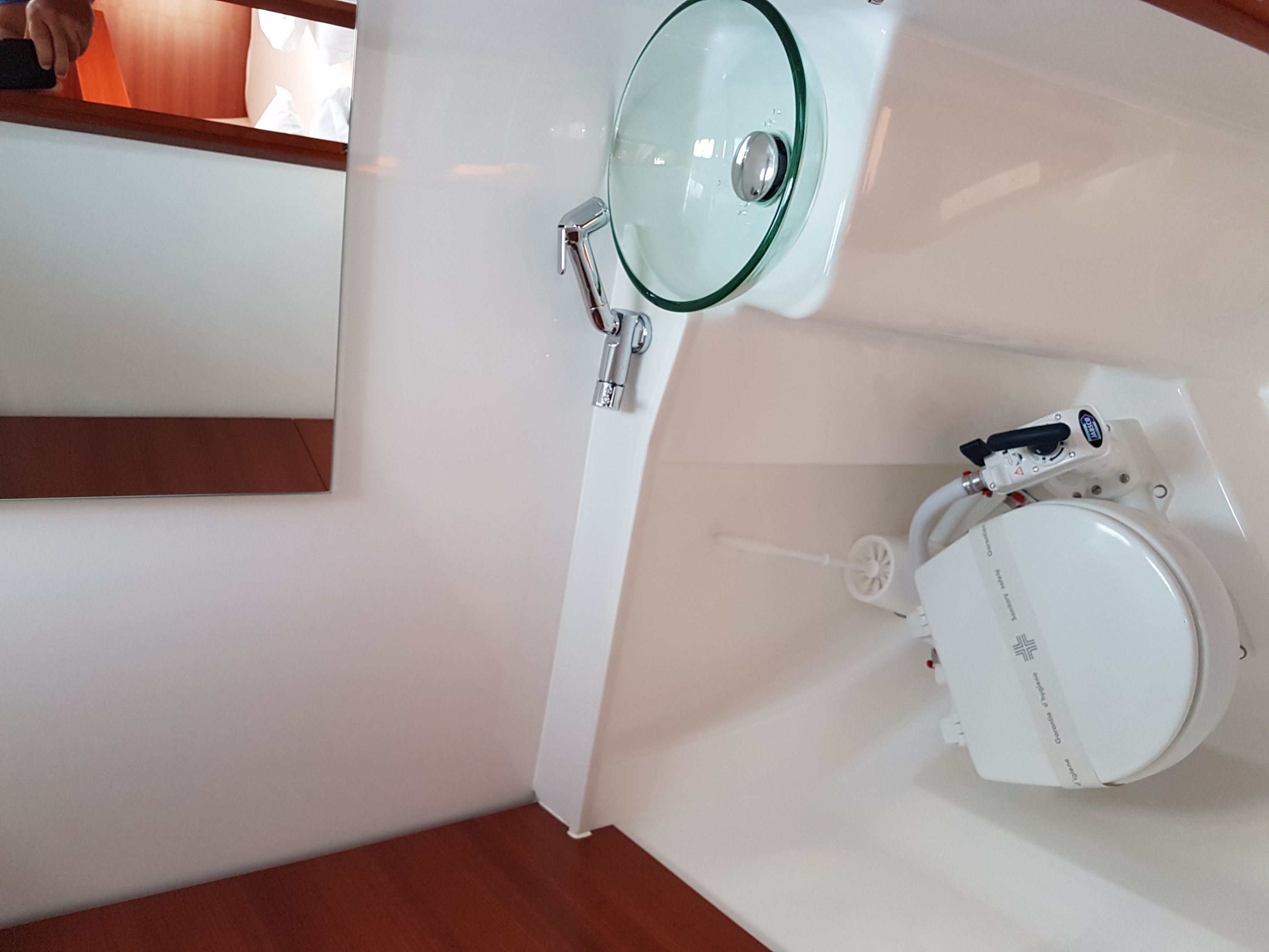 | Inside | Borduhr, elektr. Druckwasserpumpe, Heizung, Klimaanlage (Landstrom), Kühlschrank, Ladegerät, Landstromkabel, LCD Fernseher + DVD, Luftpumpe für Beiboot, Radio mit CD oder MP3, Salontisch absenkbar, Trichter, Warmwasser |