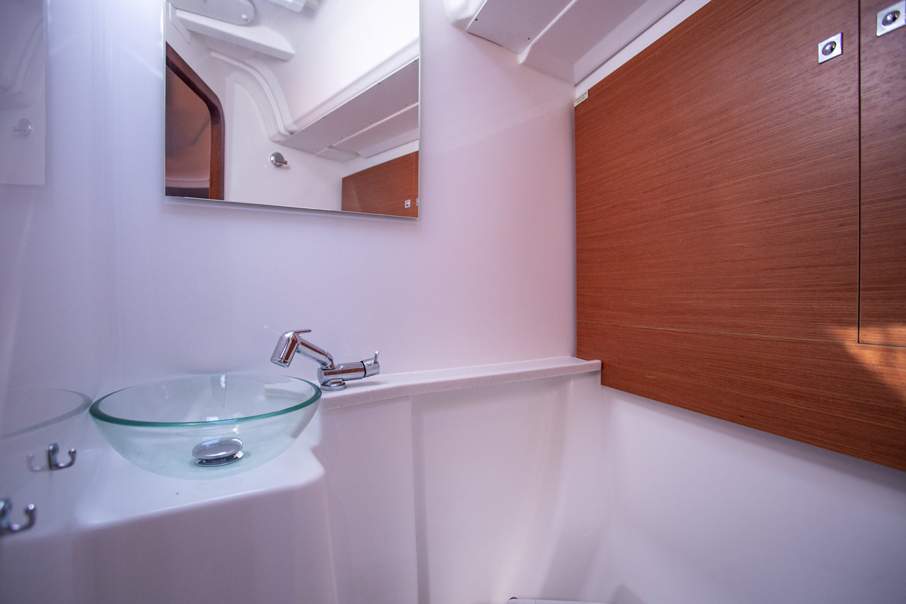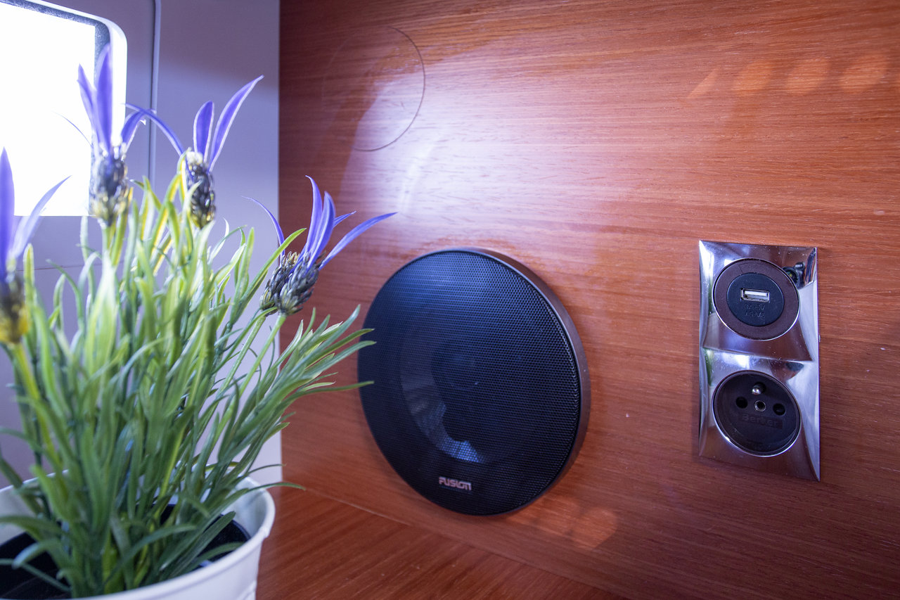 | Outside | Biminitop, Cockpitdusche, Cockpitkühlschrank, Cockpitlautsprecher, Cockpittisch, elektr. Ankerwinsch, Gas-Barbecue-Grill im Cockpit, Sprayhood, Spülbecken im Cockpit |