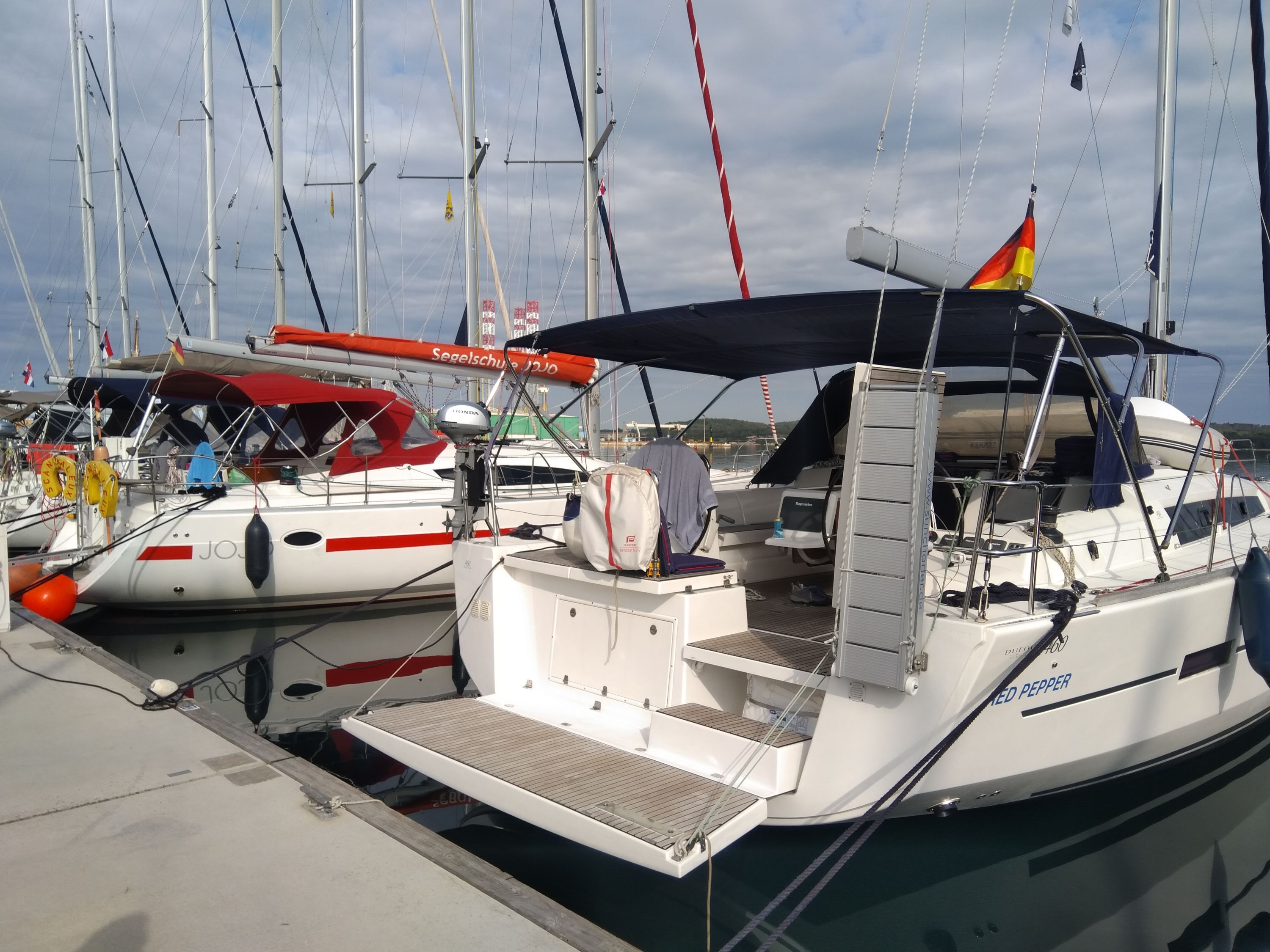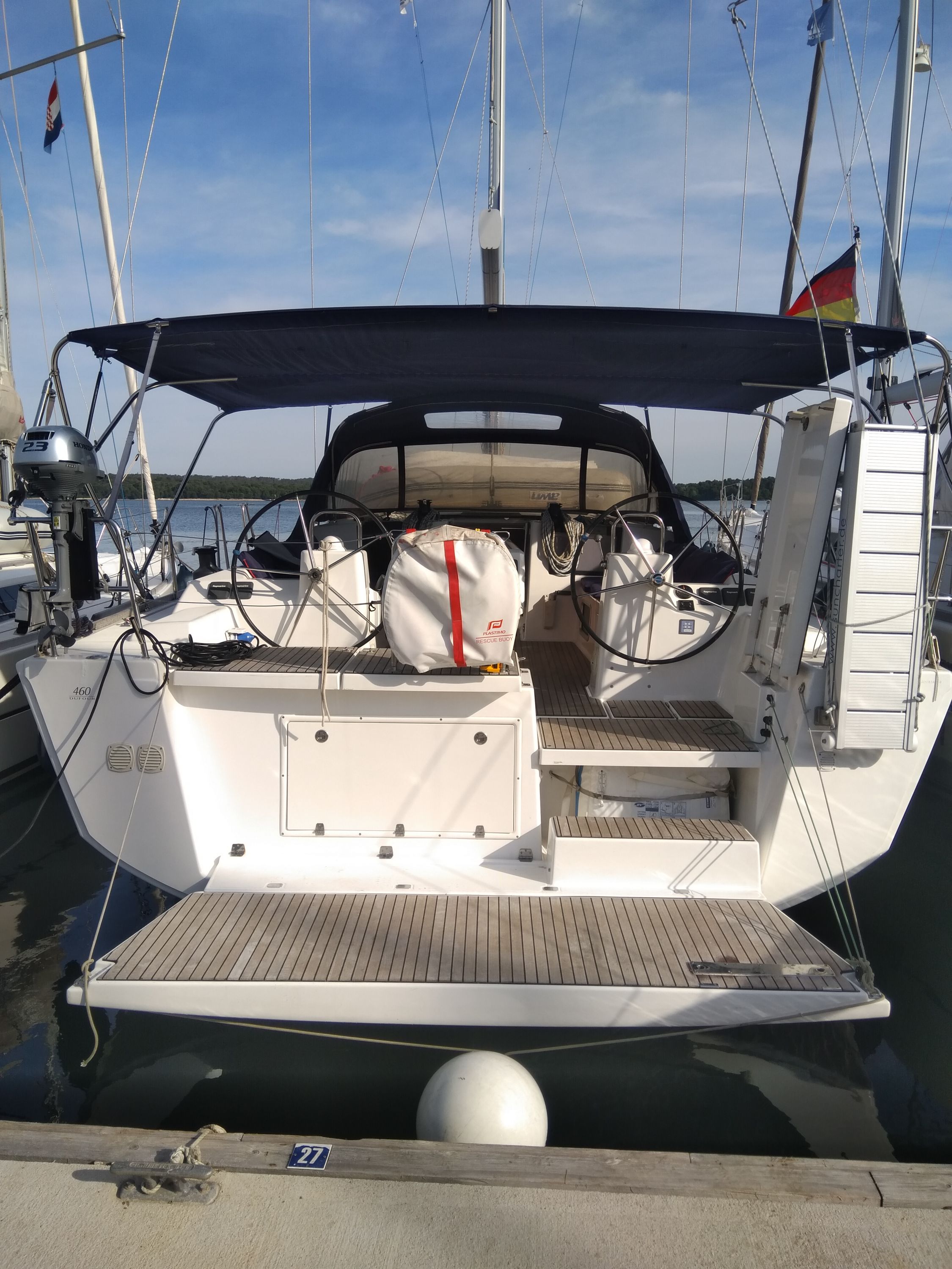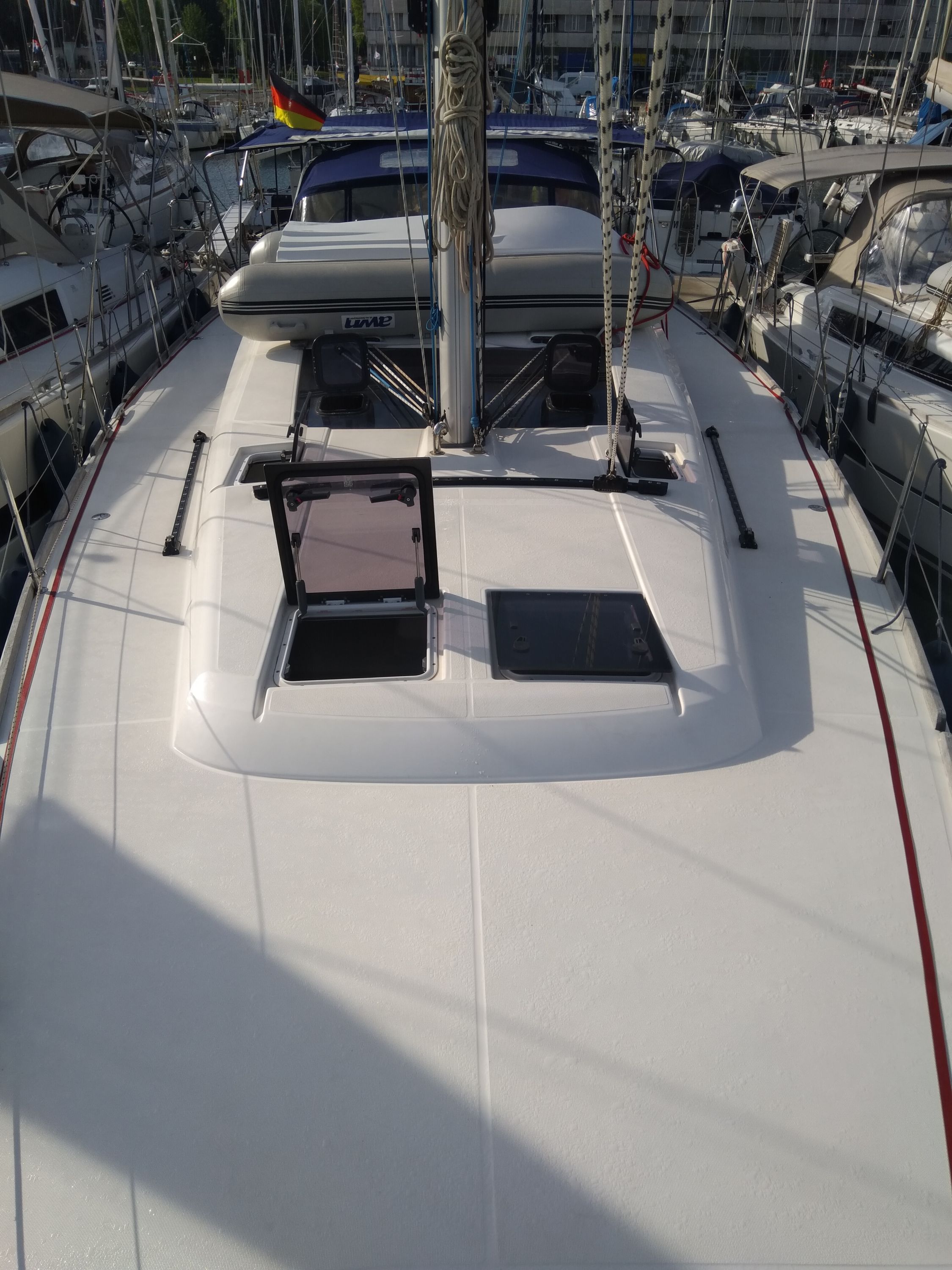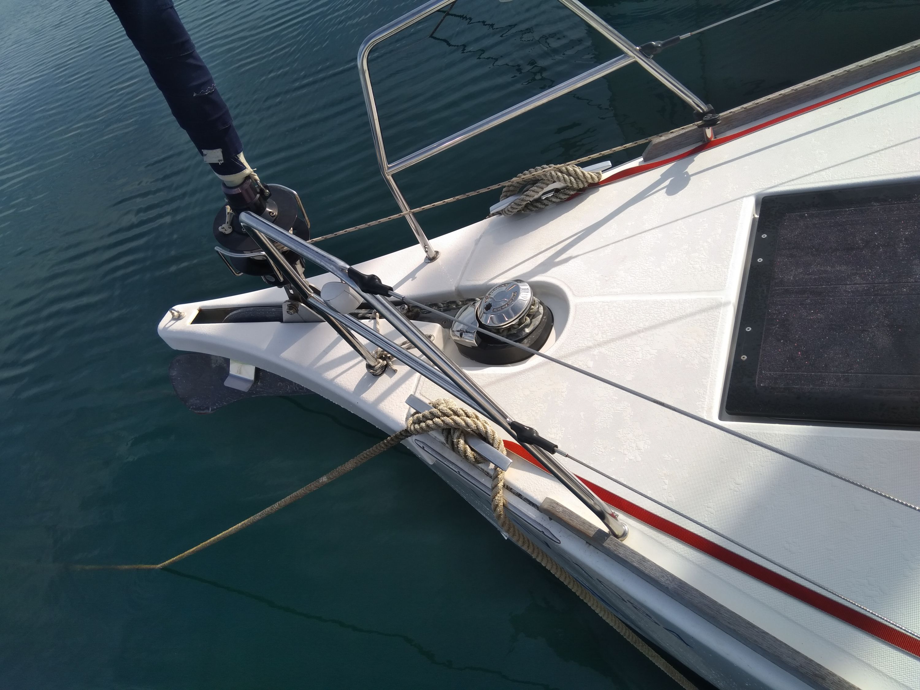 | Outside | Biminitop, Cockpitpolster, elektr. Ankerwinsch, Sprayhood, Treibanker, Windex |