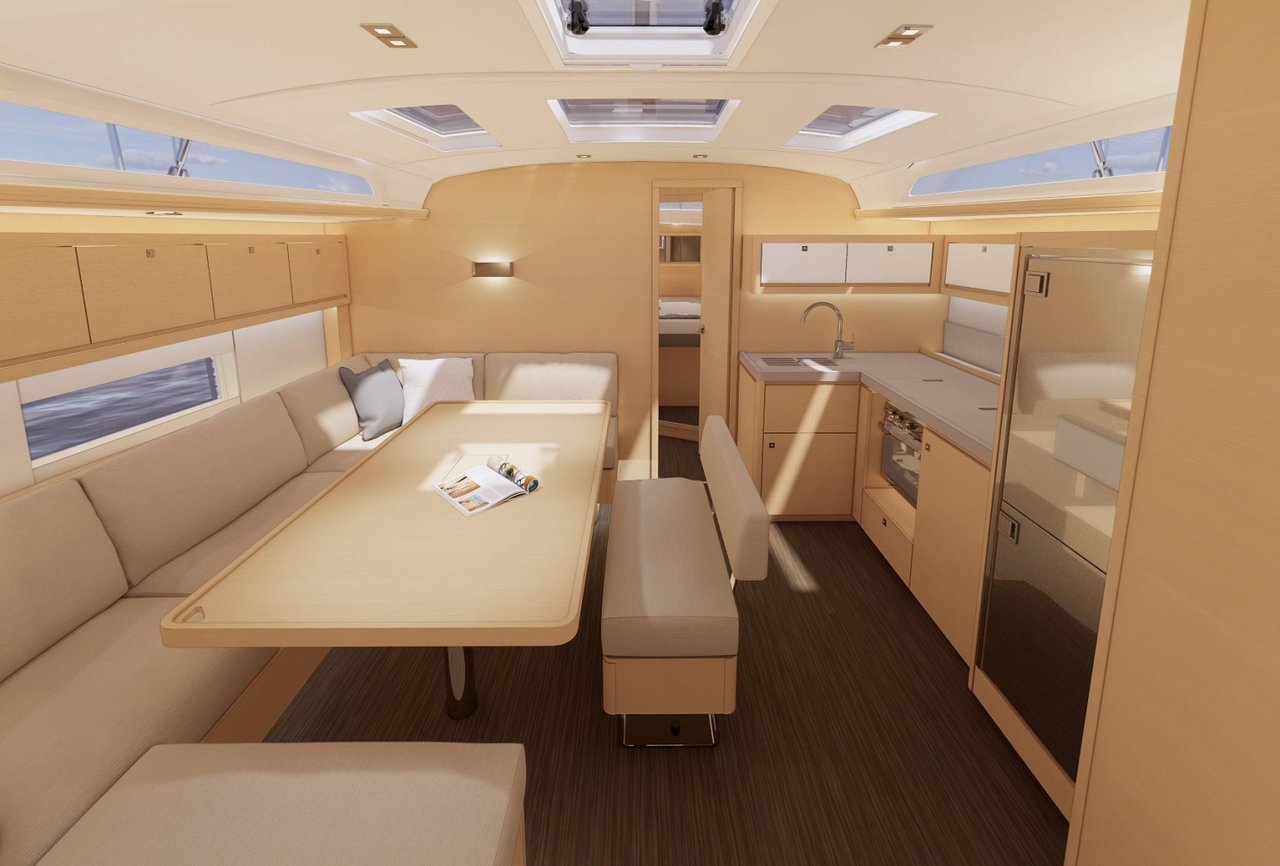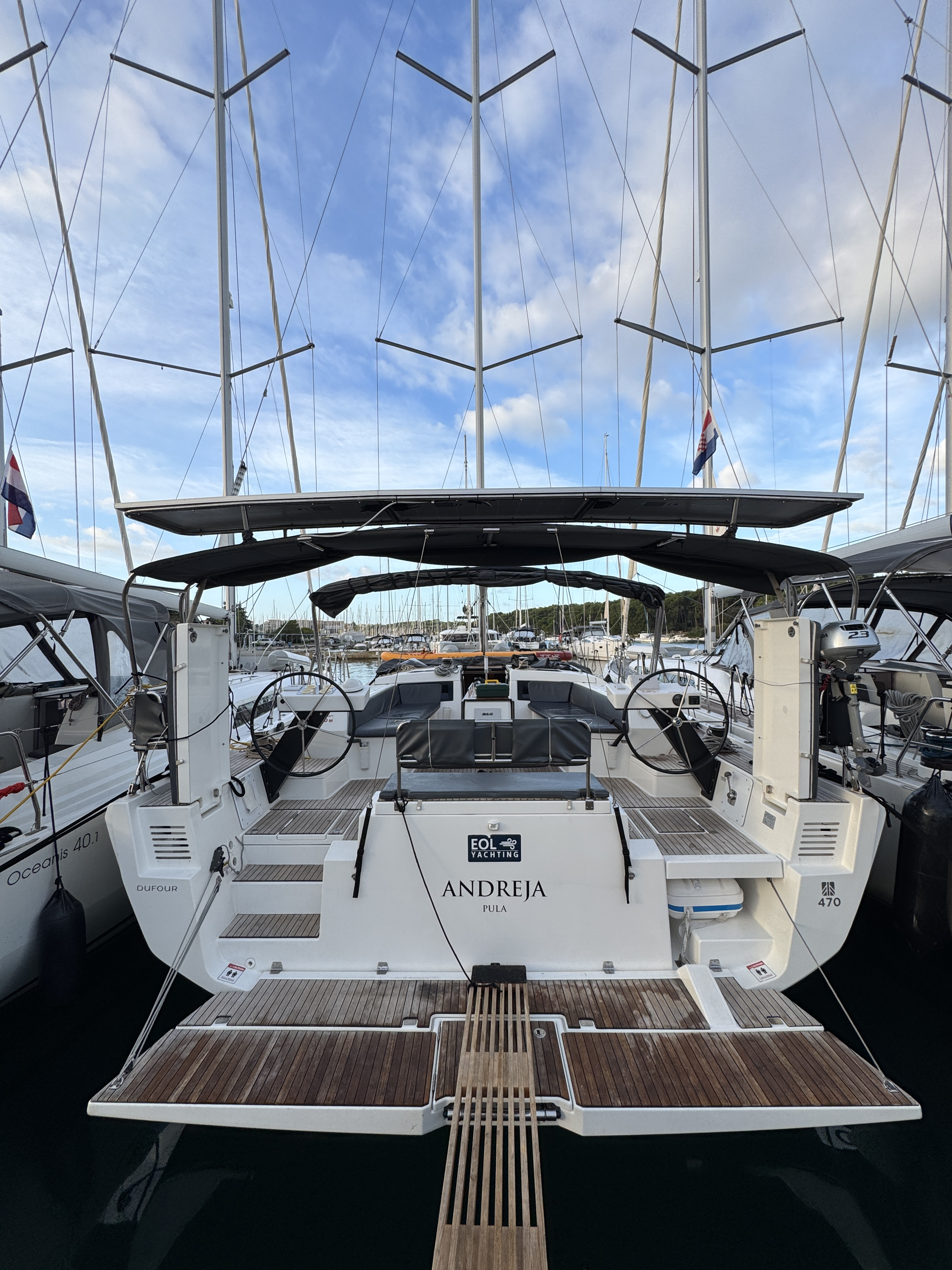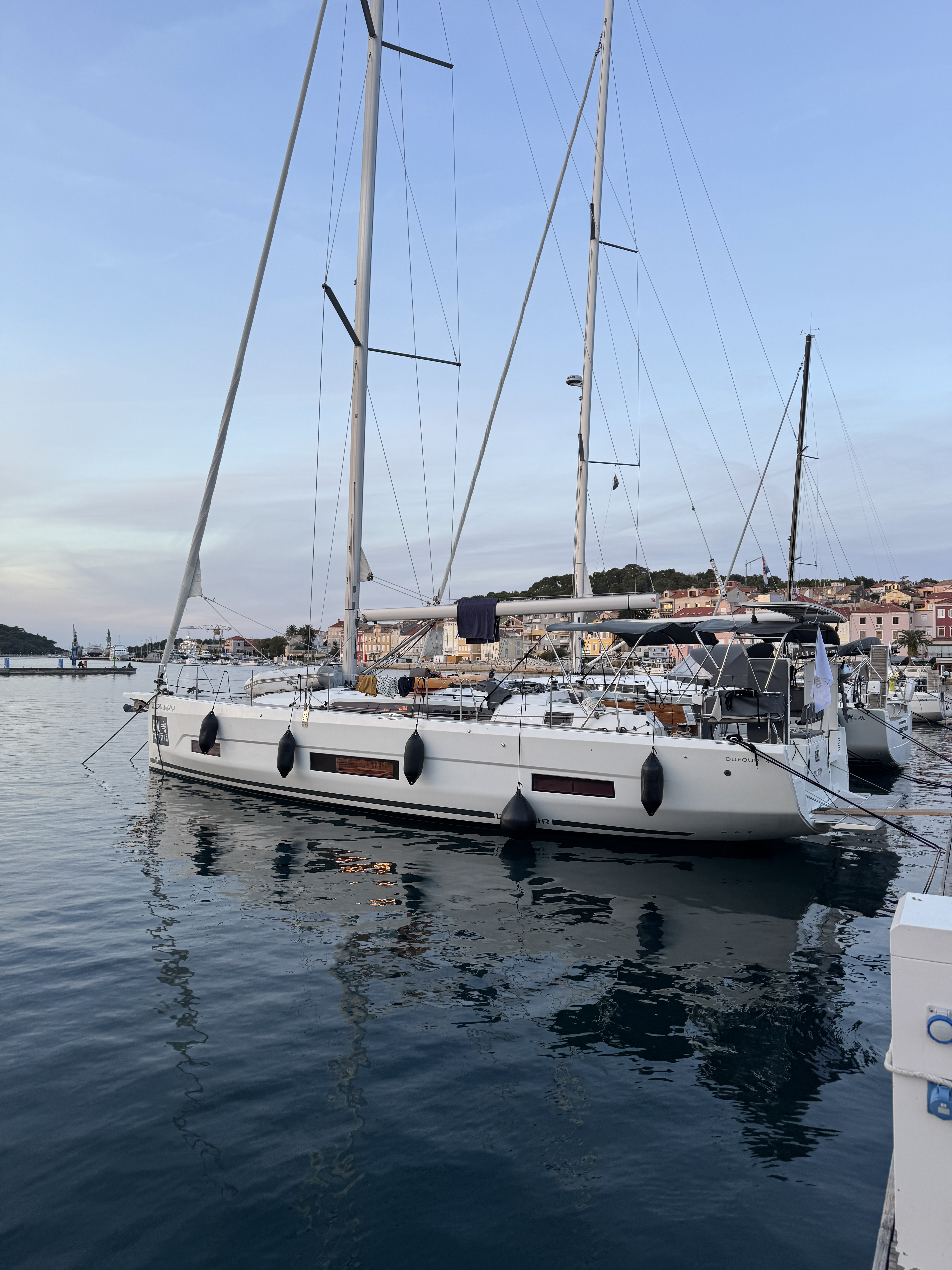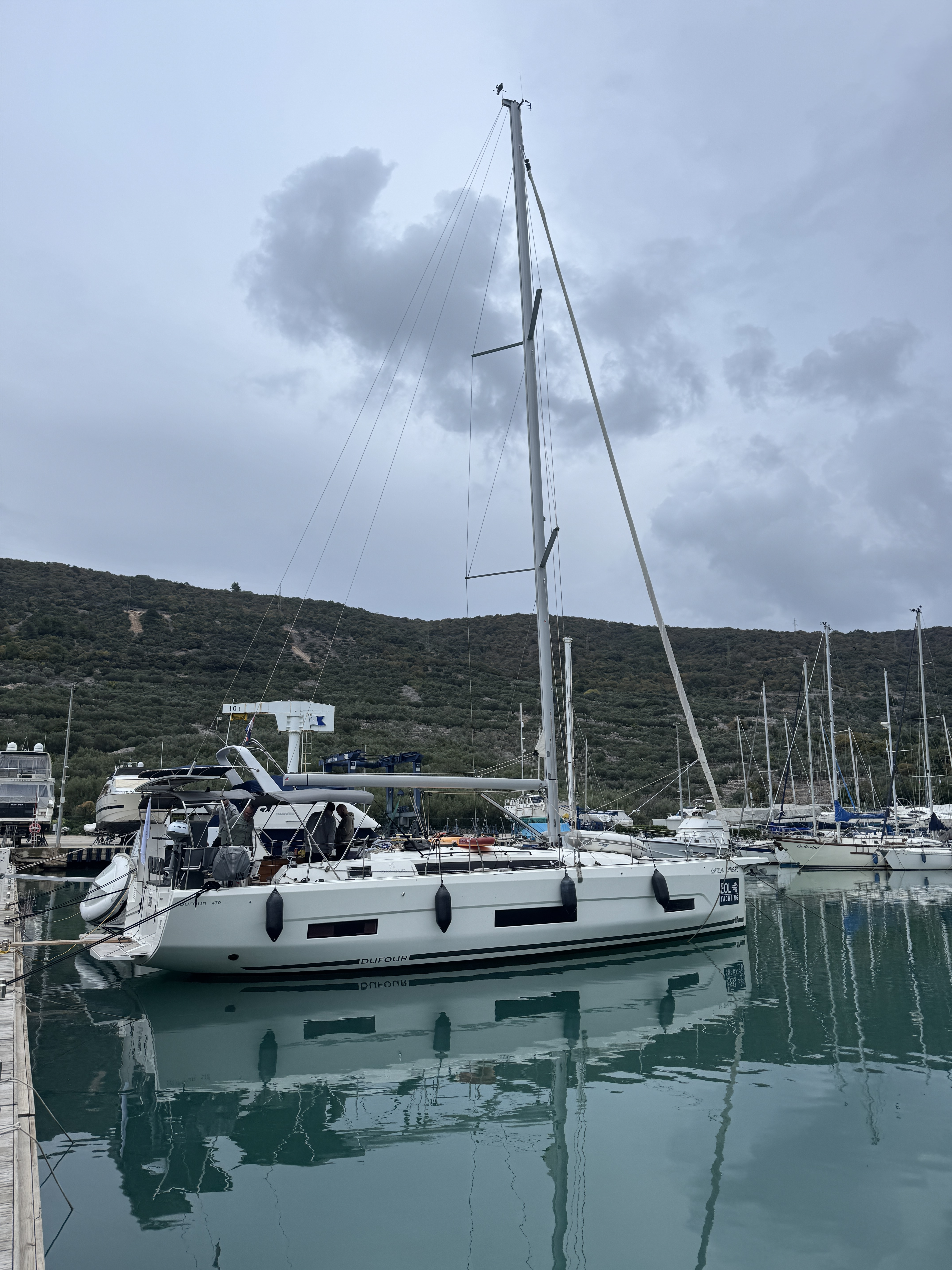 | Outside | 220 V-Landanschluss, Anker mit Kette, Badeleiter, Badeplattform, Biminitop, Bootshaken, Cockpitdusche, Cockpitkühlschrank, Cockpitlautsprecher, Cockpitpolster, Cockpittisch, Deckbürste, Dieselkanister , elektr. Ankerwinsch, Fender, Festmacherleinen, Gangway, Grill, Kugelfender, Kunststoff-Eimer (Pütz), Solaranlage, Sprayhood, Teak im Cockpit, Teakdeck, Treibanker, Unterwasserbeleuchtung, Wasserschlauch, Winschen |