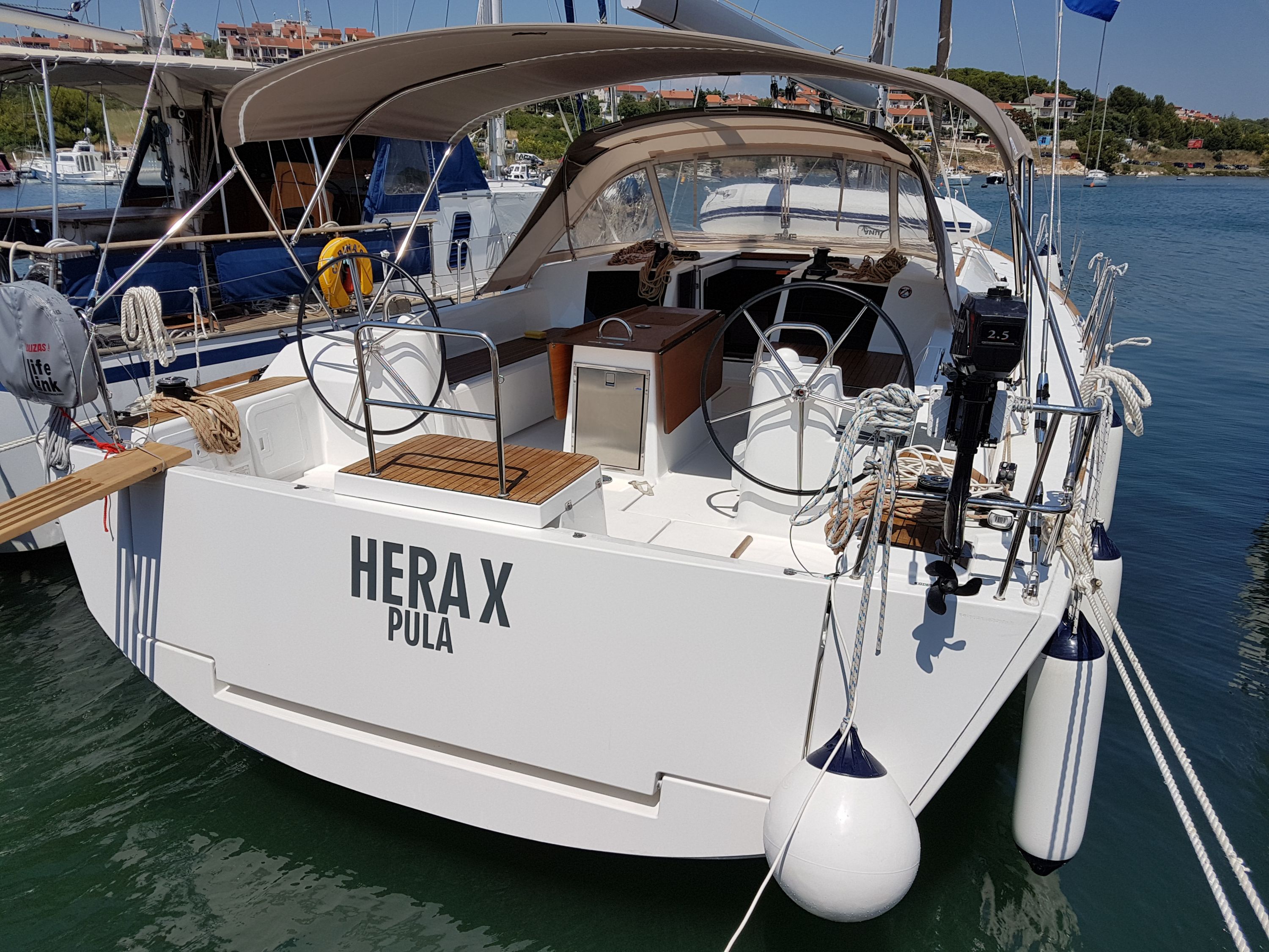 | Safety | Autopilot, Bootsmannstuhl, Bordapotheke, Bordwerkzeug, Bugstrahlruder, elektr. Bilgepumpe, Feststoffschwimmwesten, Feuerlöscher, Navigationslichter, Nebelhorn, Notpinne, Notsignale, Radarreflektor, Rettungsinsel, Taschenlampe, UKW-Funk, Zweitanker |