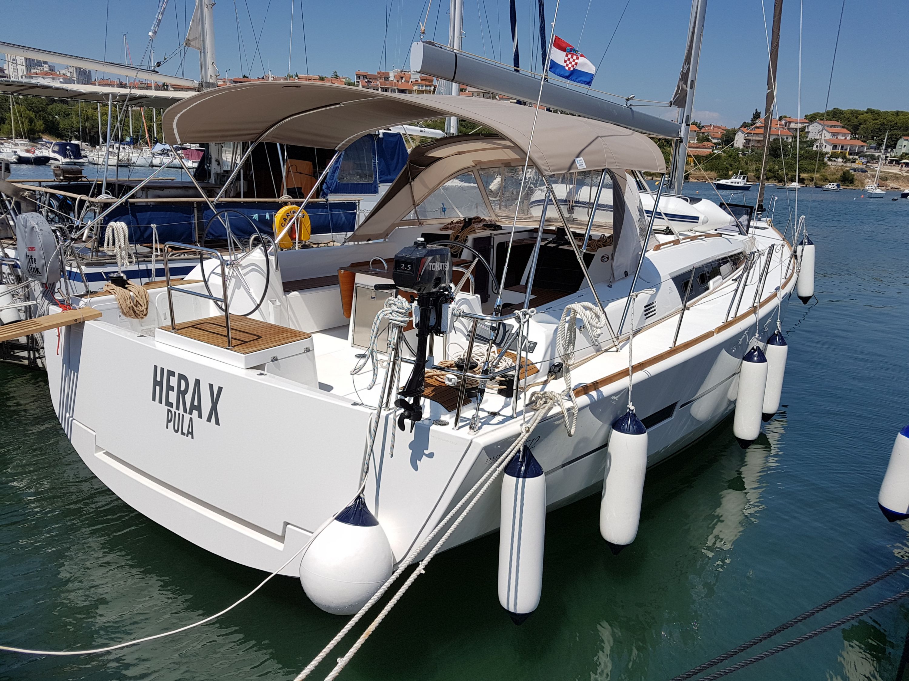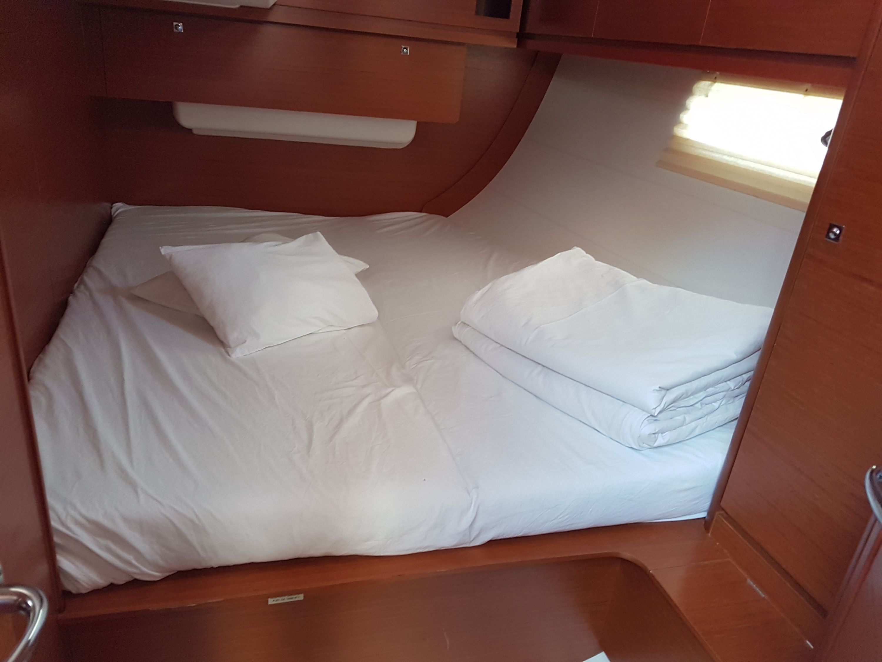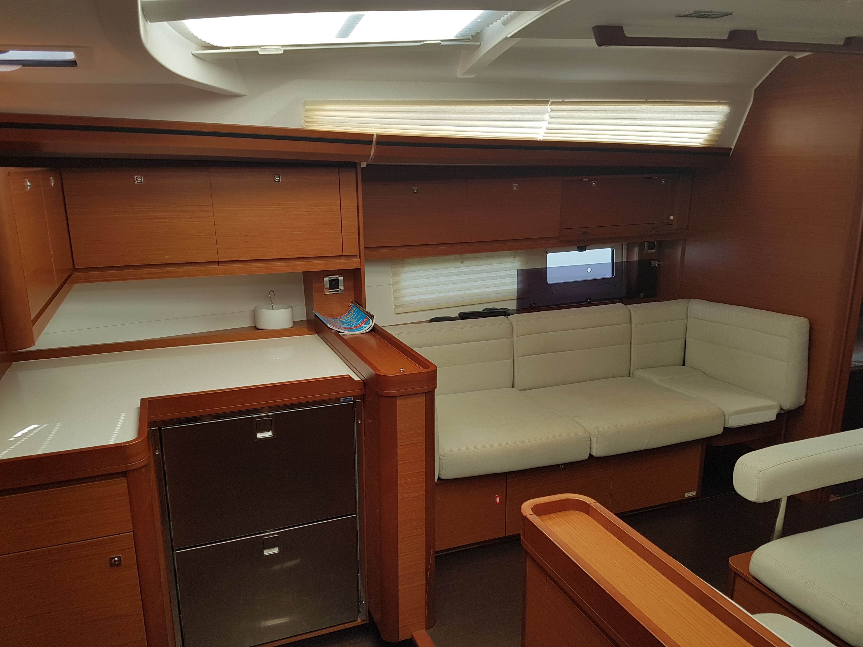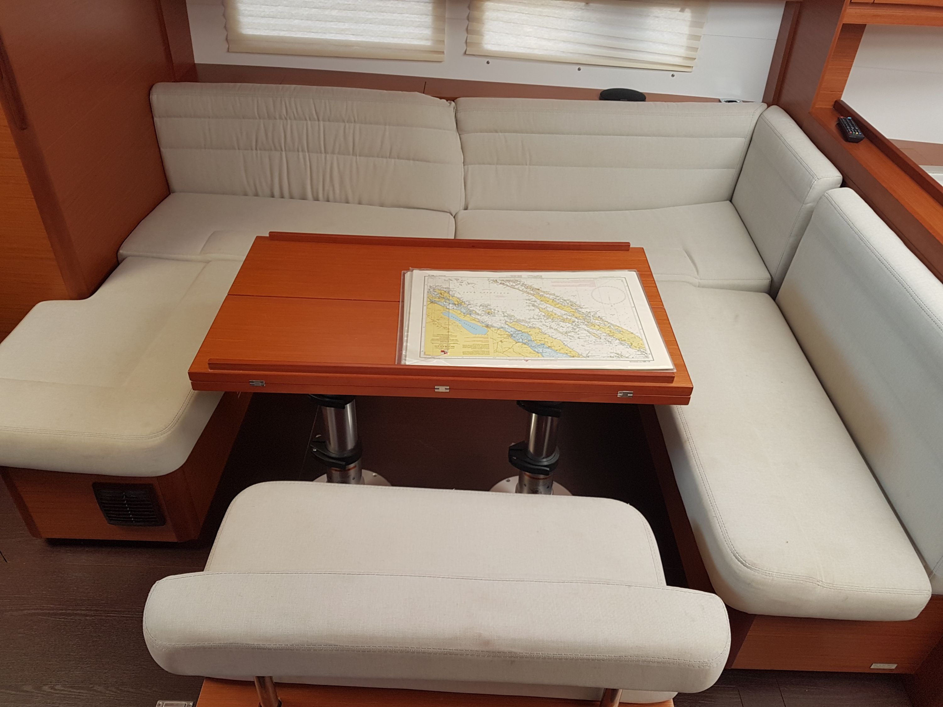 | Inside | Borduhr, elektr. Druckwasserpumpe, Heizung, Klimaanlage (Landstrom), Kühlschrank, Ladegerät, Landstromkabel, LCD Fernseher + DVD, Luftpumpe für Beiboot, Radio mit CD oder MP3, Salontisch absenkbar, Trichter, Warmwasser |