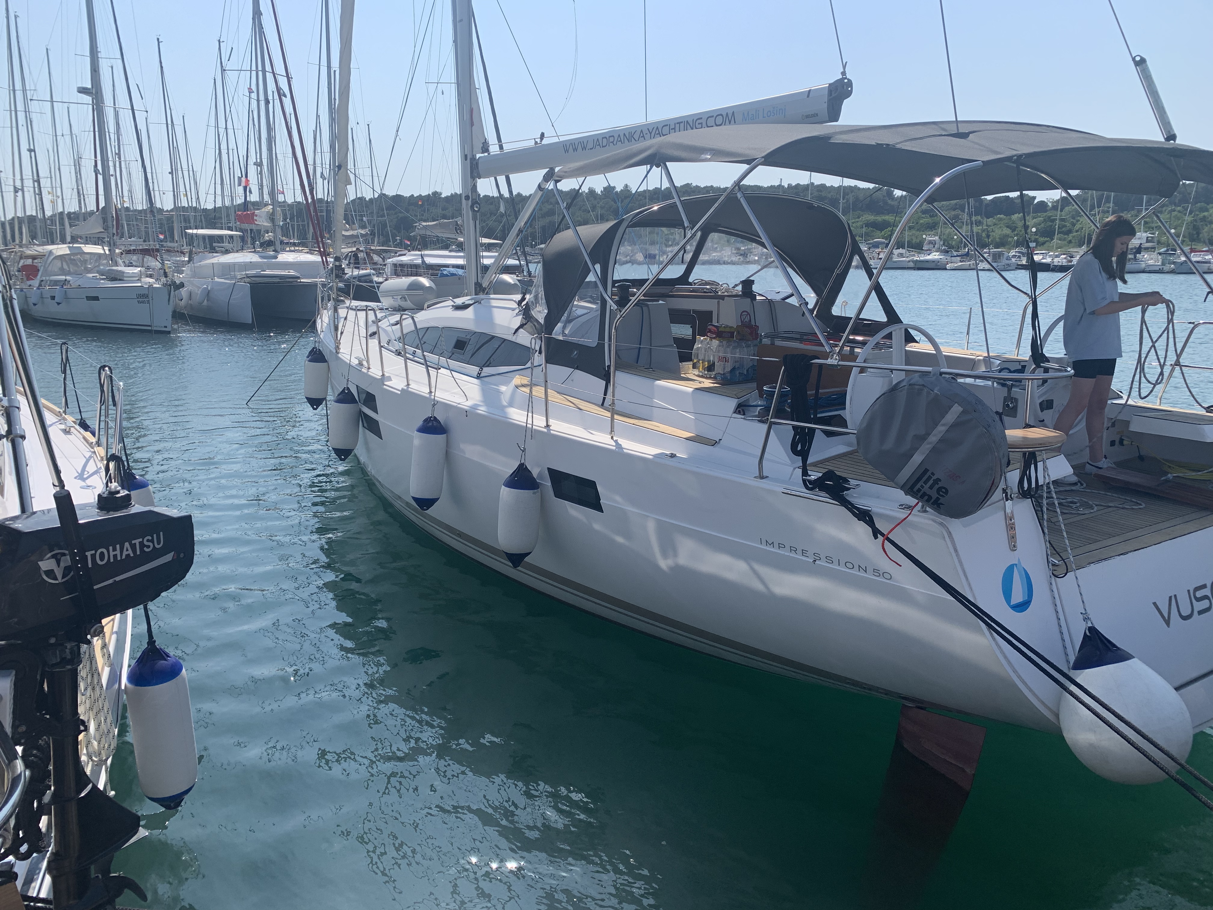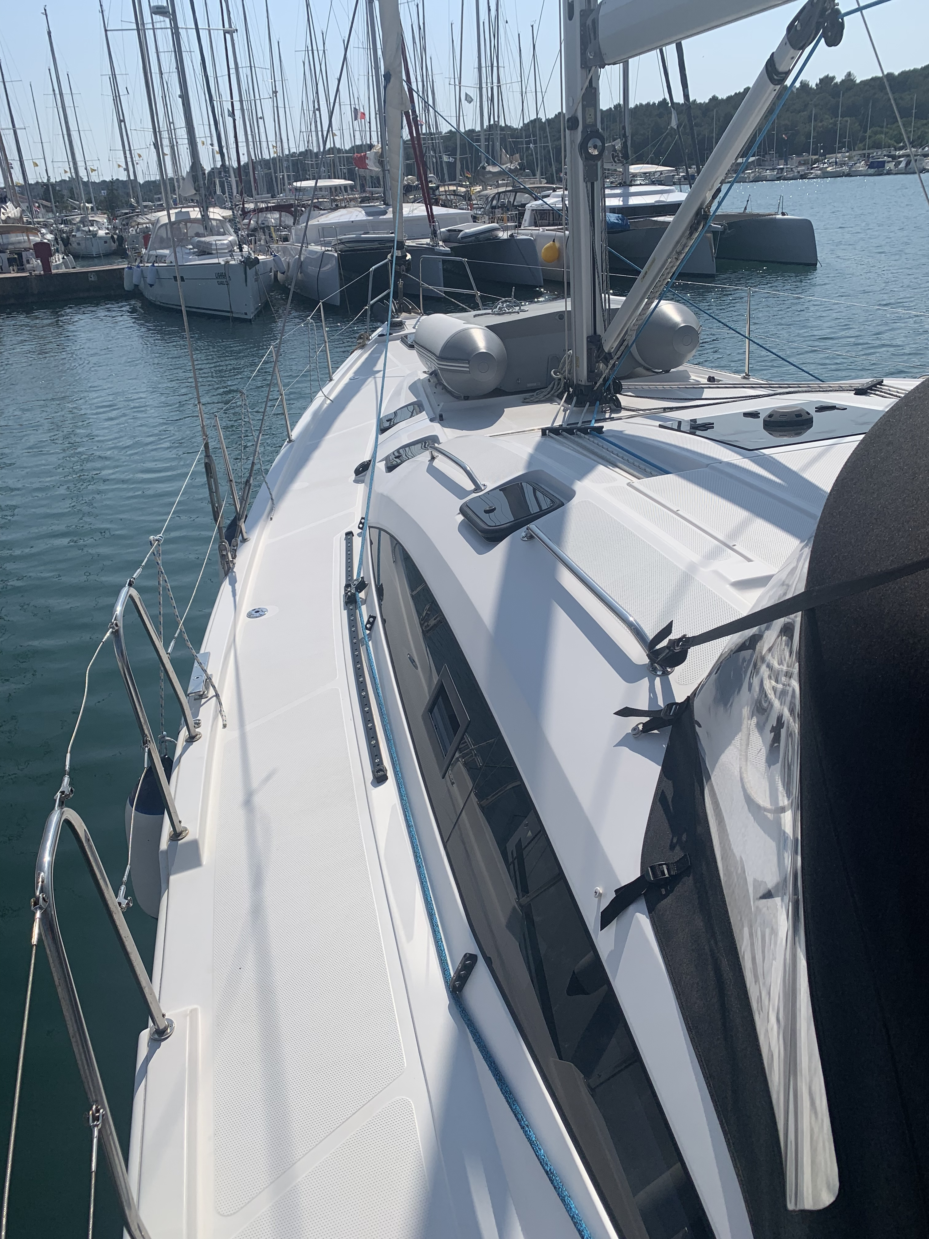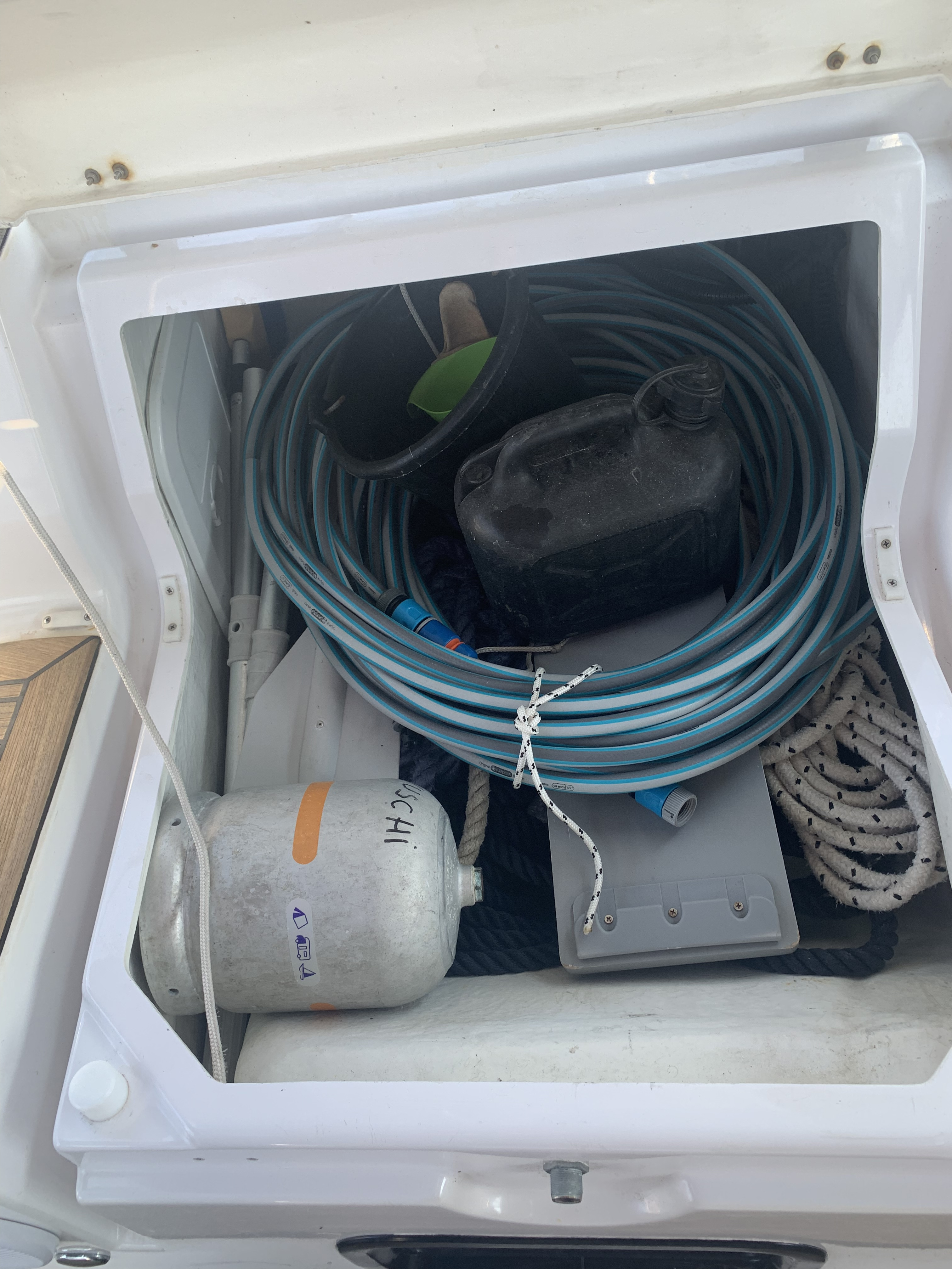 | Outside | Biminitop, Cockpitdusche, Cockpitlautsprecher, Cockpittisch, elektr. Ankerwinsch, Sprayhood |