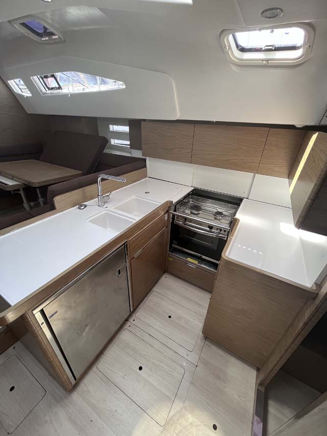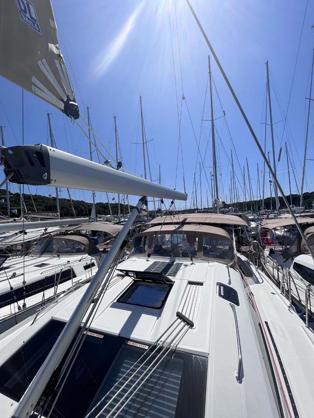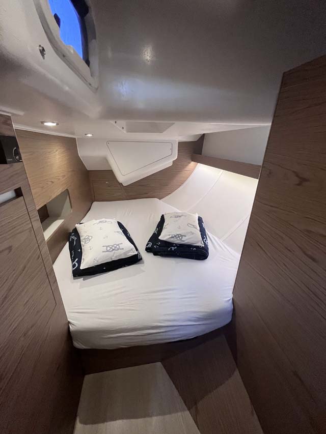 | Navigation | Barometer, Fernglas, GPS mit Kartenplotter im Cockpit, Hafenhandbücher, Handpeilkompass, Navigationsbesteck, Seekarten, Tridata (Log, Echolot, Windm.) |