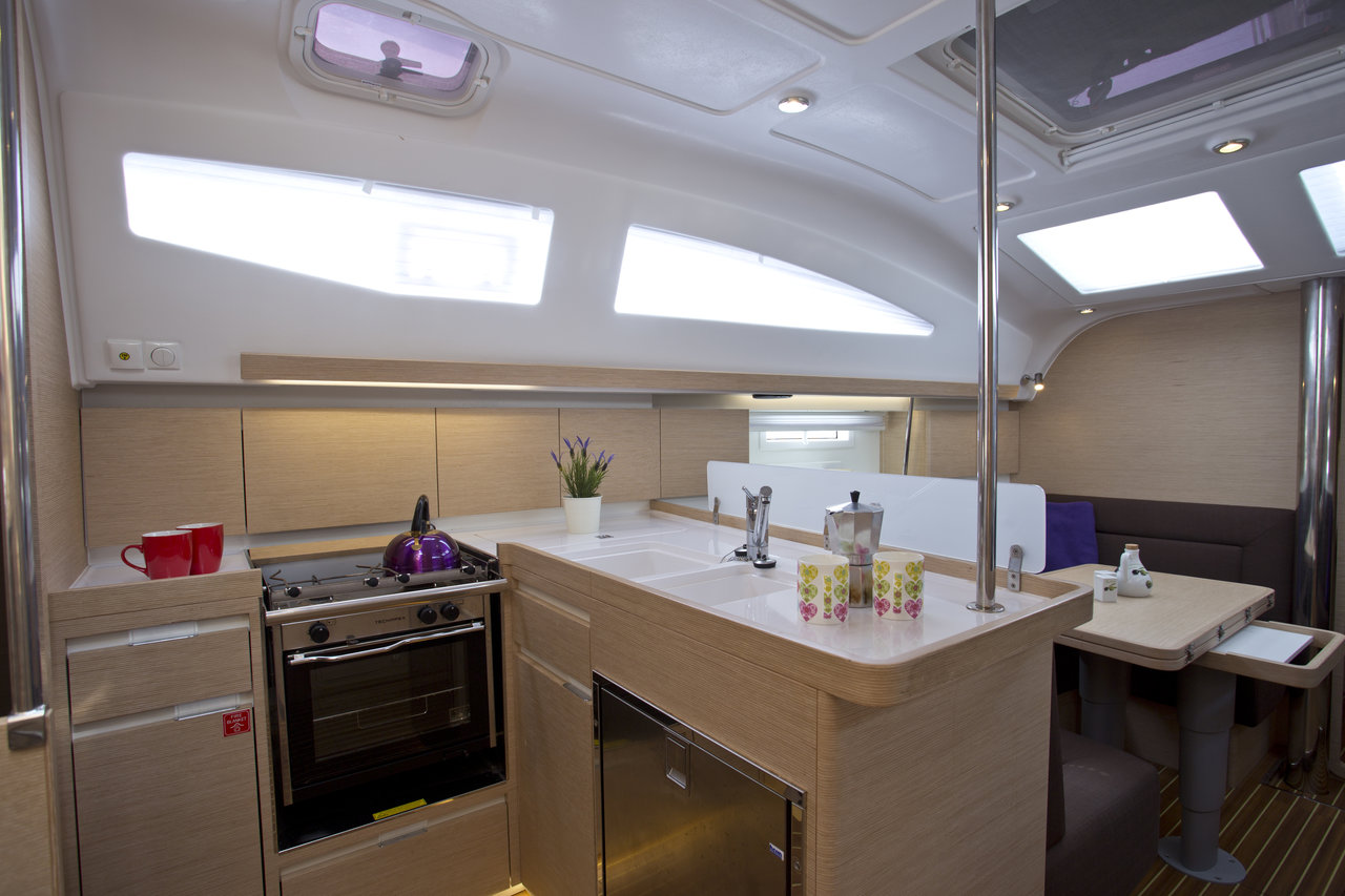 | Outside | Badeplattform, Biminitop, Cockpitdusche, Cockpitpolster, Cockpittisch, Deckbeleuchtung, Delta-Anker, elektr. Ankerwinsch, Solaranlage, Sprayhood |