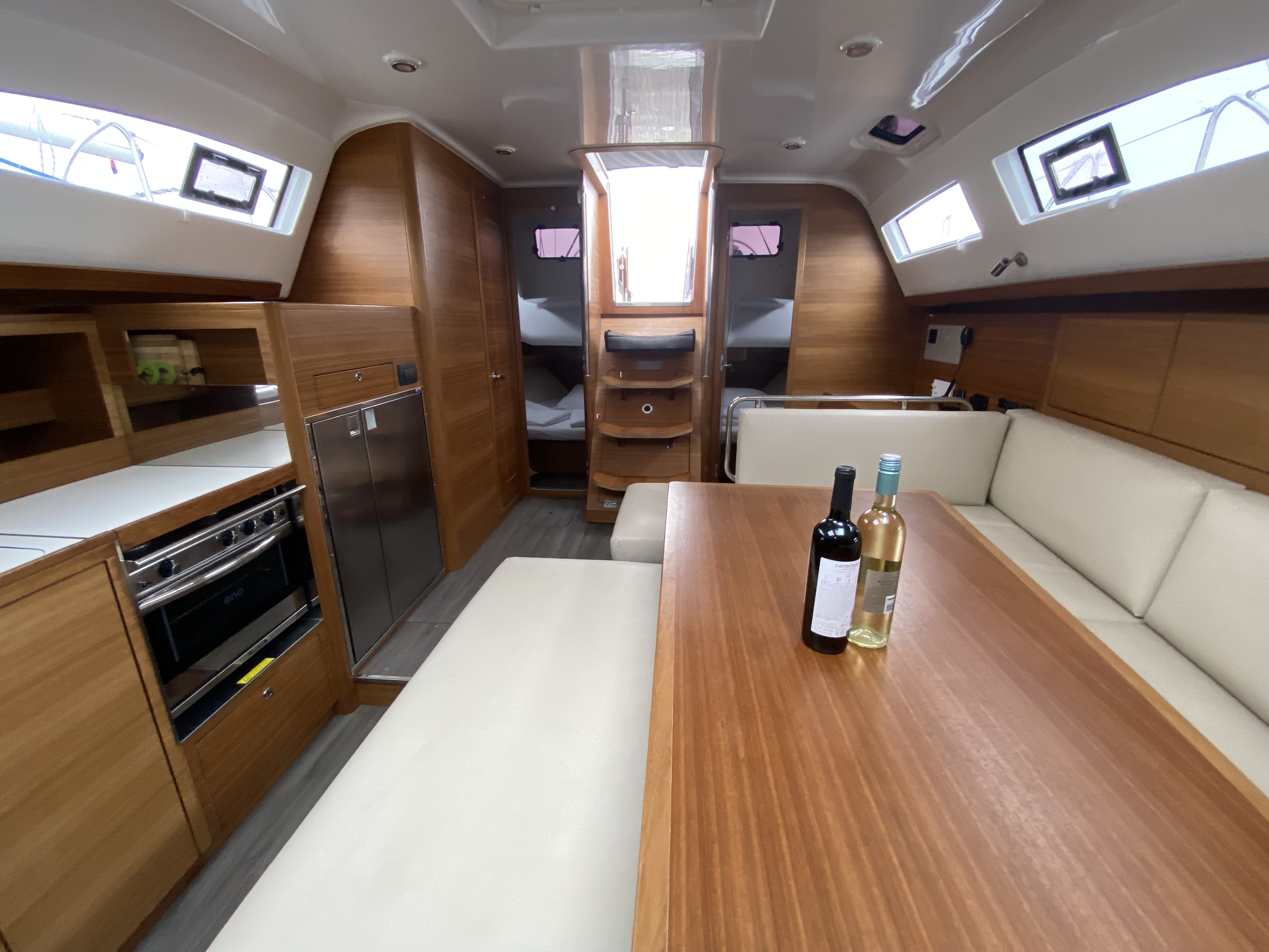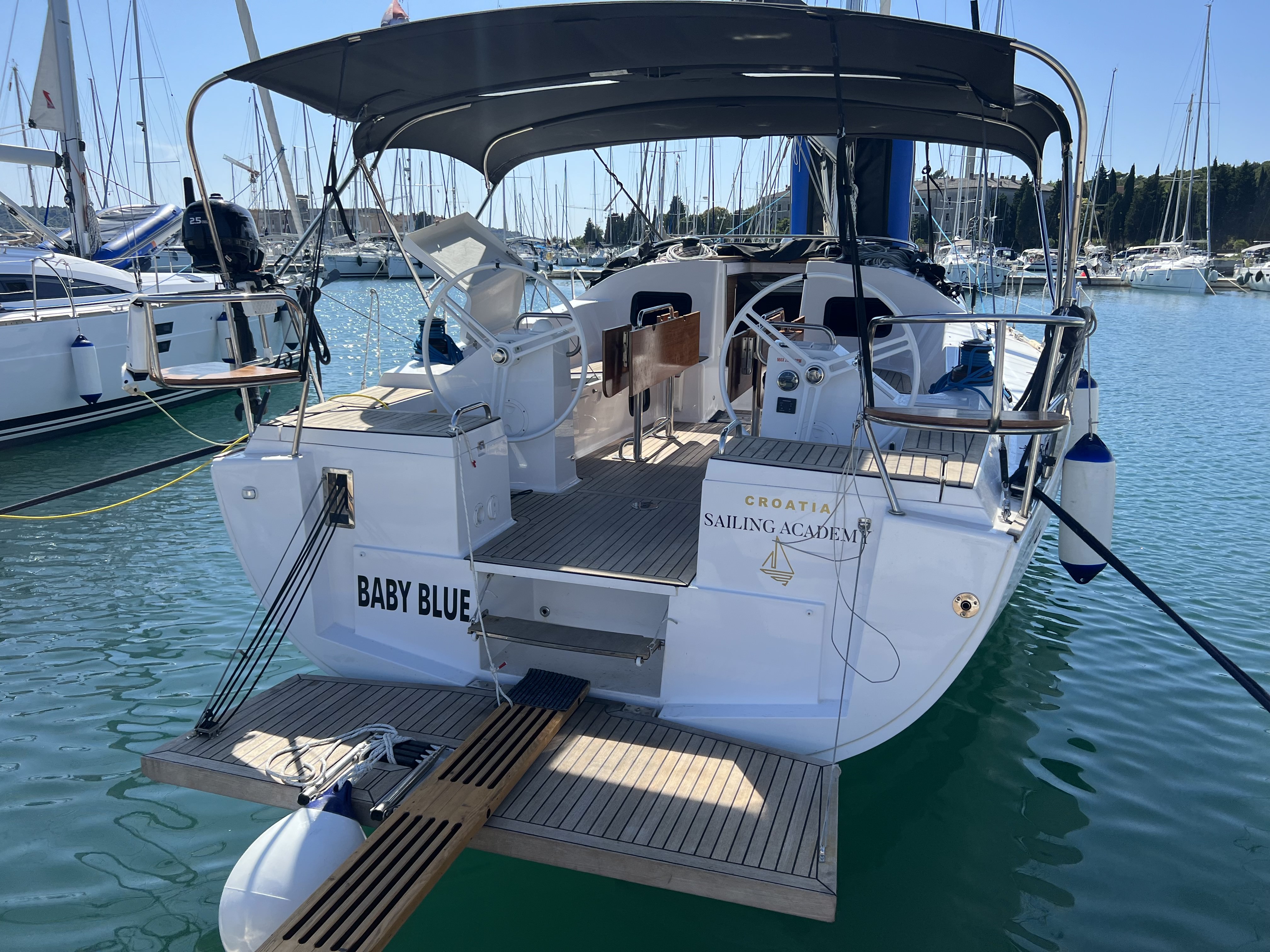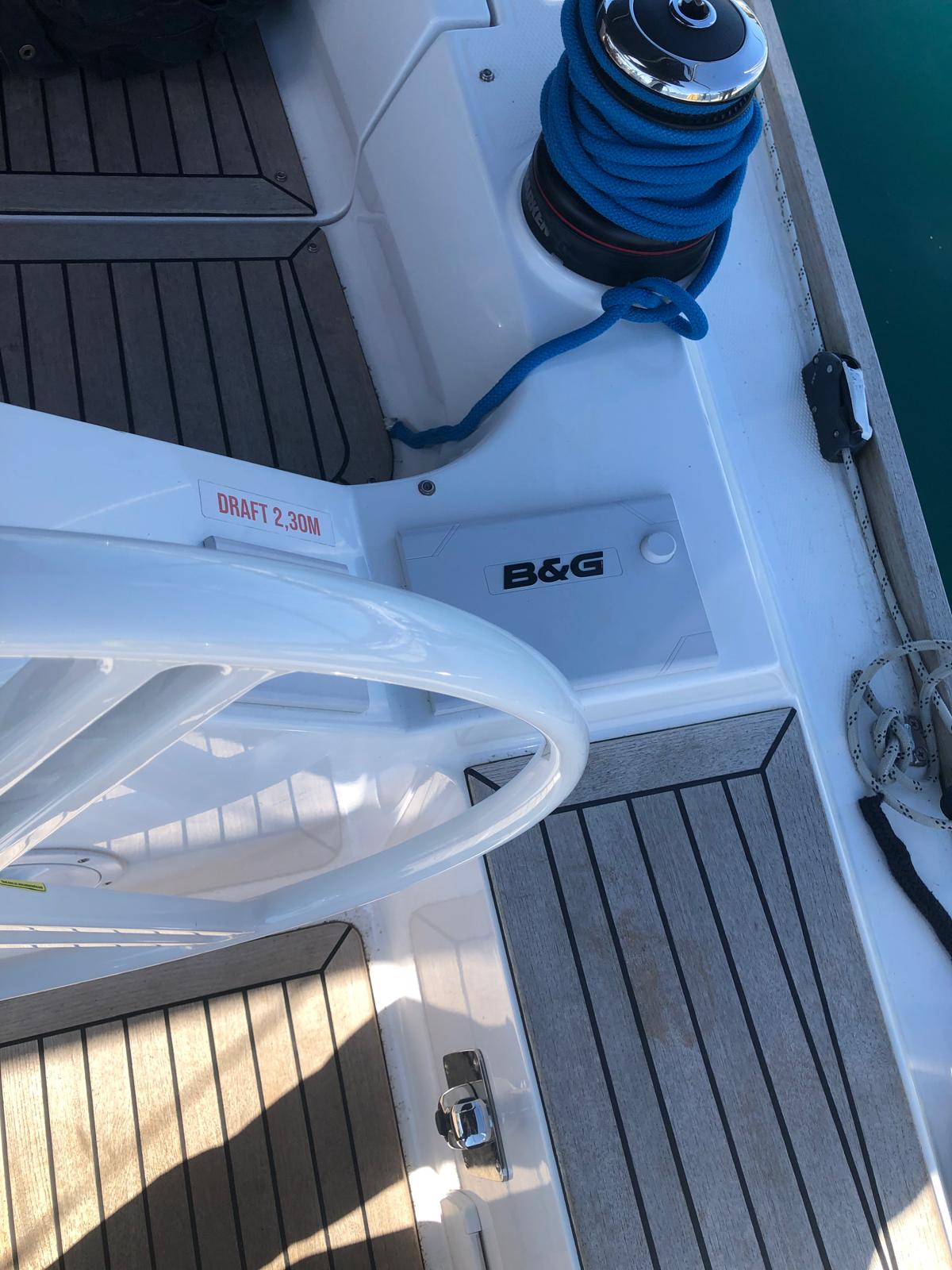 | Outside | Badeplattform, Biminitop, Cockpitlautsprecher, Grill, Sprayhood, Teak im Cockpit |