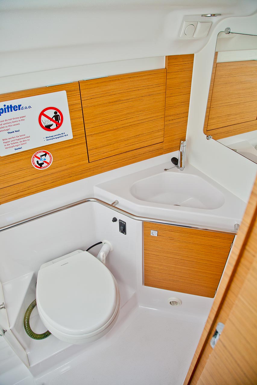 | Inside | 2. Kühlschrank, Borduhr, Heizung, Inverter 12V/220V, Kühlschrank, Ladegerät, Luftpumpe für Beiboot, Pantryausstattung, Radio mit Bluetooth, USB Steckdosen in den Kabinen, Warmwasser, WC (elektr.) |
