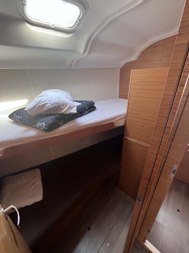 | Inside | 2. Kühlschrank, Borduhr, Dusche, FUSION Sound System, Heizung, Inverter 12V/220V, Kühlschrank, Ladegerät, Luftpumpe für Beiboot, Pantryausstattung, Radio mit Bluetooth, USB Steckdosen in den Kabinen, Warmwasser, WC (elektr.) |
