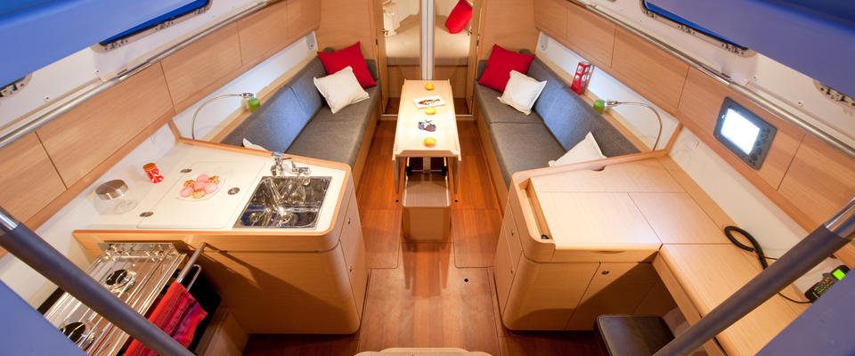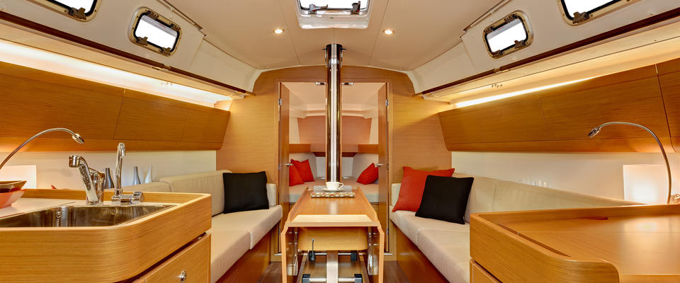 | Navigation | GPS mit Kartenplotter im Salon, Hafenhandbücher, Handpeilkompass, Navigationsbesteck, Seekarten, Tridata (Log, Echolot, Windm.) |