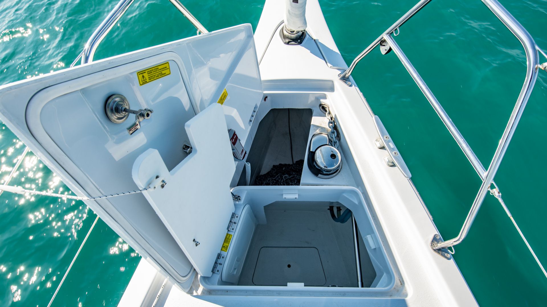 | Safety | Automatikwesten, Autopilot, Blitzboje, Bootsmannstuhl, Bordapotheke, Bordwerkzeug, Bugstrahlruder, Feuerlöscher, Lifebelts, Motor-Ersatzteile, Nebelhorn, Notsignale, Radarreflektor, Reparaturset für Beiboot, Rettungsinsel, Suchscheinwerfer, Taschenlampe, UKW-Funk, Zweitanker |