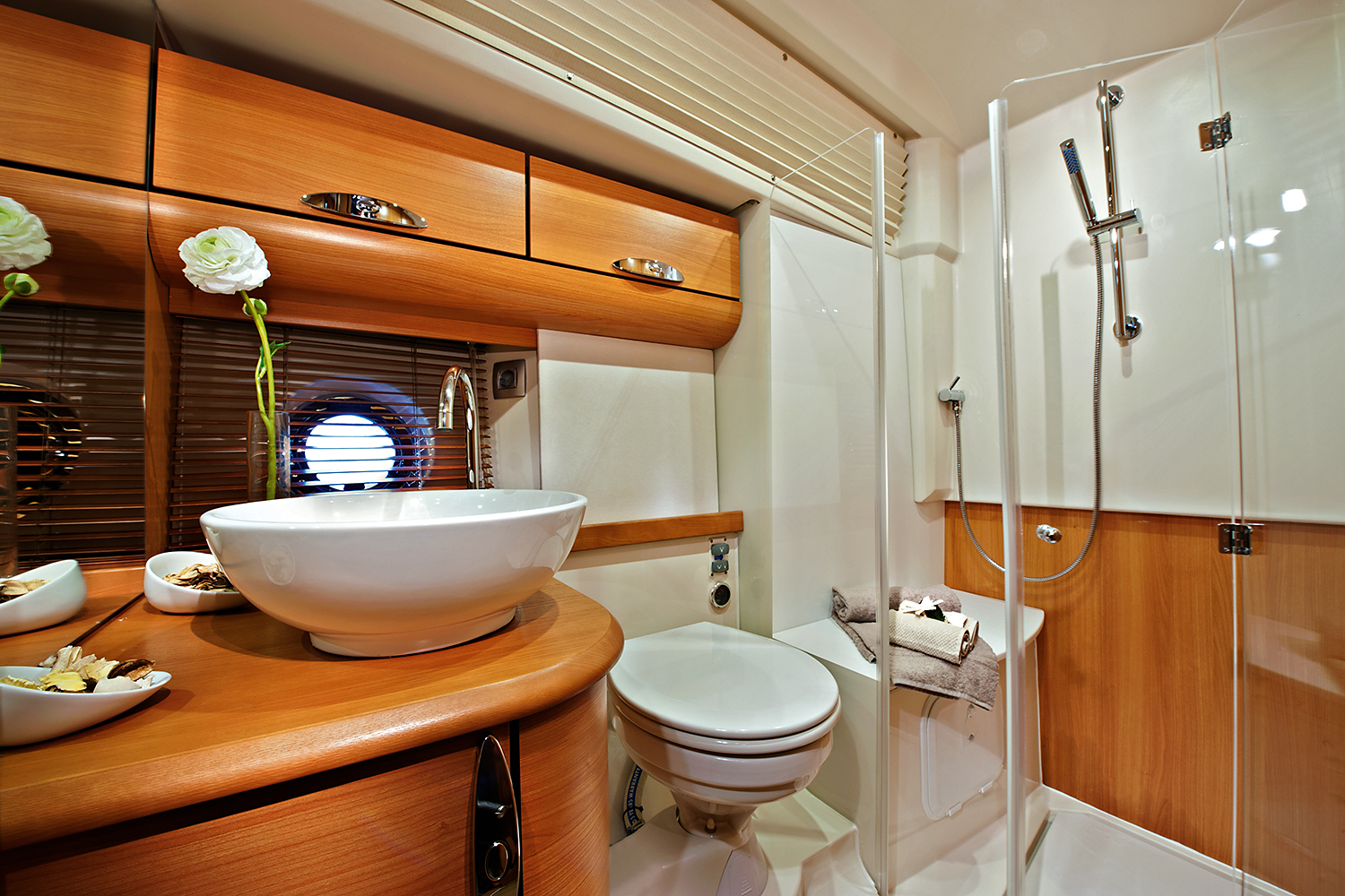 Inside Gasherd, Geschirrspüler, Grauwassertank, Inverter 12V/220V, Klimaanlage, Kühlschrank, Lautsprecher im Salon, LCD Fernseher, Mikrowelle, Pantryausstattung, Radio, Radio mit USB, TV, Wechselrichter