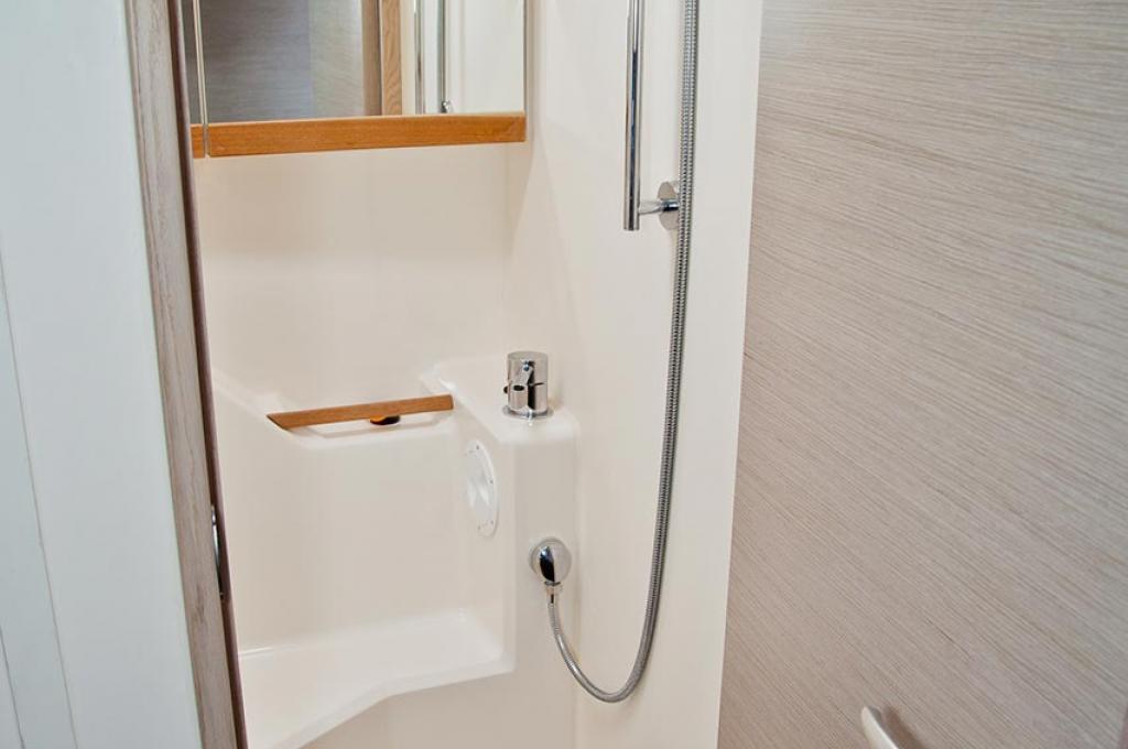 | Inside | Borduhr, Dusche, FUSION Sound System, Heizung, Inverter 12V/220V, Kühlschrank, Ladegerät, Luftpumpe für Beiboot, Pantryausstattung, Radio mit Bluetooth, Salontisch absenkbar, Warmwasser, WC (elektr.) |