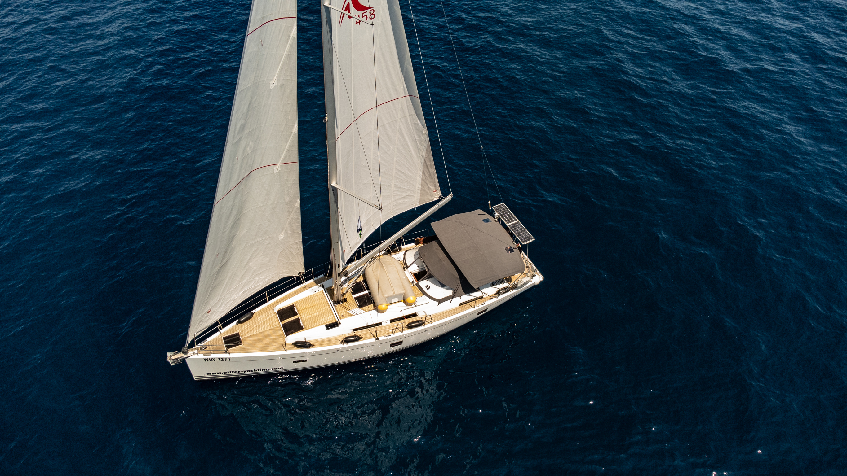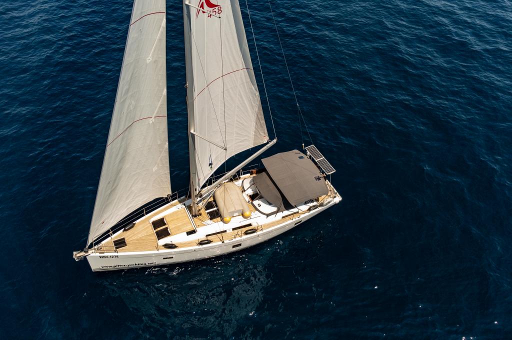 | Navigation | Barometer, Fernglas mit Peilkompass, GPS mit Kartenplotter im Cockpit, Hafenhandbücher, Navigationsbesteck, Seekarten, Tridata (Log, Echolot, Windm.) |
