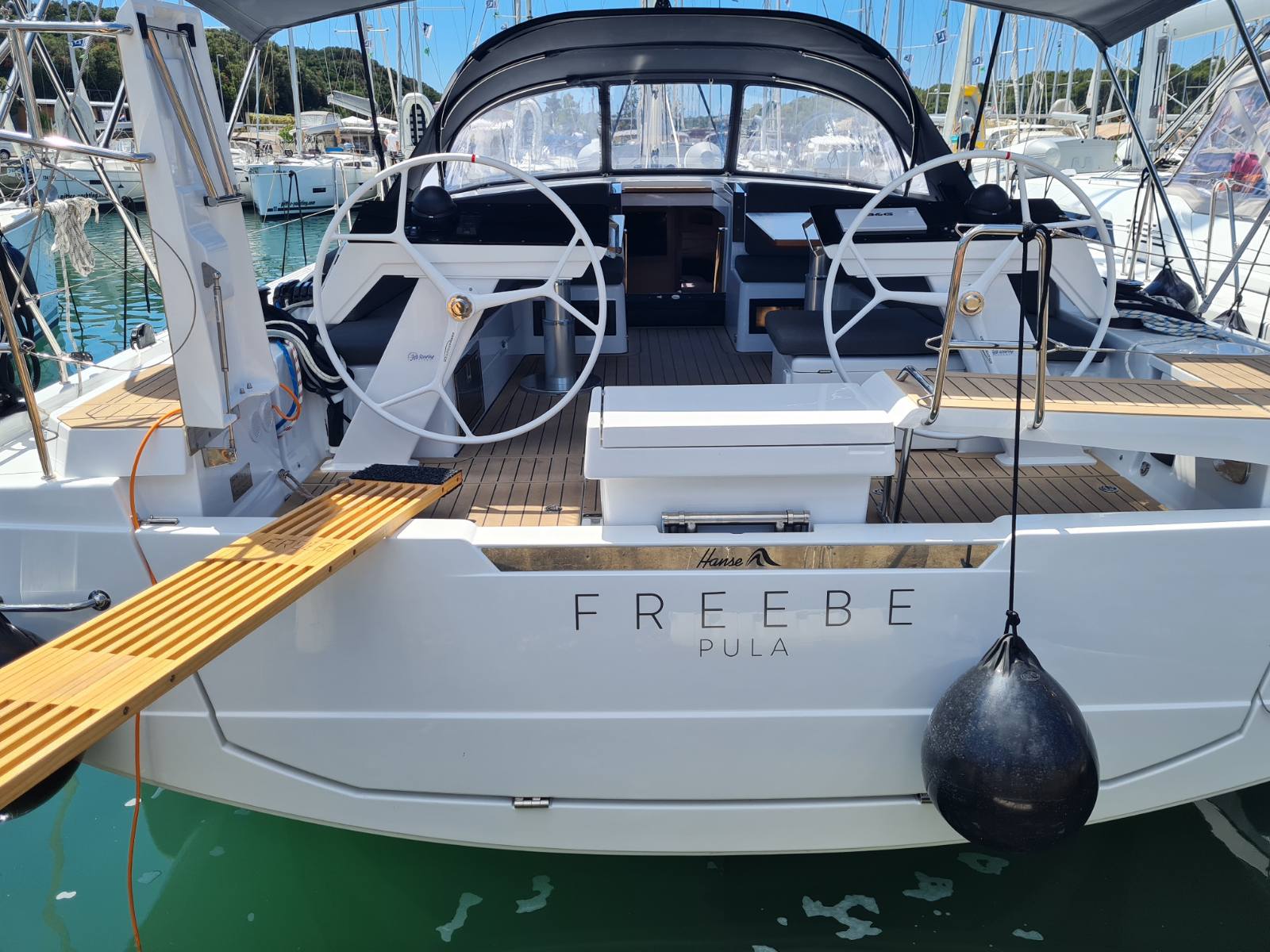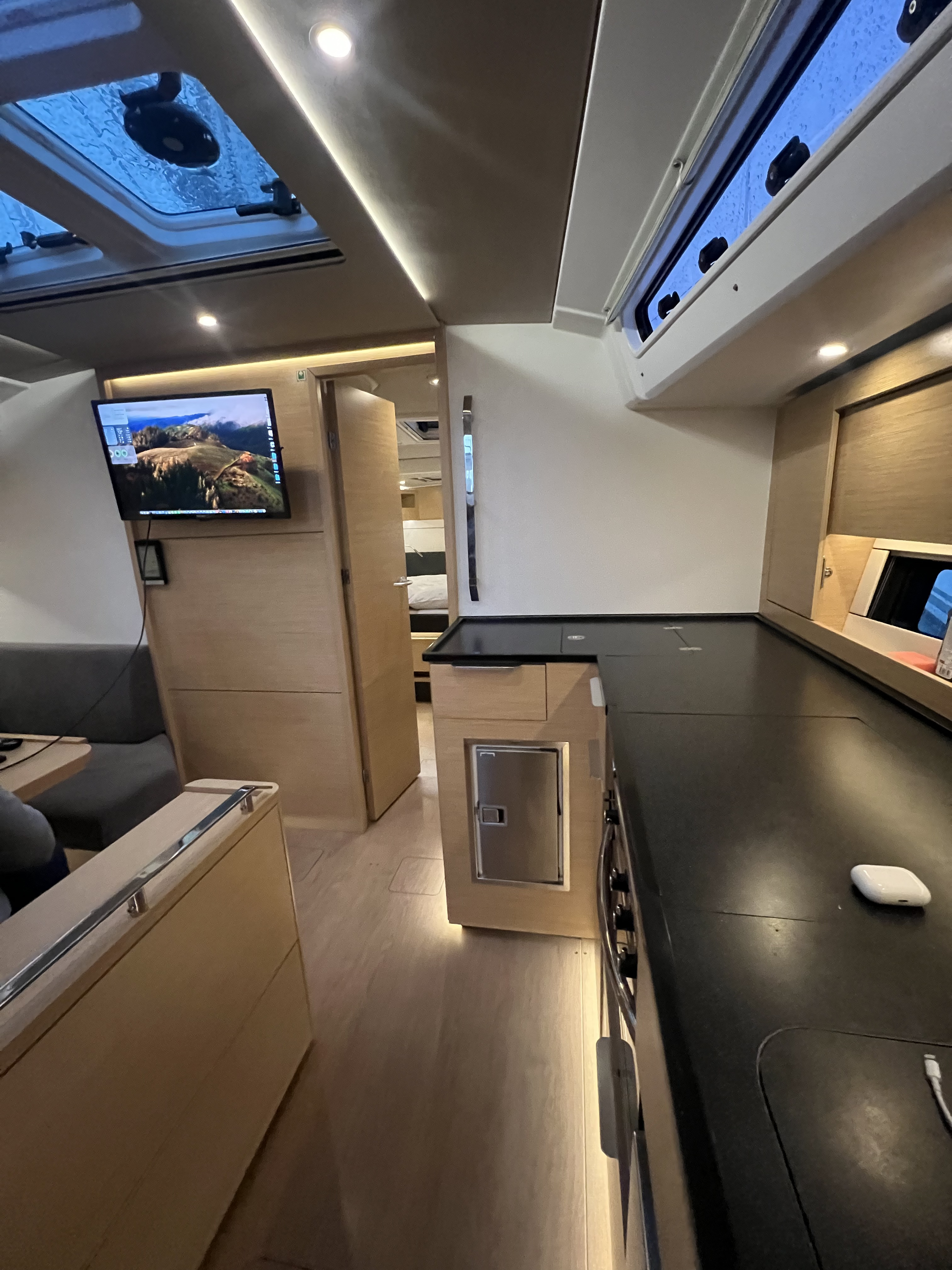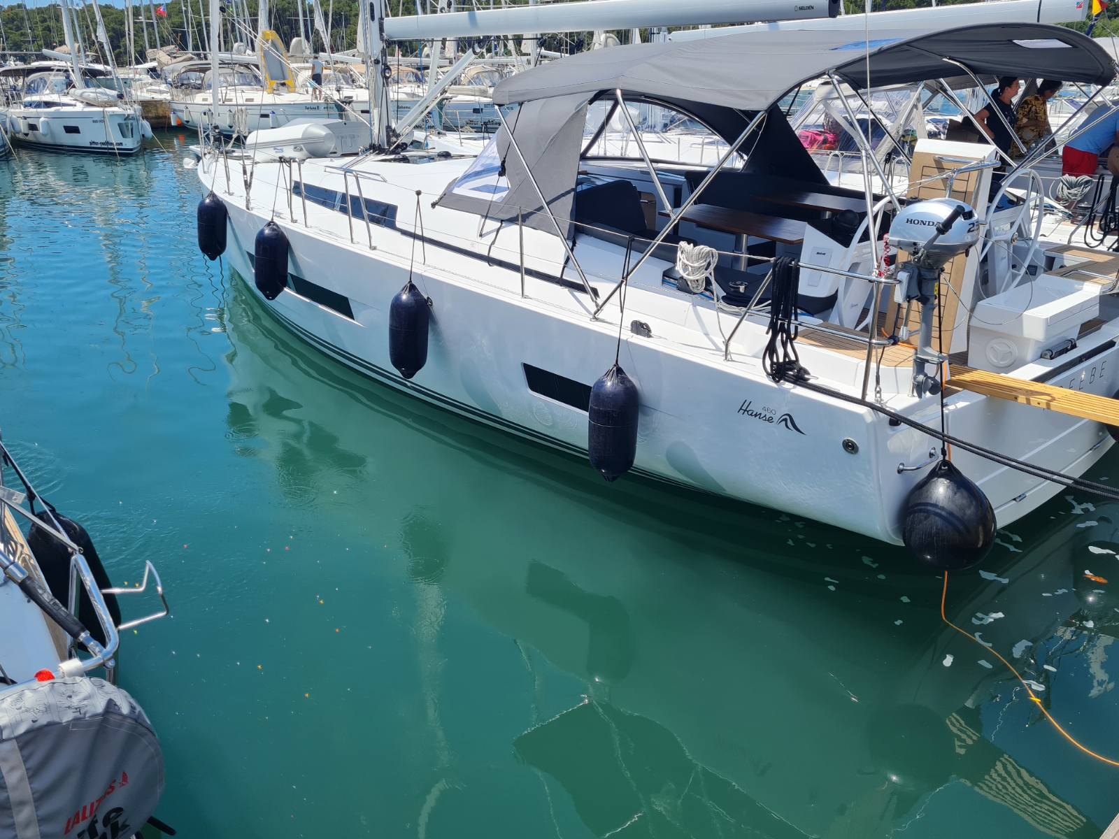| Safety | AIS Empfänger, Ankerlicht, Automatikwesten, Autopilot, Blitzboje, Bootsmannstuhl, Bordapotheke, Bordwerkzeug, Bugstrahlruder, elektr. Bilgepumpe, Feuerlöscher, Navigationslichter, Nebelhorn, Notpinne, Notsignale, Rettungsinsel, Taschenlampe, UKW-Funk, Zweitanker |