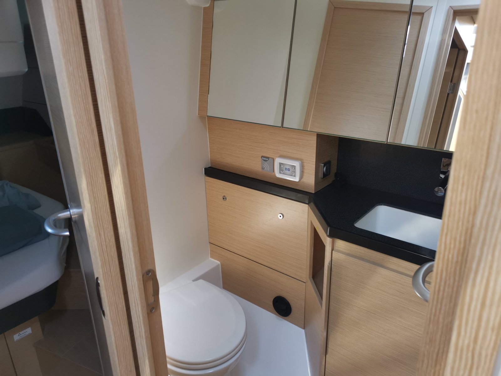 | Inside | 12V/220V-Steckdosen, Backofen, Borduhr, Deckenleuchten, Druckwasser, Fäkalientank, Gasherd, Gefrierschrank, Heizung, Inverter 12V/220V, Kühlbox, Kühlschrank, Ladegerät, Landstromkabel, LED-Innenleuchten, Lukenjalousien, Pantryausstattung, Radio mit Bluetooth und AUX-In, Safe für Wertsachen, Salontisch absenkbar, Spülbecken, TV mit DVBT, Warmwasser, WC (elektr.) |