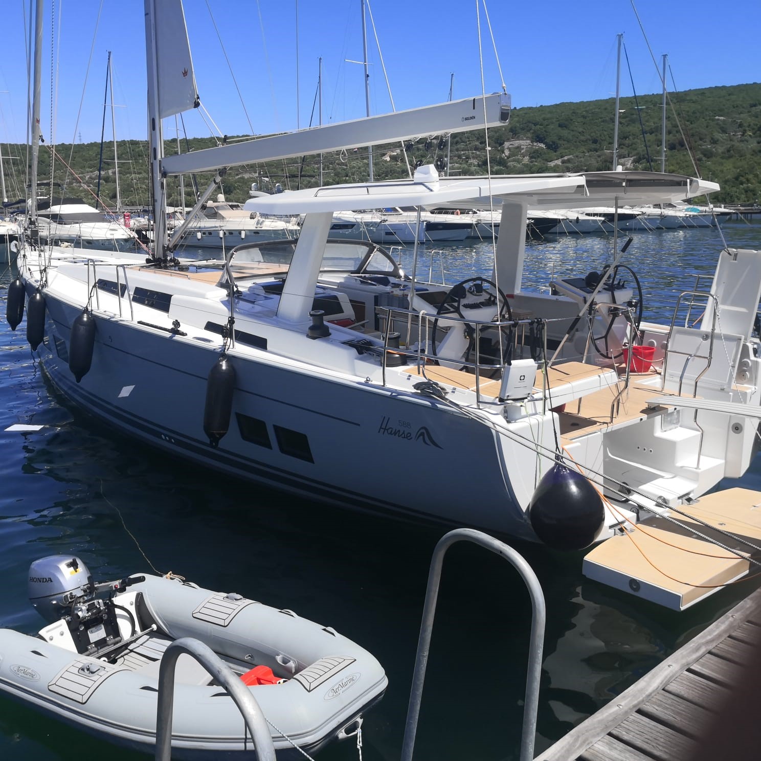 | Sails | elektr. Fallwinsch, Rollgroßsegel, Selbstwendefock |