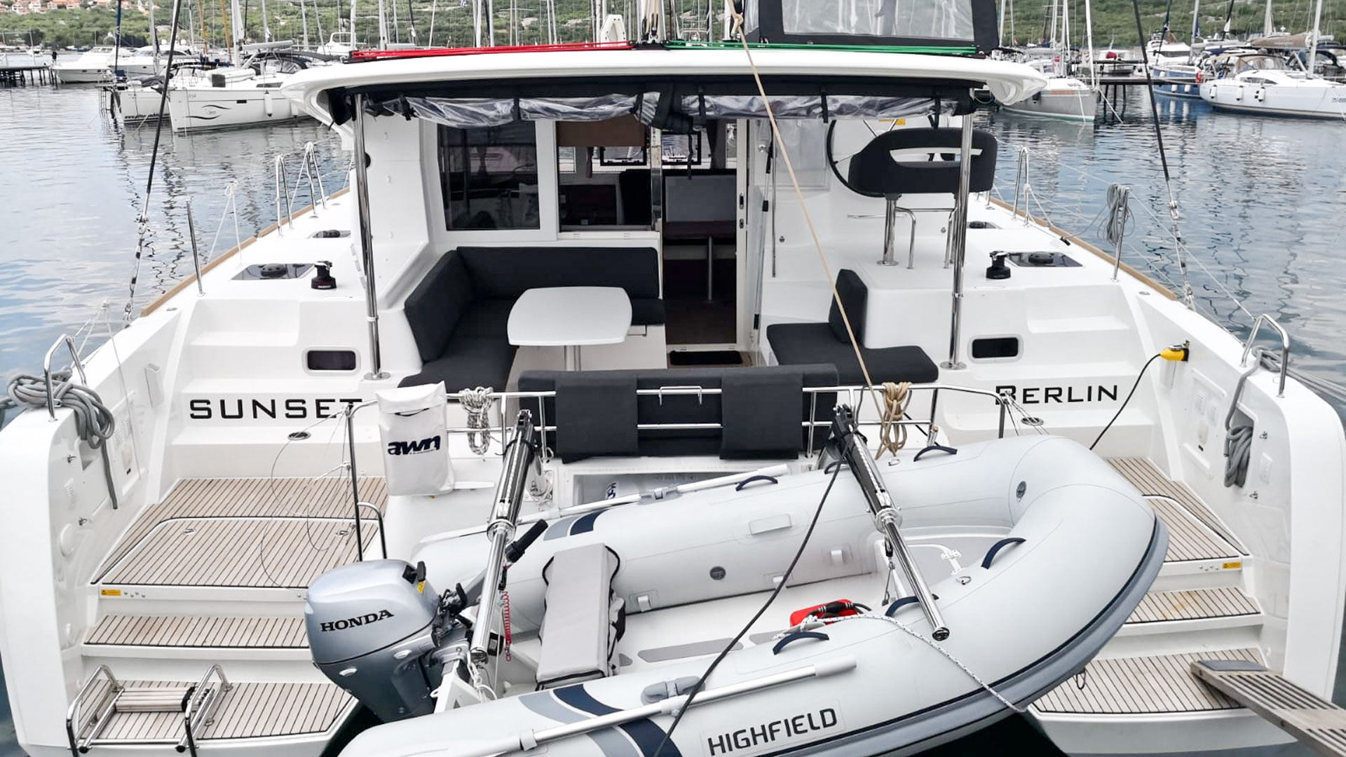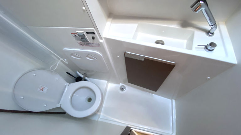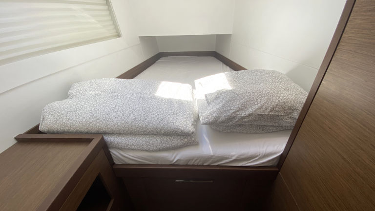 Inside 2. Kühlschrank, Fäkalientank, FUSION Sound System, Heizung, Inverter 12V/220V, Kaffeemaschine, Kühlschrank, Landstromkabel, Lattenrost, Radio mit USB, Safe für Wertsachen, Salontisch absenkbar, TV, USB Steckdosen in den Kabinen, Ventilatoren in Salon und Kabinen, Warmwasser, WC (elektr.)