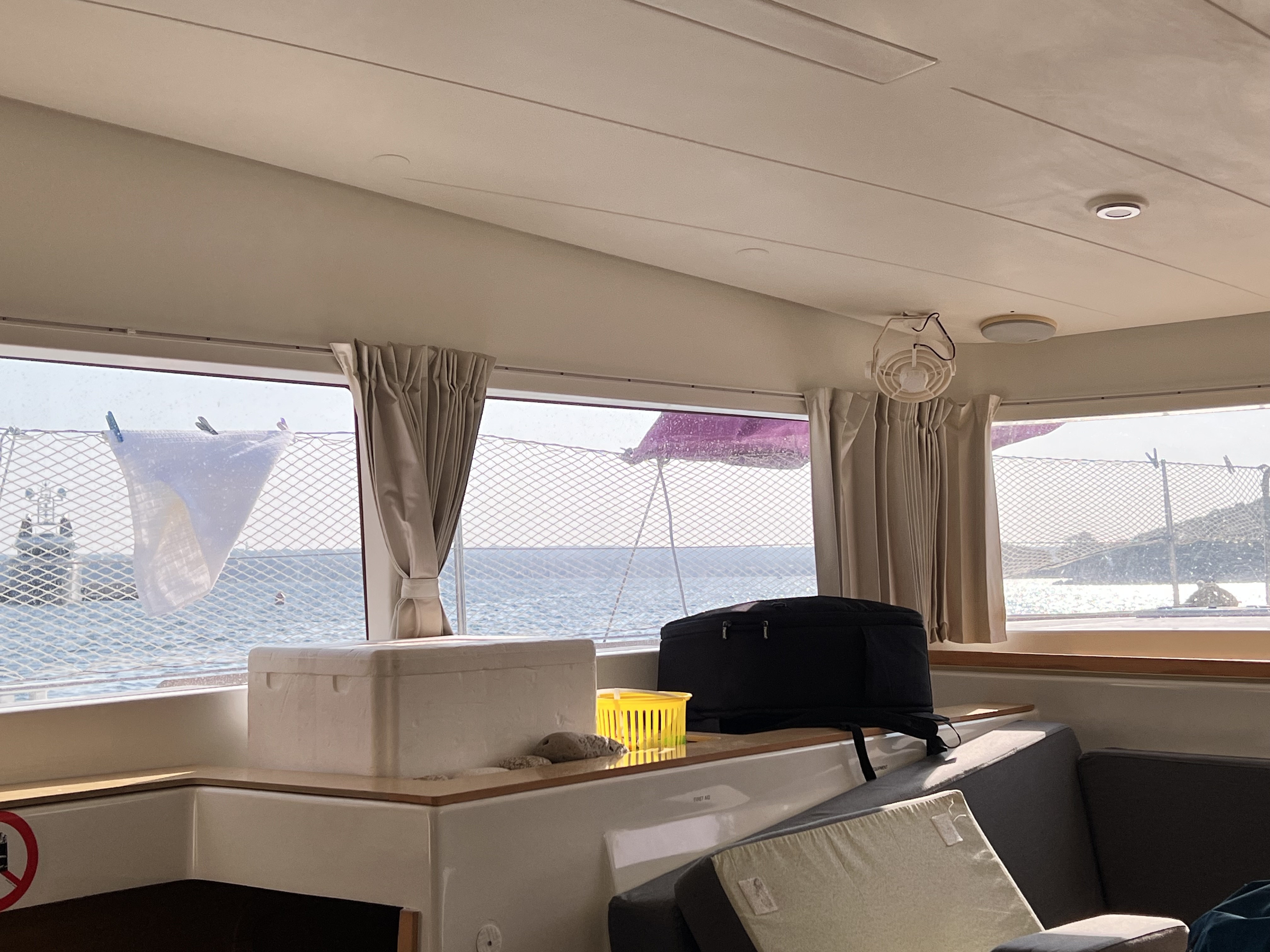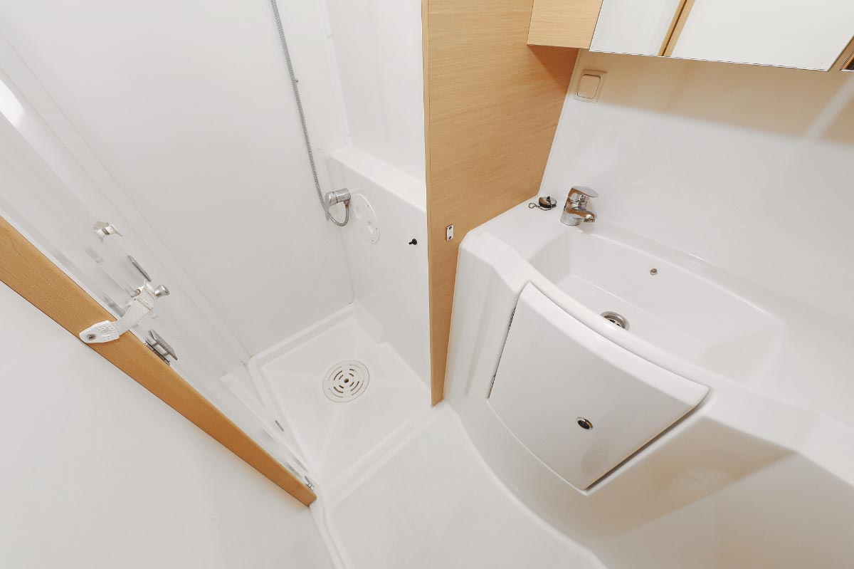 | Inside | Borduhr, Dusche, Heizung, Inverter 12V/220V, Kühlschrank, Ladegerät, Luftpumpe für Beiboot, Pantryausstattung, Radio mit CD/MP3/USB, Salontisch absenkbar, USB Steckdose, Warmwasser |