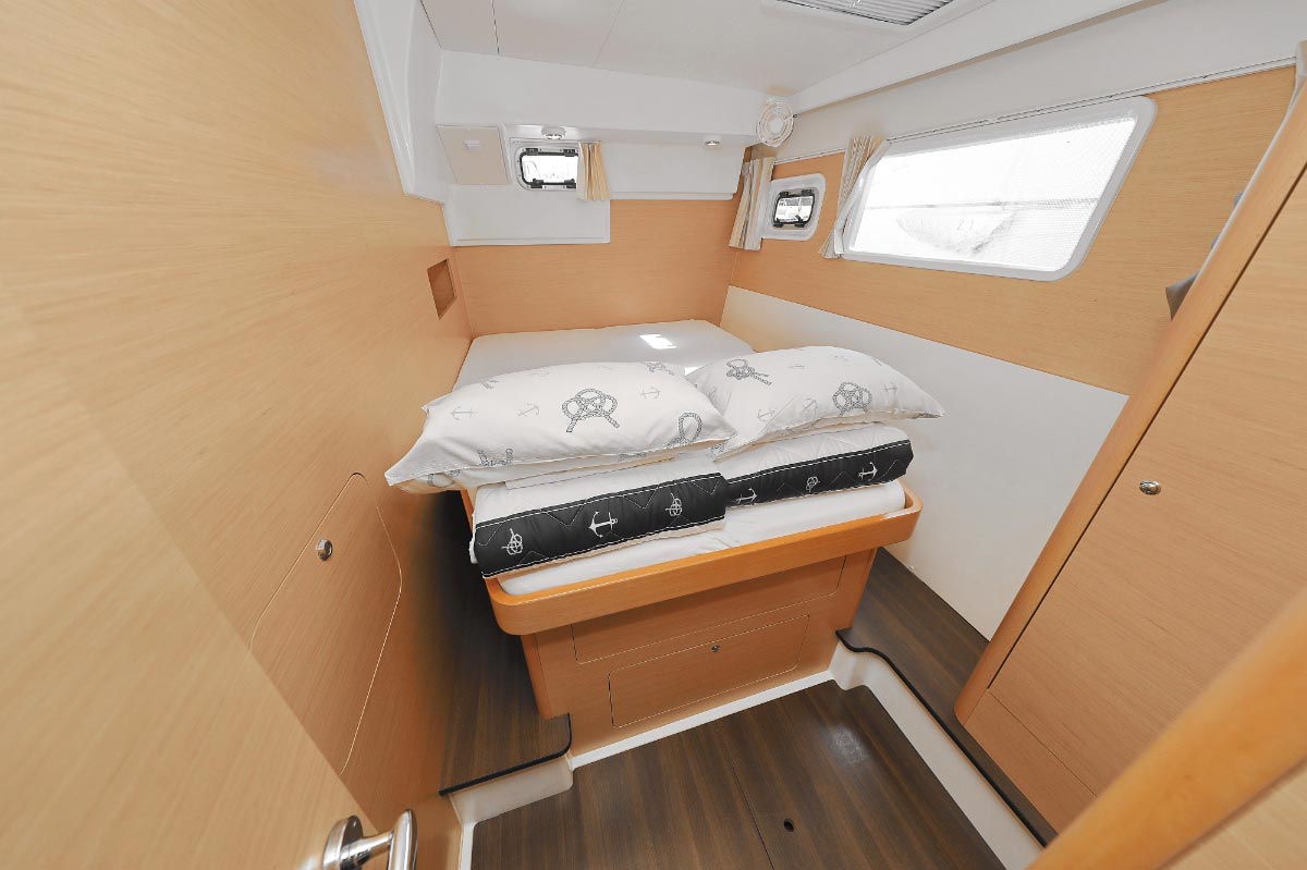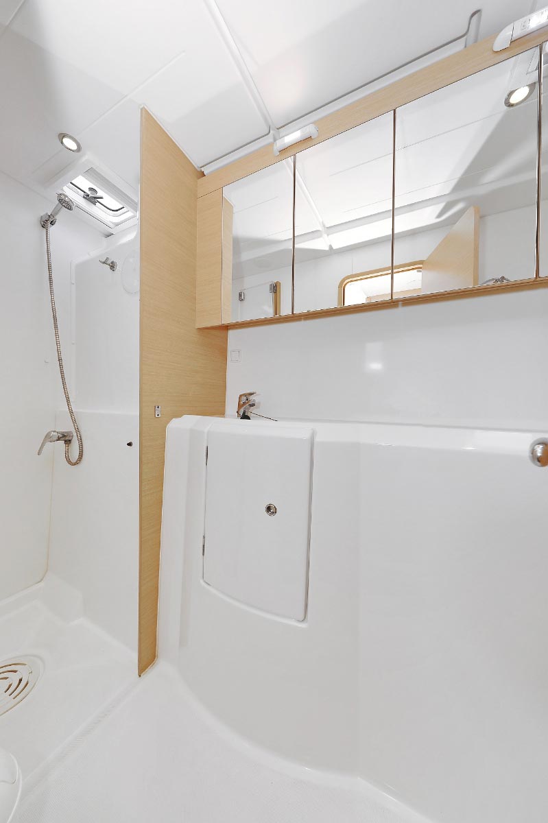| Safety | AIS Empfänger, Automatikwesten, Autopilot, Blitzboje, Bootsmannstuhl, Bordapotheke, Bordwerkzeug, Epirb, Feuerlöscher, Lifebelts, Motor-Ersatzteile, Nebelhorn, Notsignale, Radarreflektor, Reparaturset für Beiboot, Rettungsinsel, Suchscheinwerfer, Taschenlampe, UKW-Funk, Zweitanker |