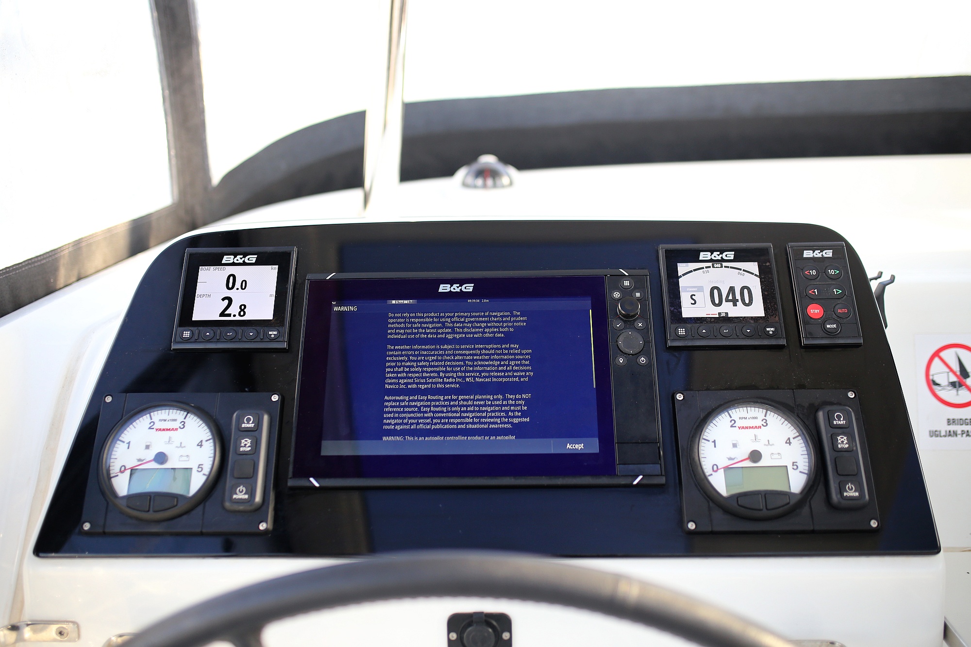 | Outside | 220 V Landstromkabel mit Ladegerät, Badeplattform, Biminitop, Cockpitdusche, Cockpitpolster, elektr. Ankerwinsch, Fender, Gangway, Sprayhood |
