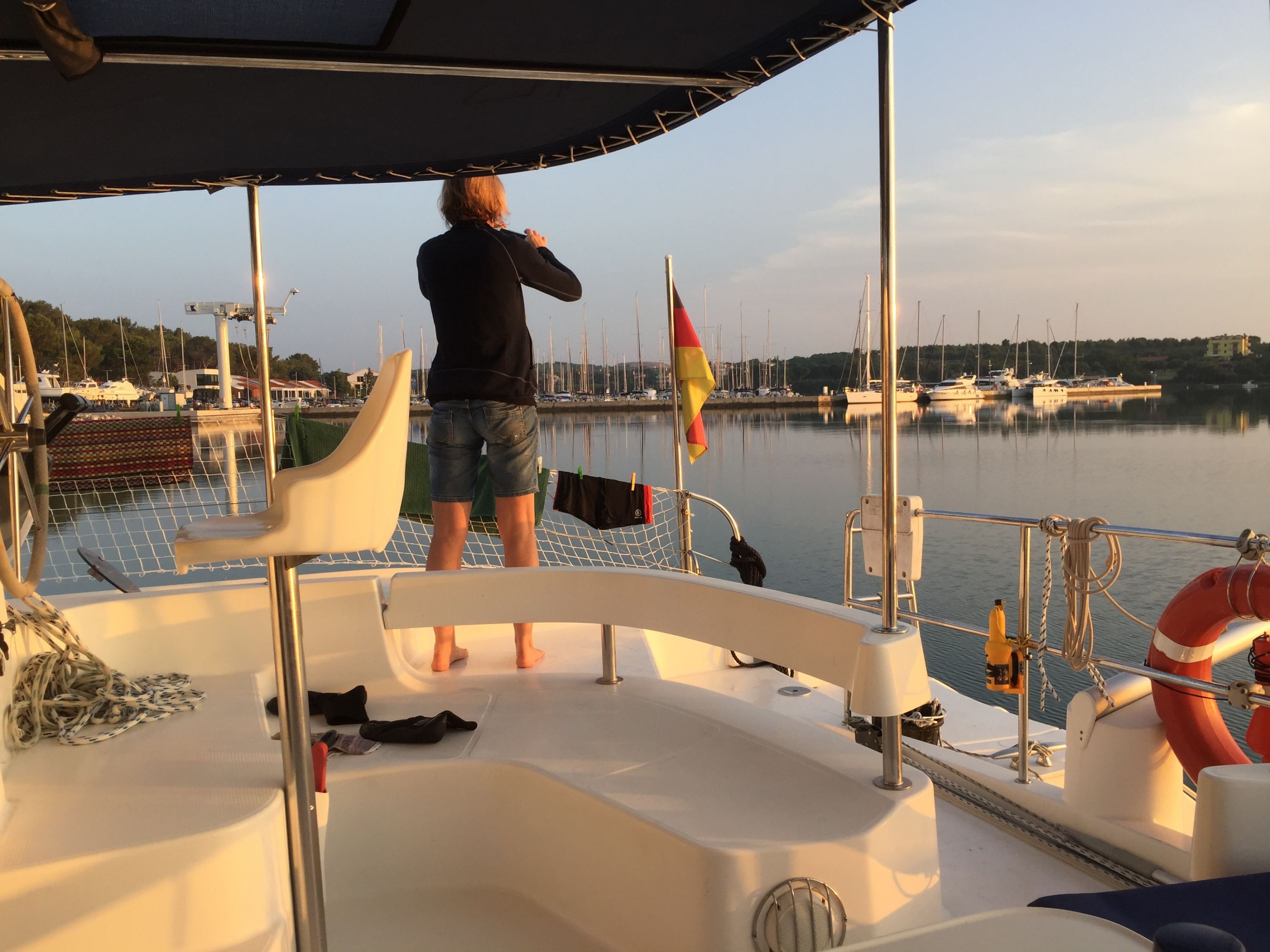 | Outside | Außendusche, Badeleiter, Biminitop, Cockpittisch, elektr. Ankerwinsch, Gangway, Sonnensegel, Treibanker, Windex |