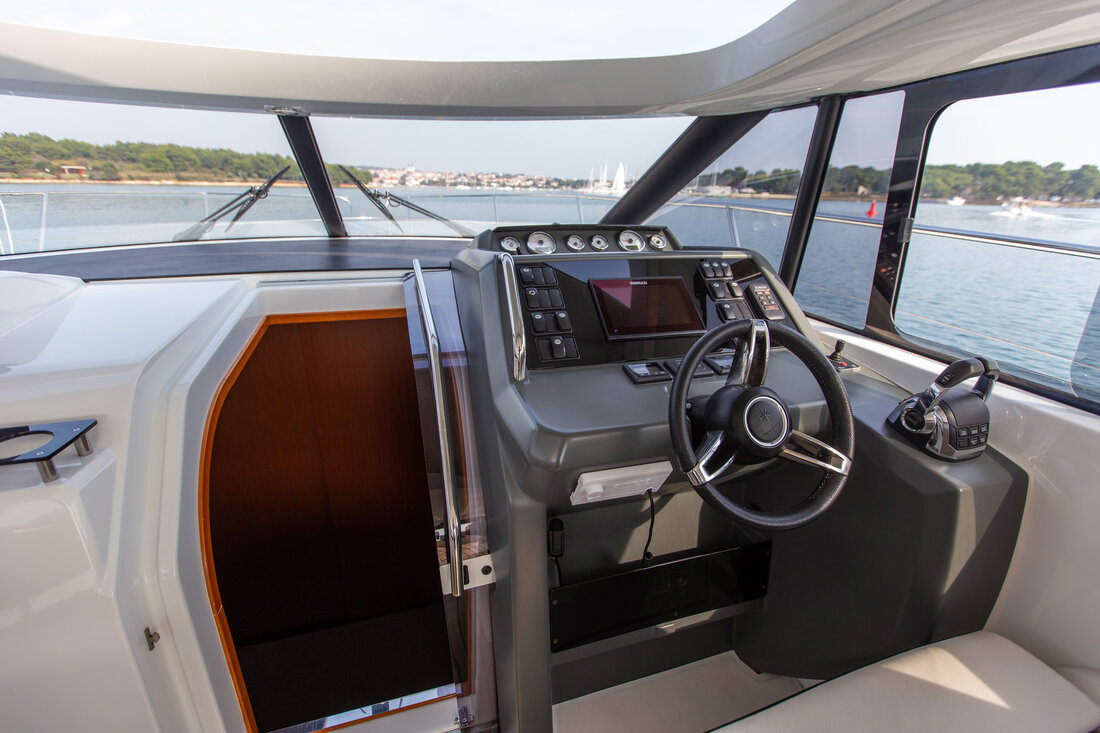 | Outside | Anker mit Kette, Badeleiter, Cockpitdusche, Cockpitlautsprecher, Deckpolster, elektr. Ankerwinsch, Solaranlage |