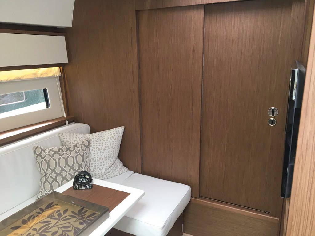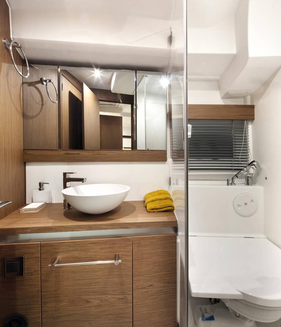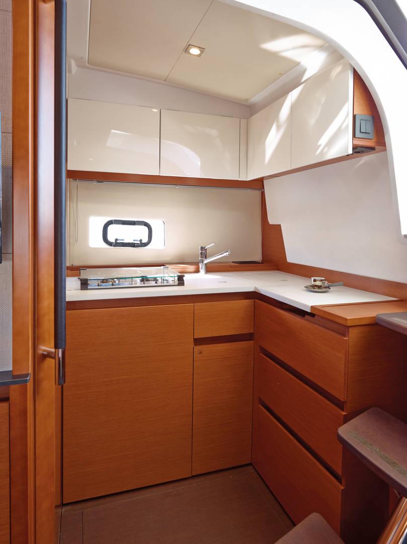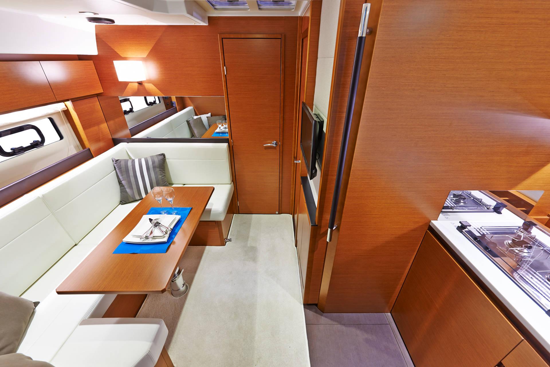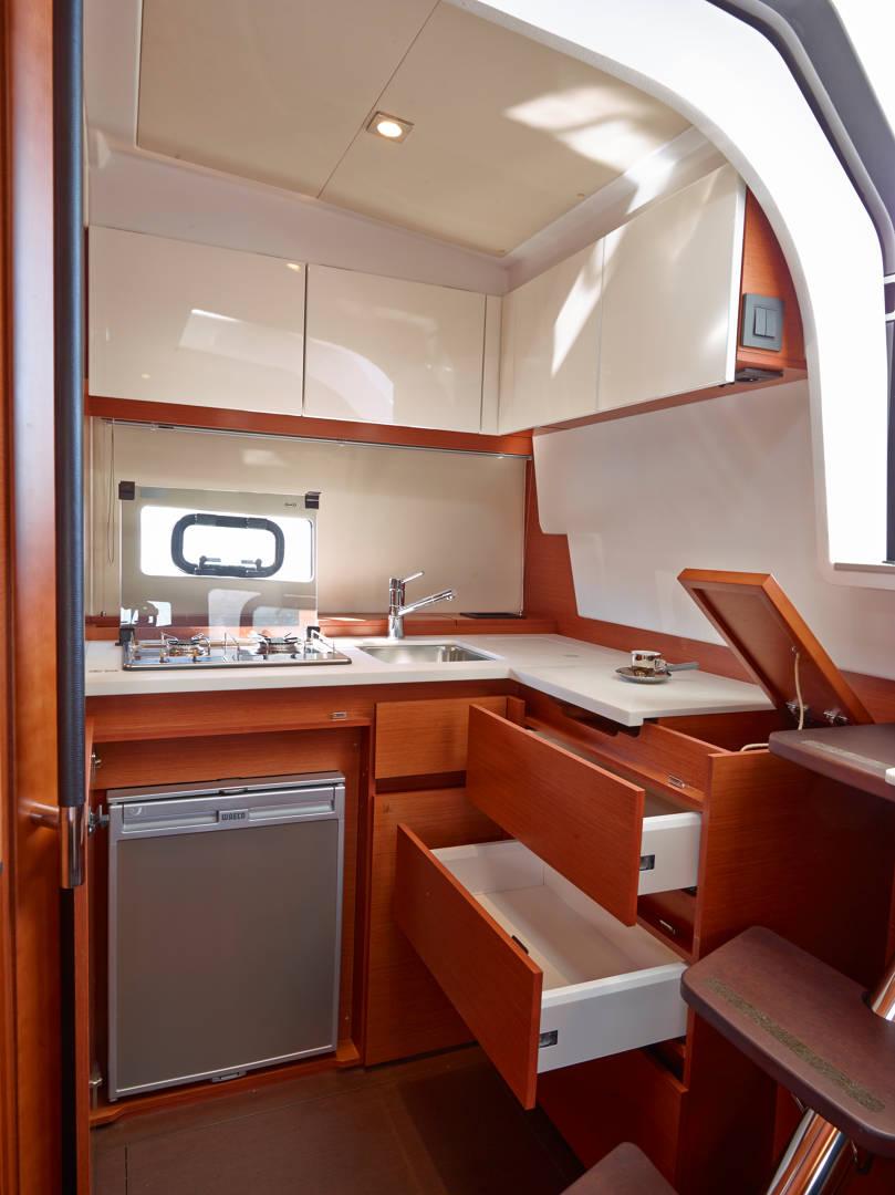 | Outside | 220 V-Landanschluss, Anker mit Kette, Badeleiter, Badeplattform, Cockpitdusche, Cockpitleuchte, Cockpitpolster, Cockpittisch, Deckpolster, elektr. Ankerwinsch, Teak im Cockpit |
