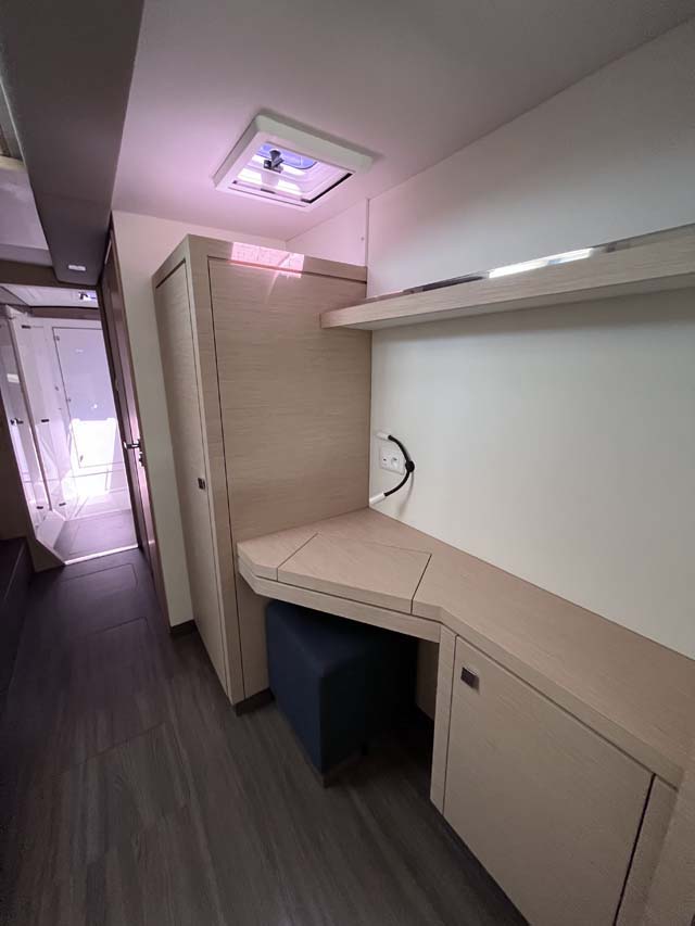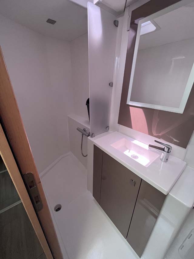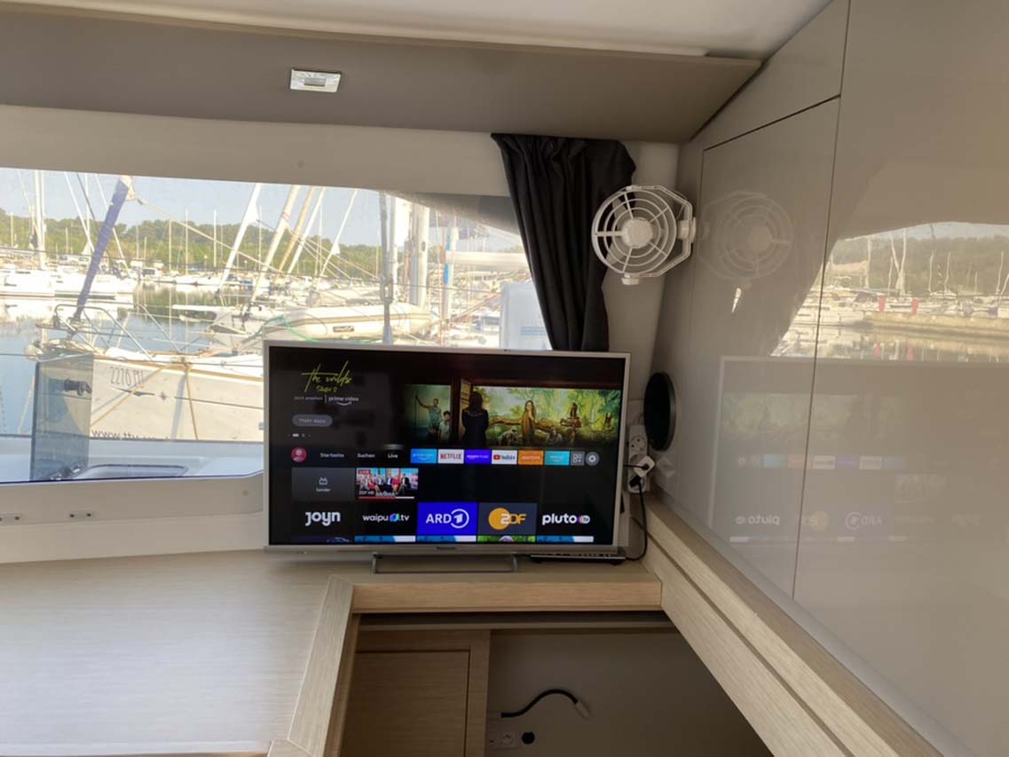 | Inside | Inverter 12V/220V, Kaffeemaschine, Klimaanlage (Landstrom), Kühlschrank, Ladegerät, Mikrowelle, Pantryausstattung, Radio mit Bluetooth, Salontisch absenkbar, USB Steckdose, Ventilatoren in Kabinen, Warmwasser, WC (elektr.) |