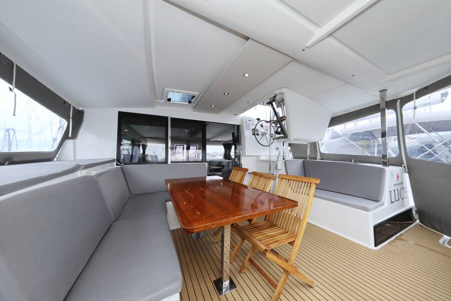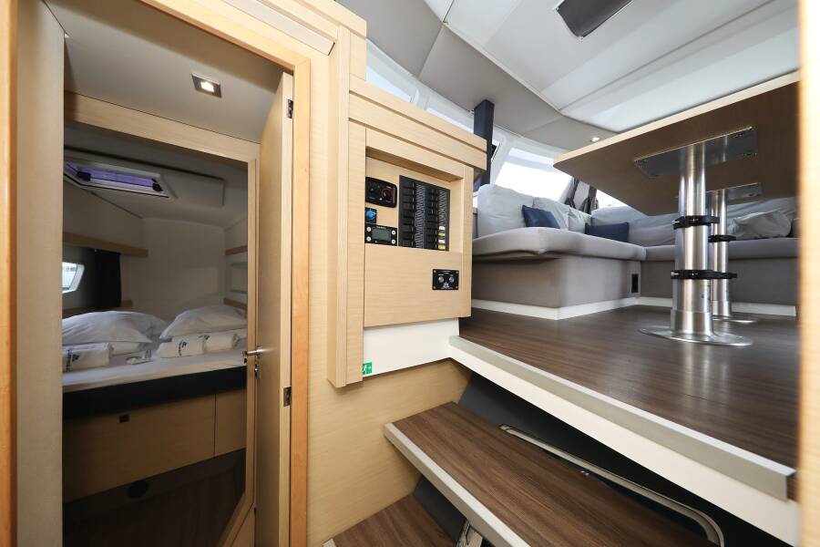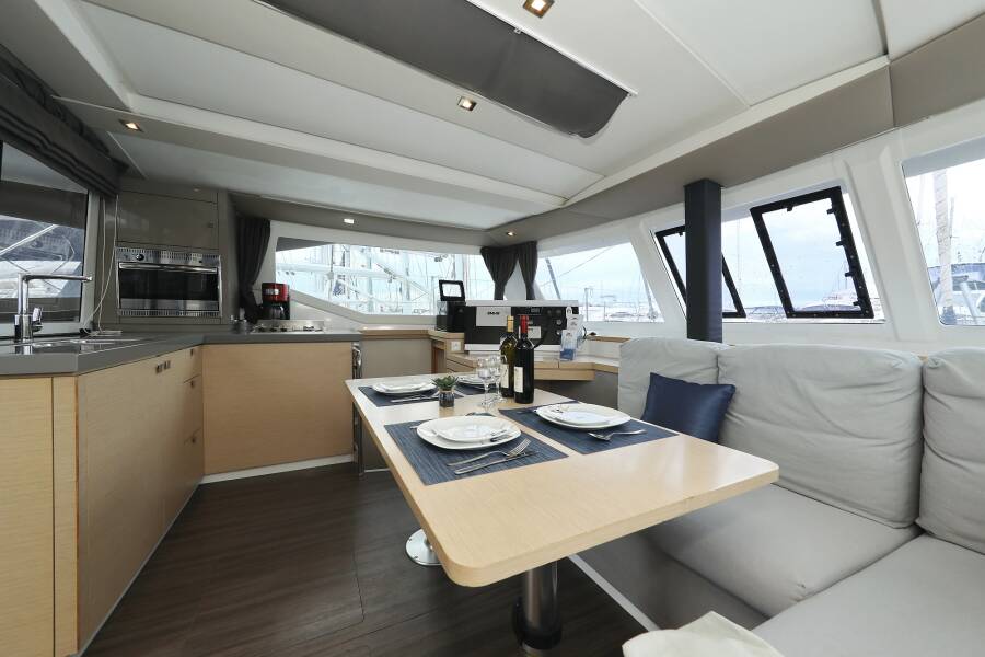 | Inside | Gasherd, Generator, Heizung, Inverter 12V/220V, Klimaanlage (ohne Landstrombedarf), Pantryausstattung, Radio mit CD, TV, Warmwasser, Watermaker |