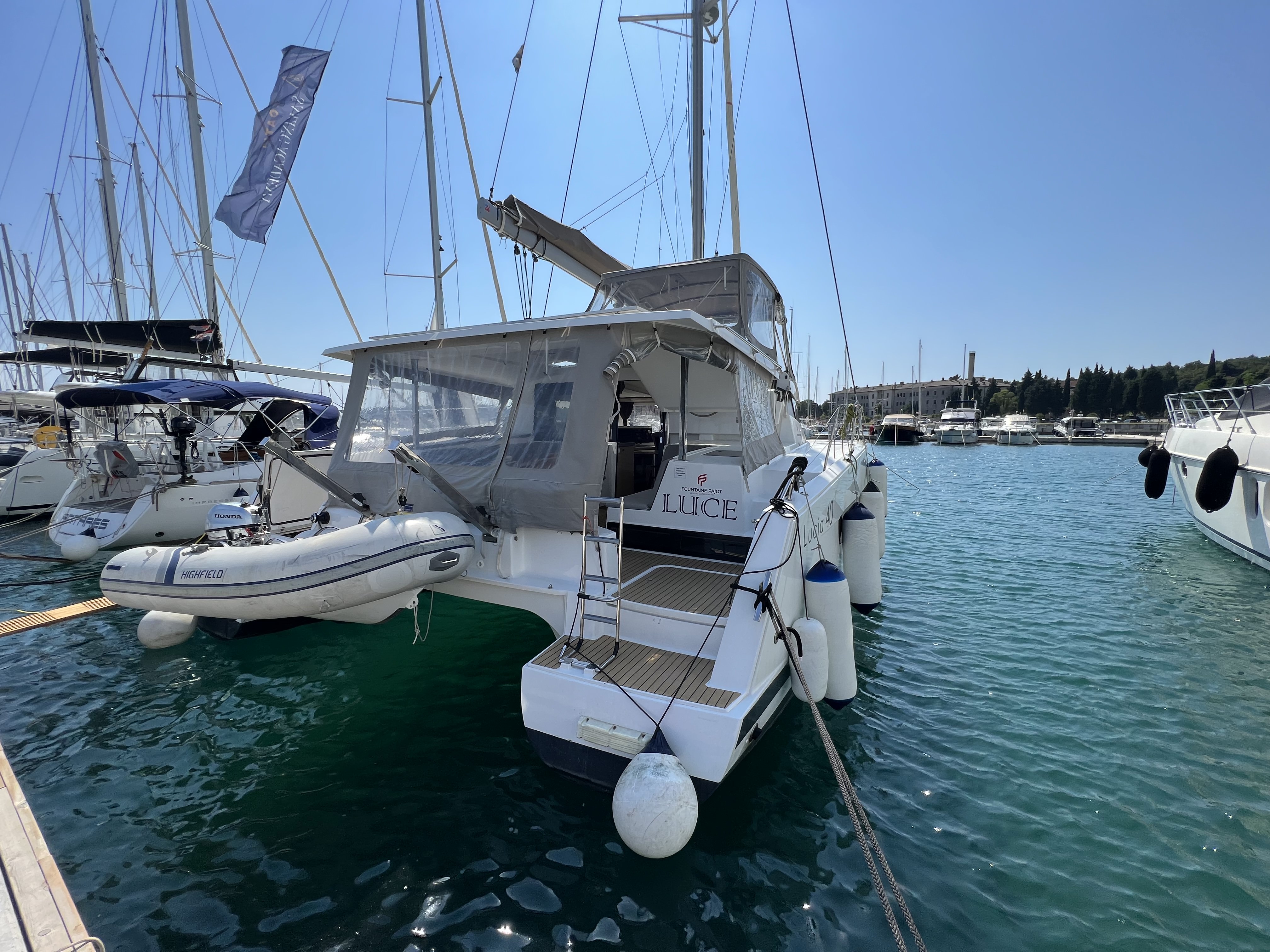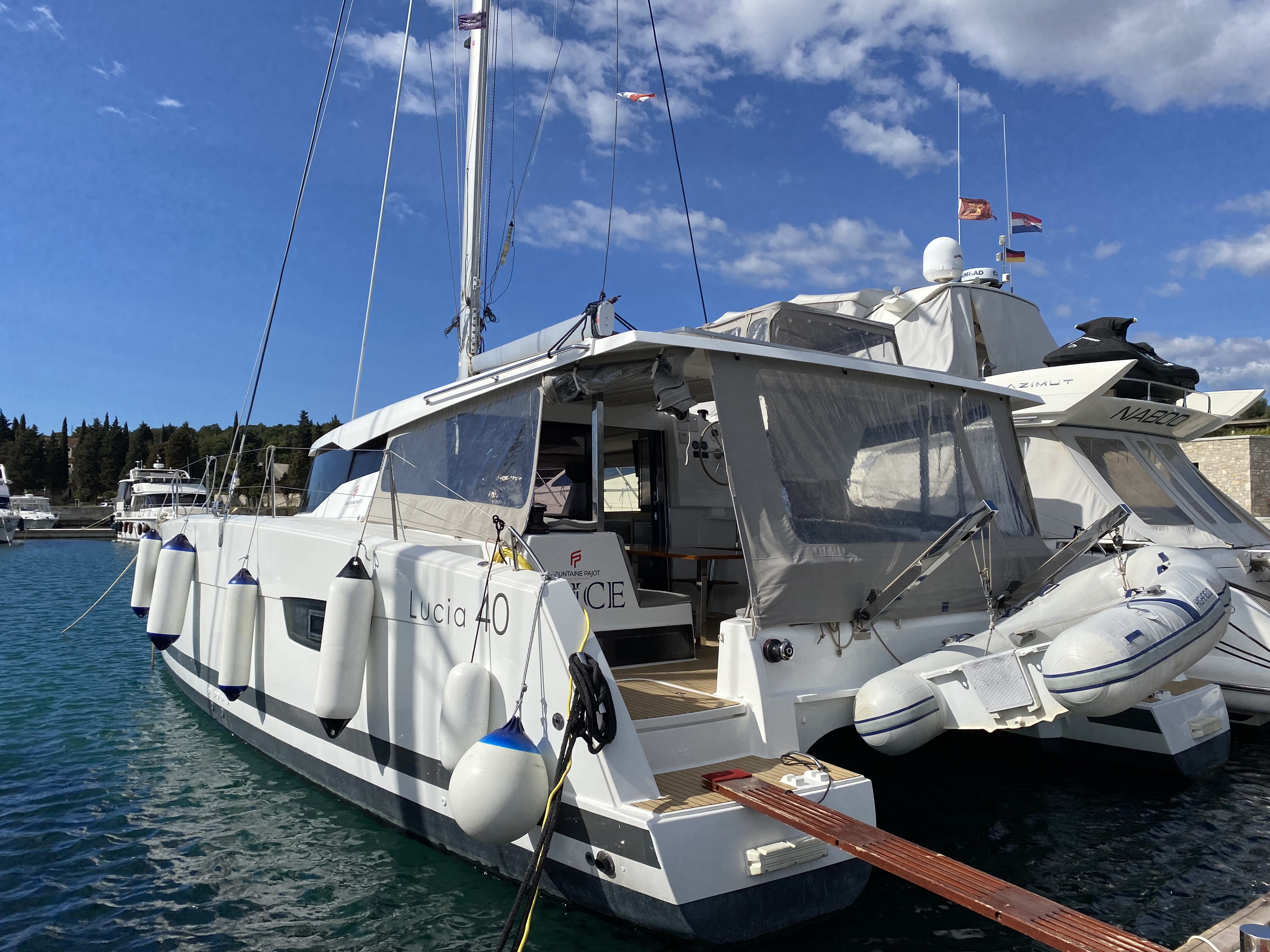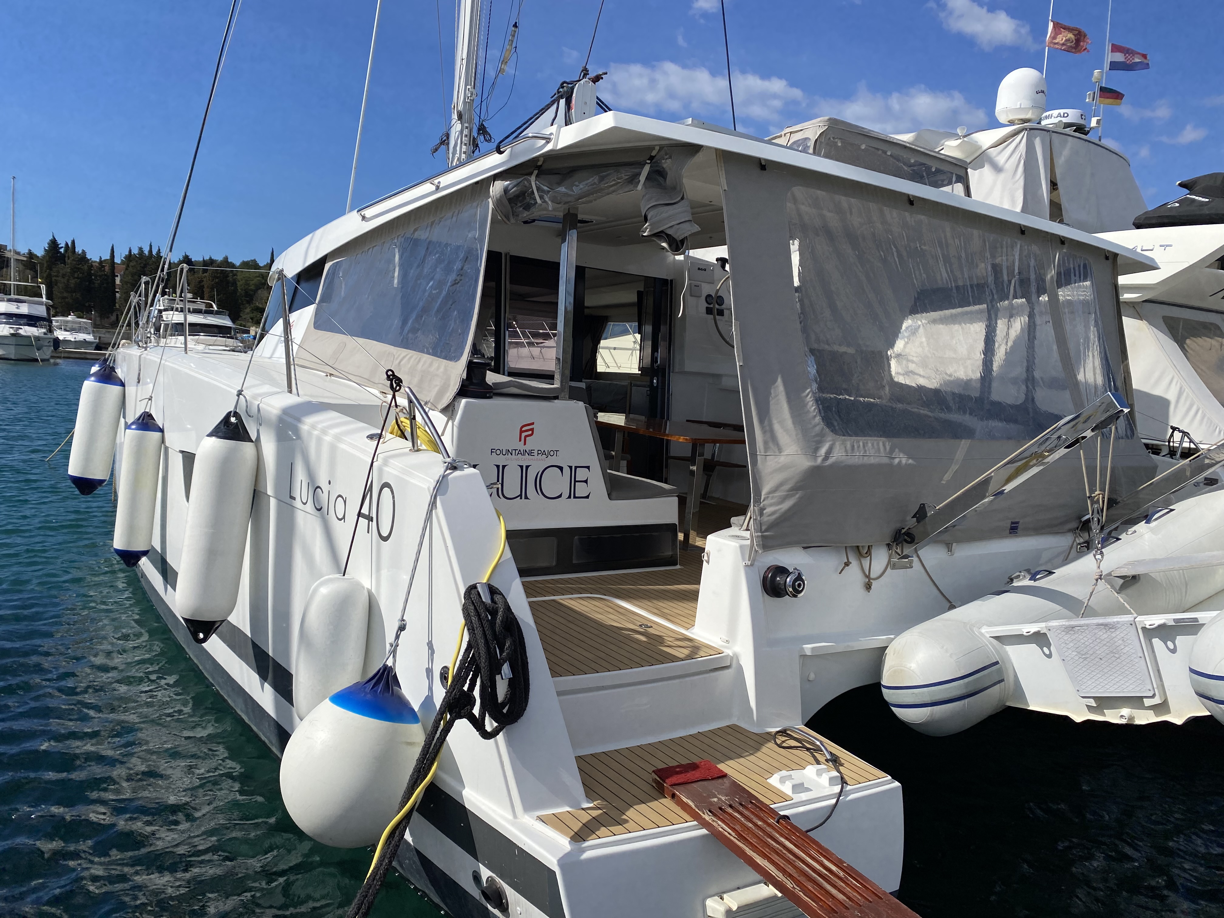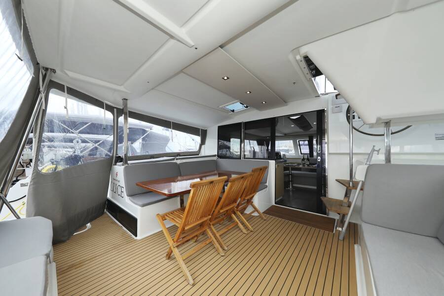 | Outside | Biminitop, Cockpitlautsprecher, Deckpolster, elektr. Ankerwinsch, Kuchenbude, Sprayhood, Teak im Cockpit, Unterwasserbeleuchtung, Winschen |