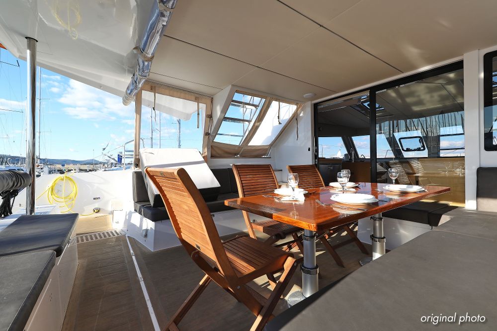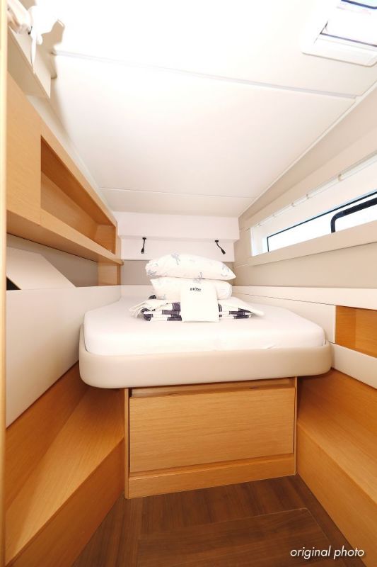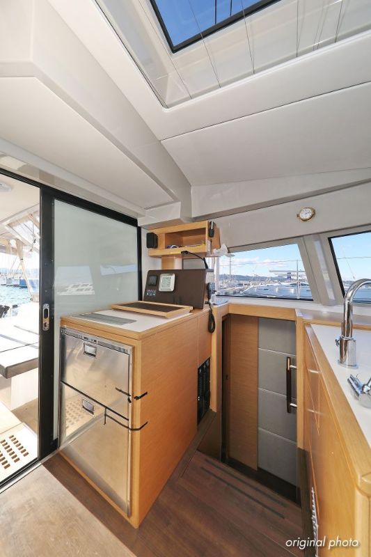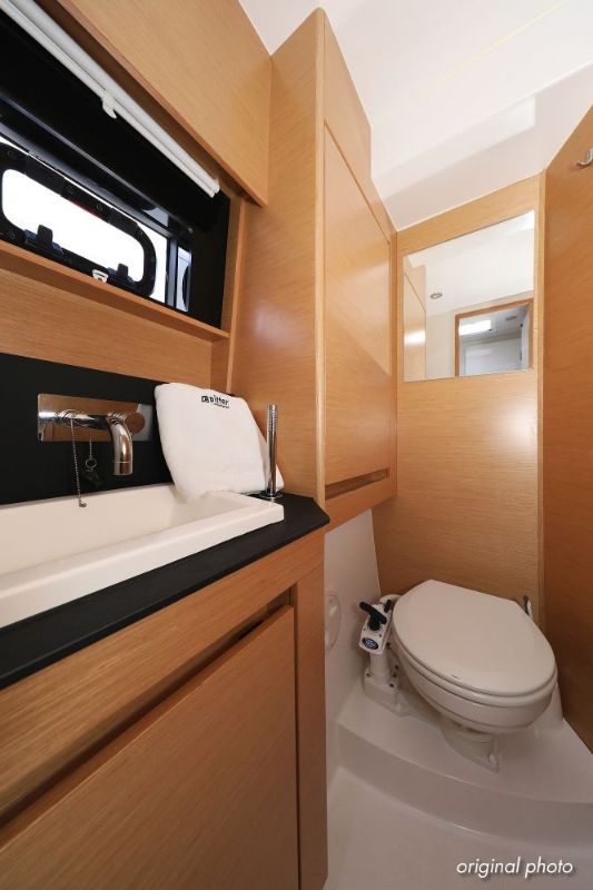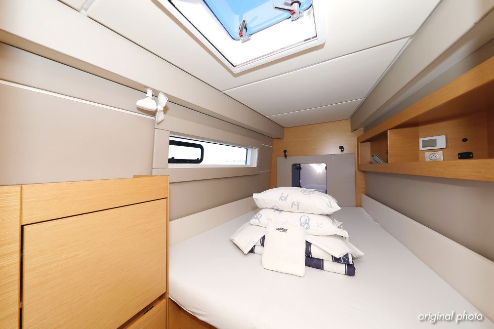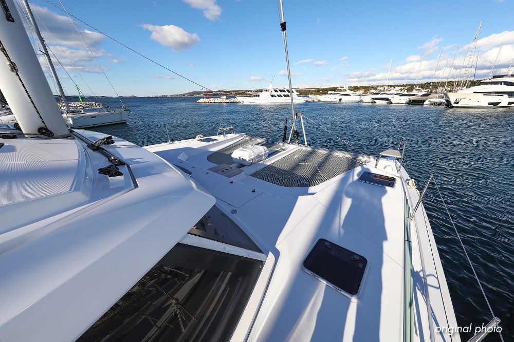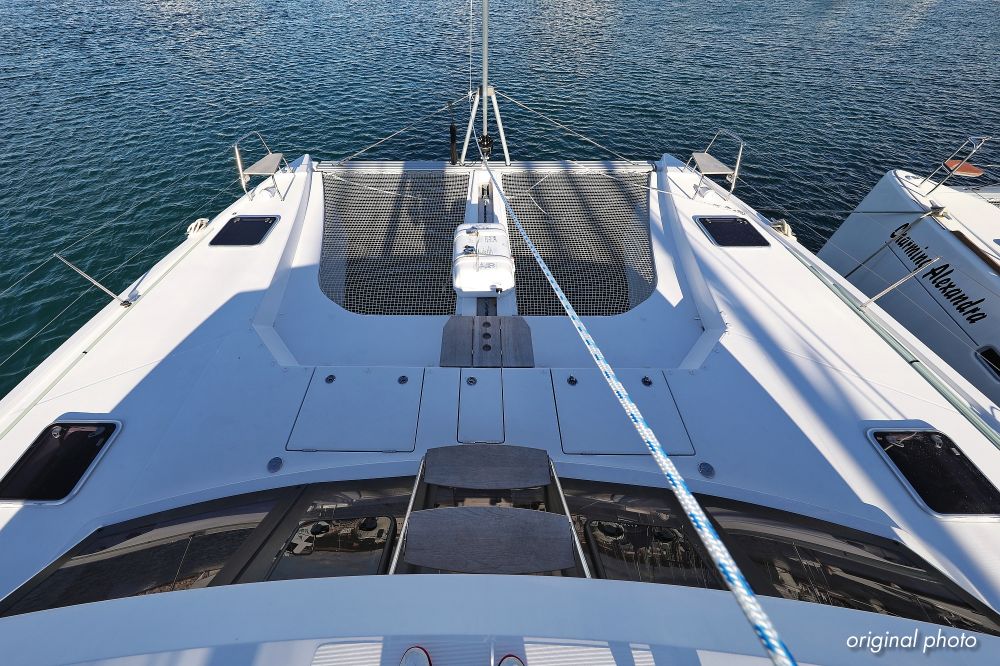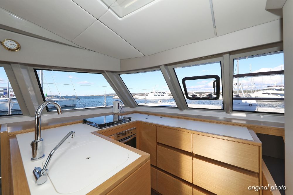 | Inside | Borduhr, Dusche, FUSION Sound System, Heizung, Inverter 12V/220V, Kühlschrank, Ladegerät, Luftpumpe für Beiboot, Pantryausstattung, Radio mit CD, MP3, USB und Bluetooth, USB Steckdose, Ventilatoren in Salon und Kabinen, Warmwasser |