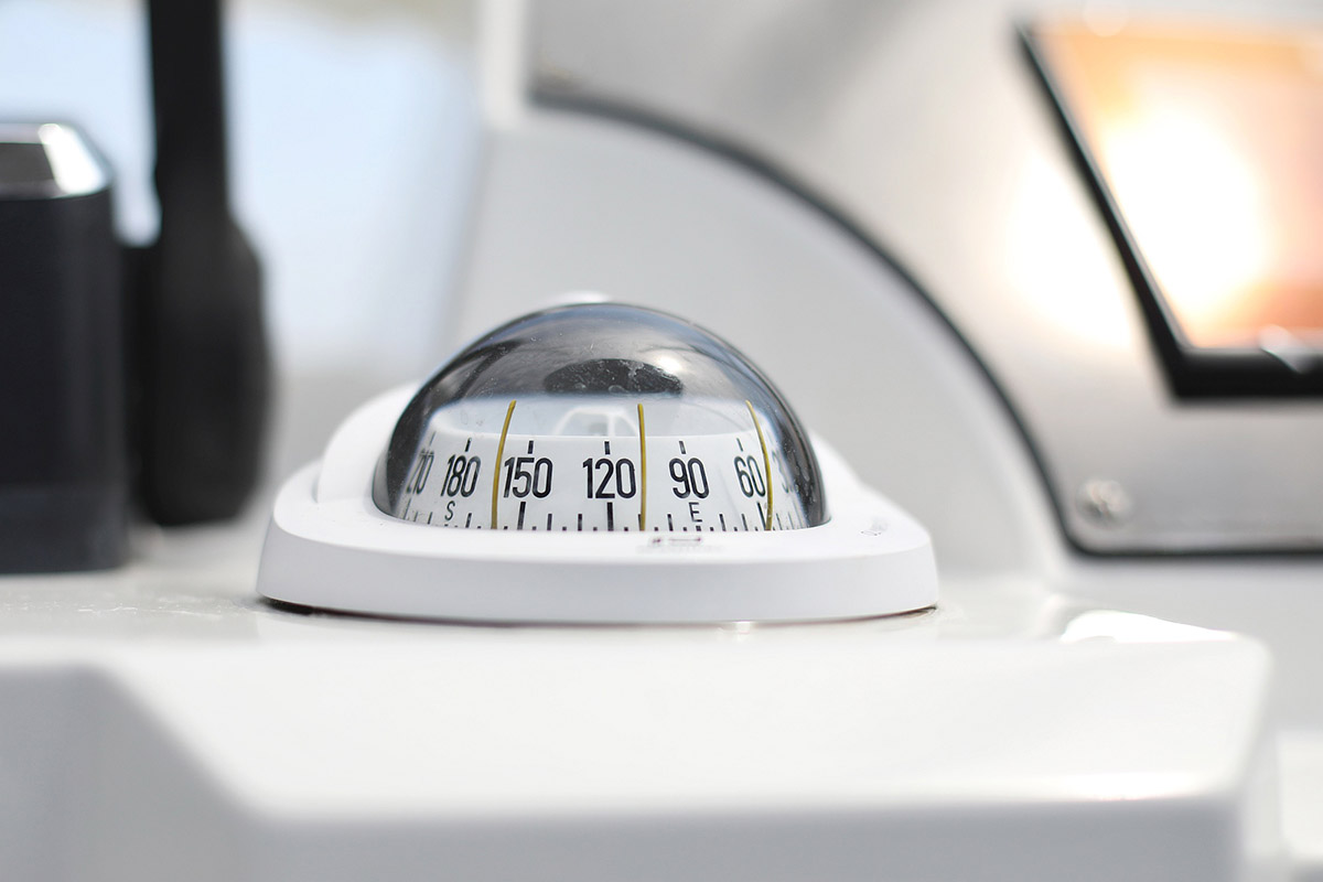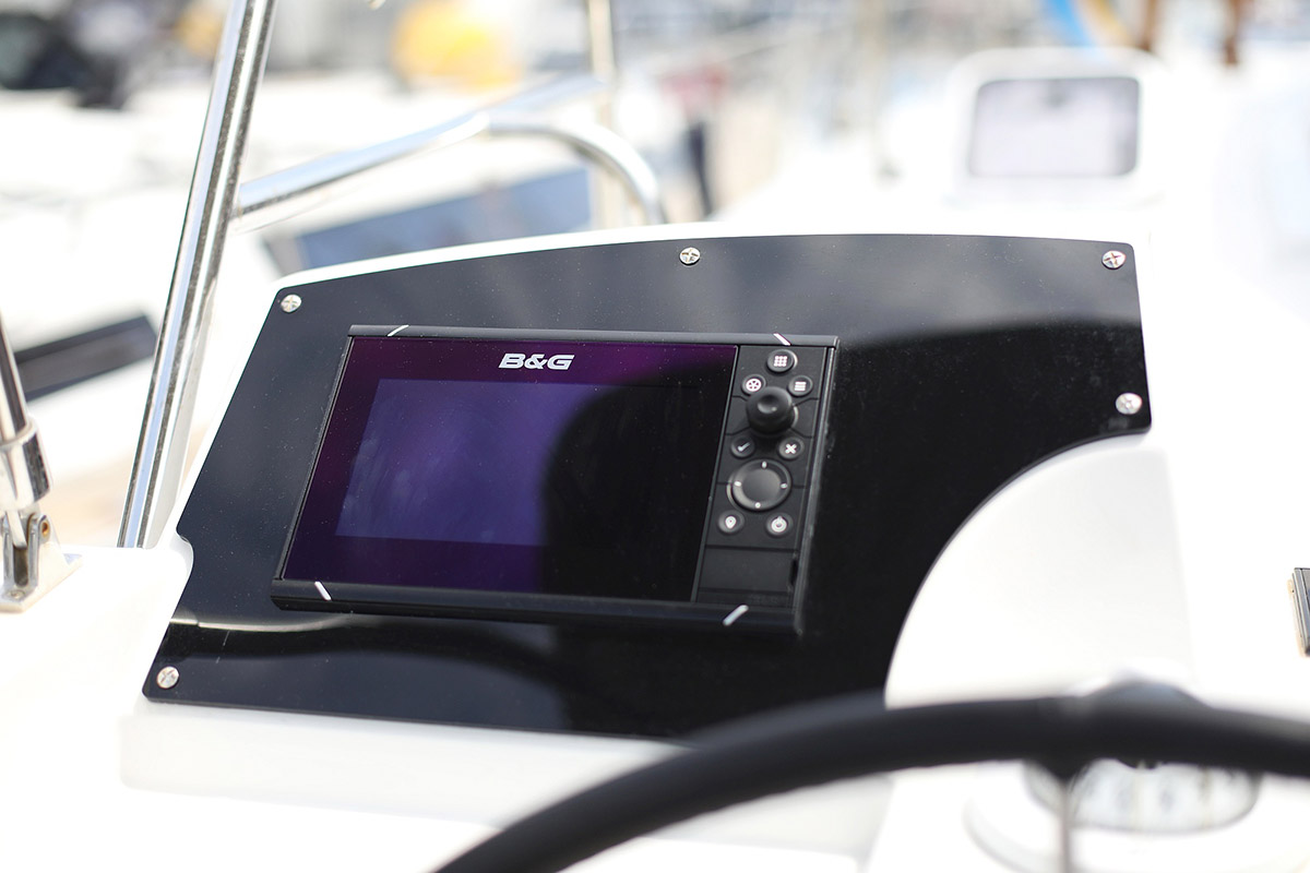 Barometer, Fernglas mit Peilkompass, GPS mit Kartenplotter im Cockpit, GPS mit Kartenplotter im Salon, Handpeilkompass, Navigationsbesteck, Seekarten, Tridata (Log, Echolot, Windm.), Windmesser |