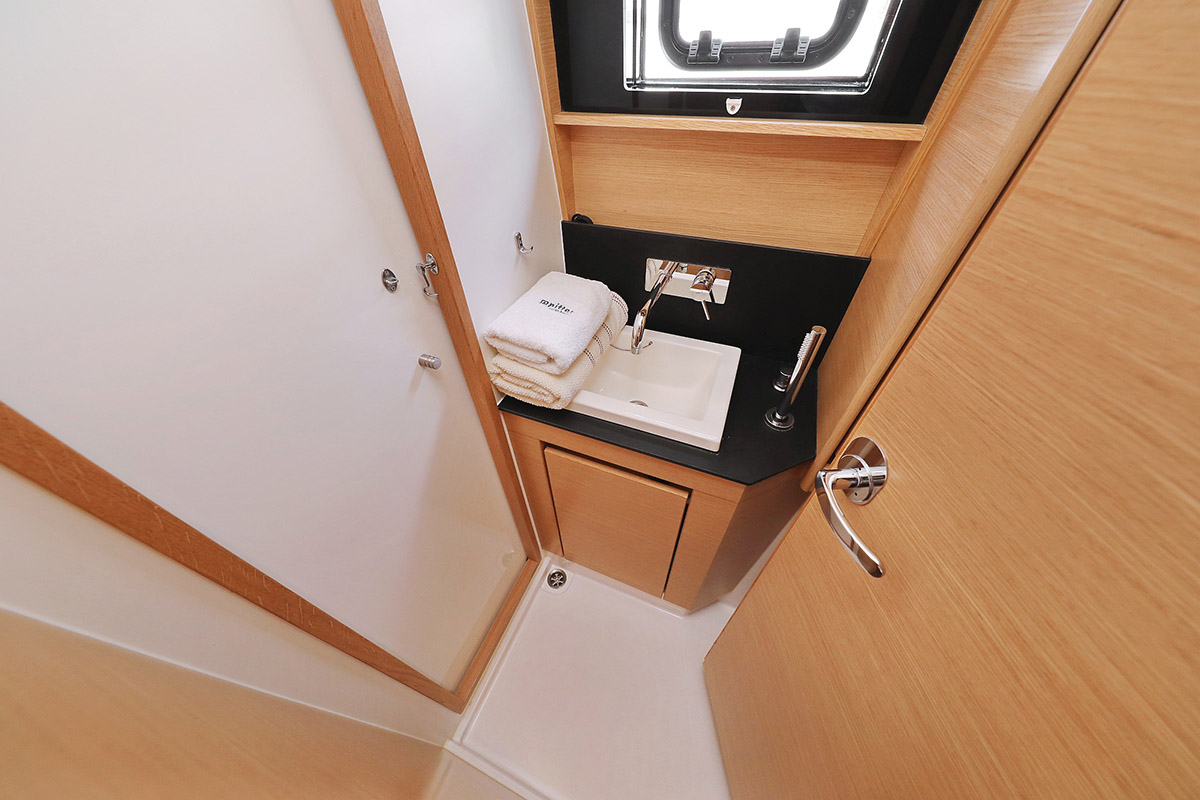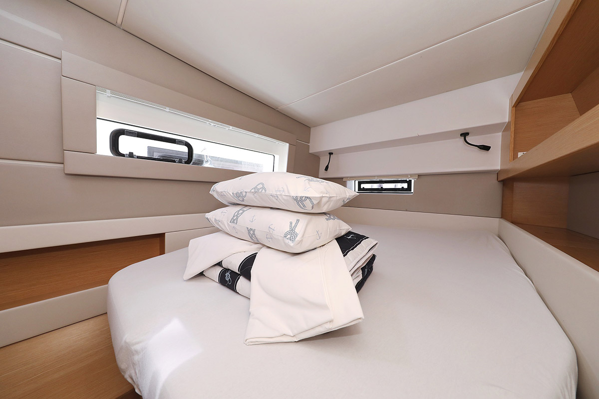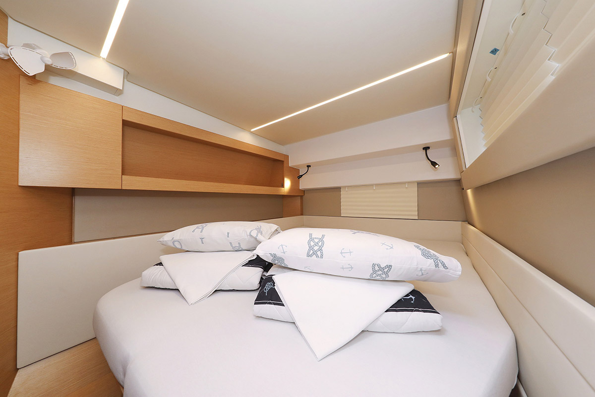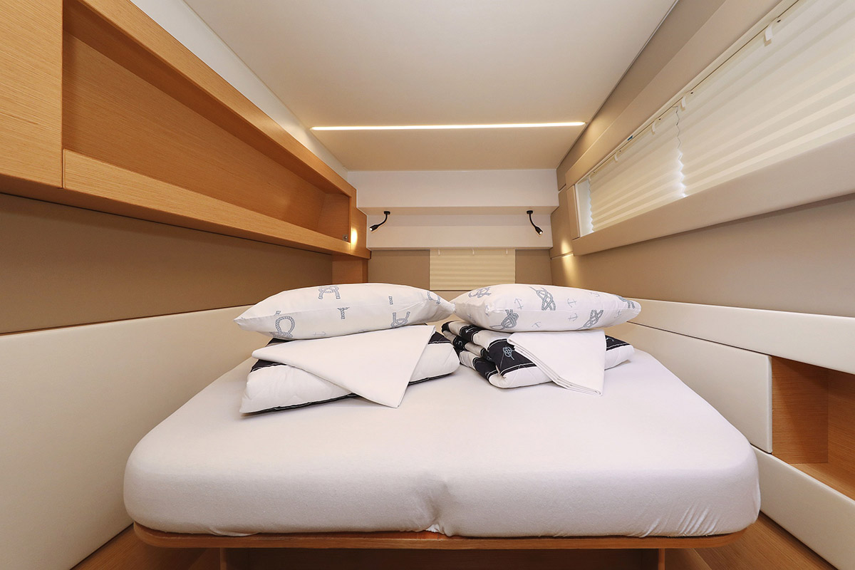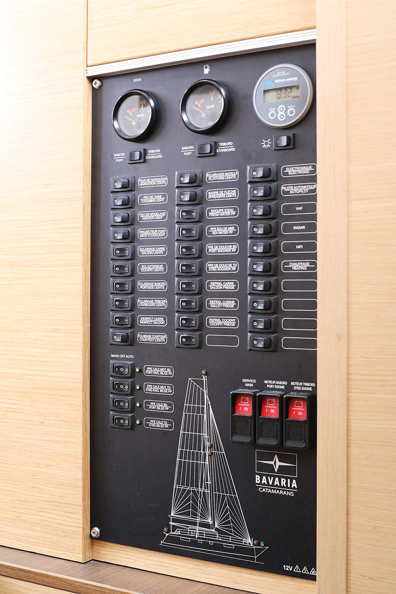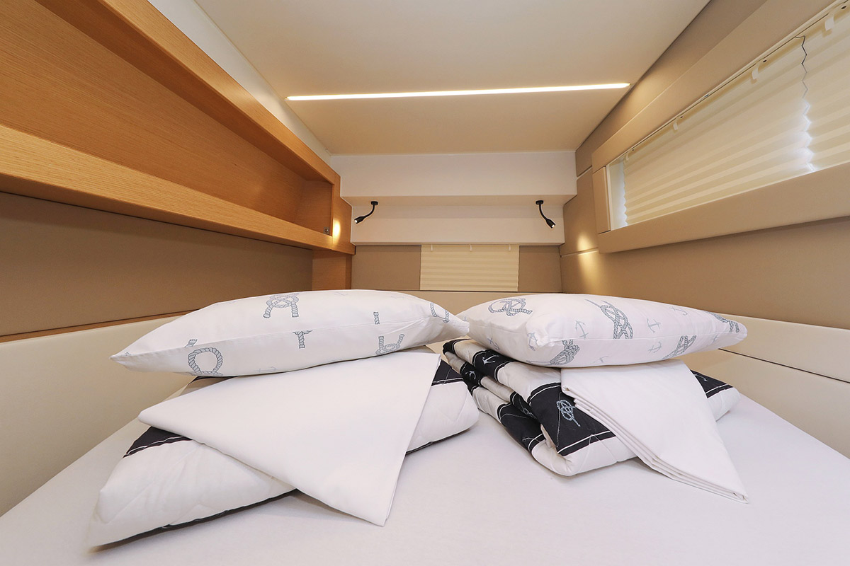 2. Kühlschrank, Borduhr, Dusche, Heizung, Inverter 12V/220V, Kühlschrank, Ladegerät, Luftpumpe für Beiboot, Pantryausstattung, Radio mit USB, MP3 und Bluetooth, USB Steckdosen in den Kabinen, Ventilatoren in Kabinen, Warmwasser |