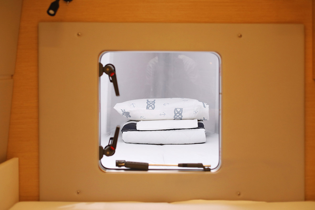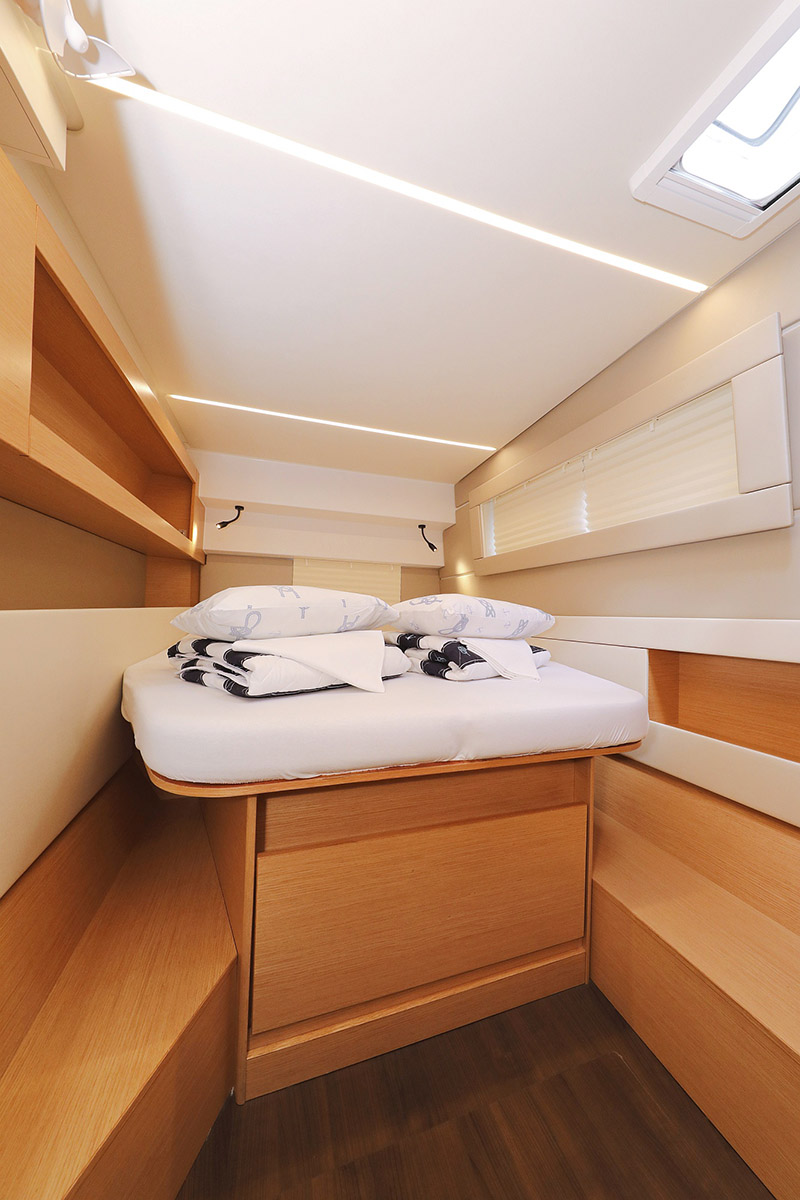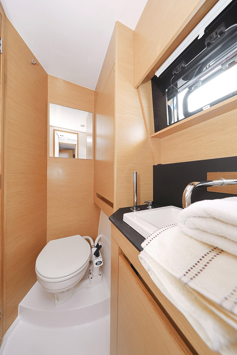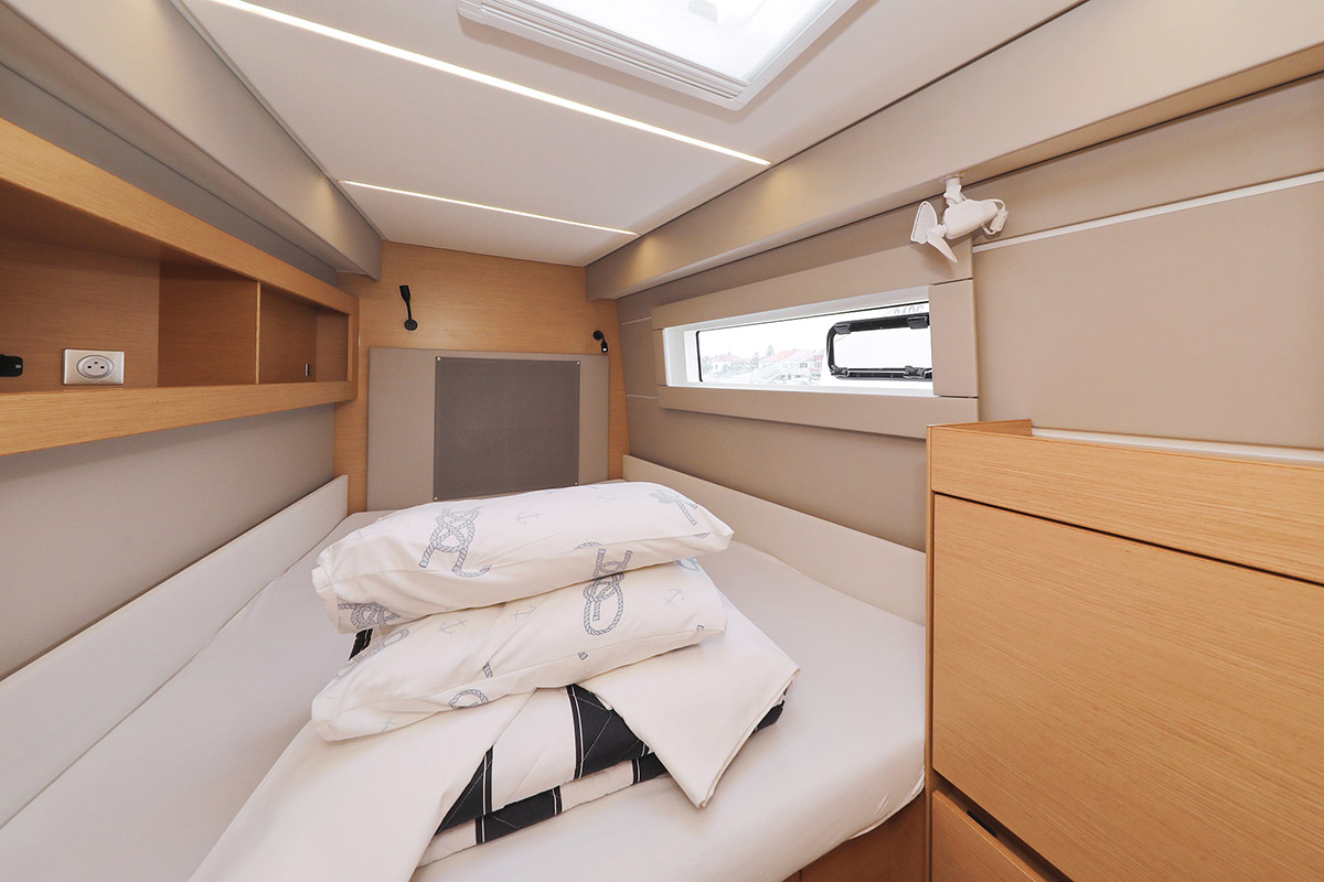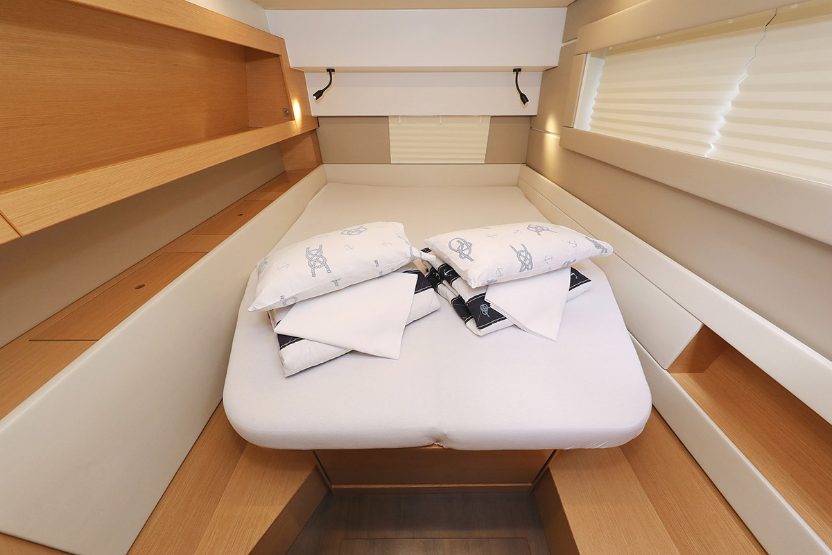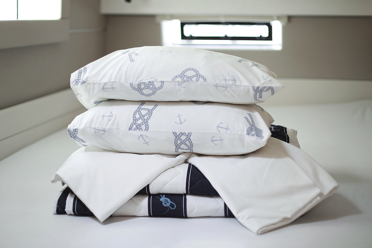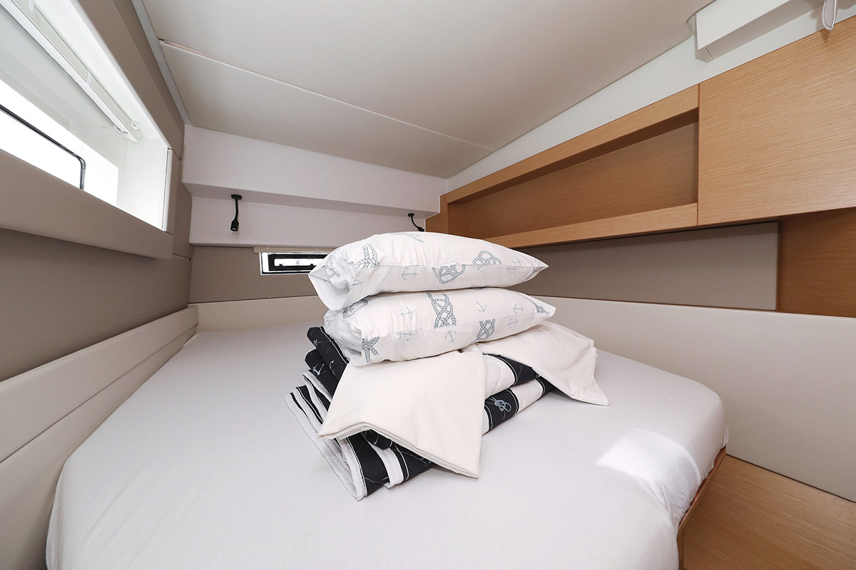 2. Kühlschrank, Borduhr, Dusche, Heizung, Inverter 12V/220V, Kühlschrank, Ladegerät, Luftpumpe für Beiboot, Pantryausstattung, Radio mit USB, MP3 und Bluetooth, USB Steckdosen in den Kabinen, Ventilatoren in Kabinen, Warmwasser |