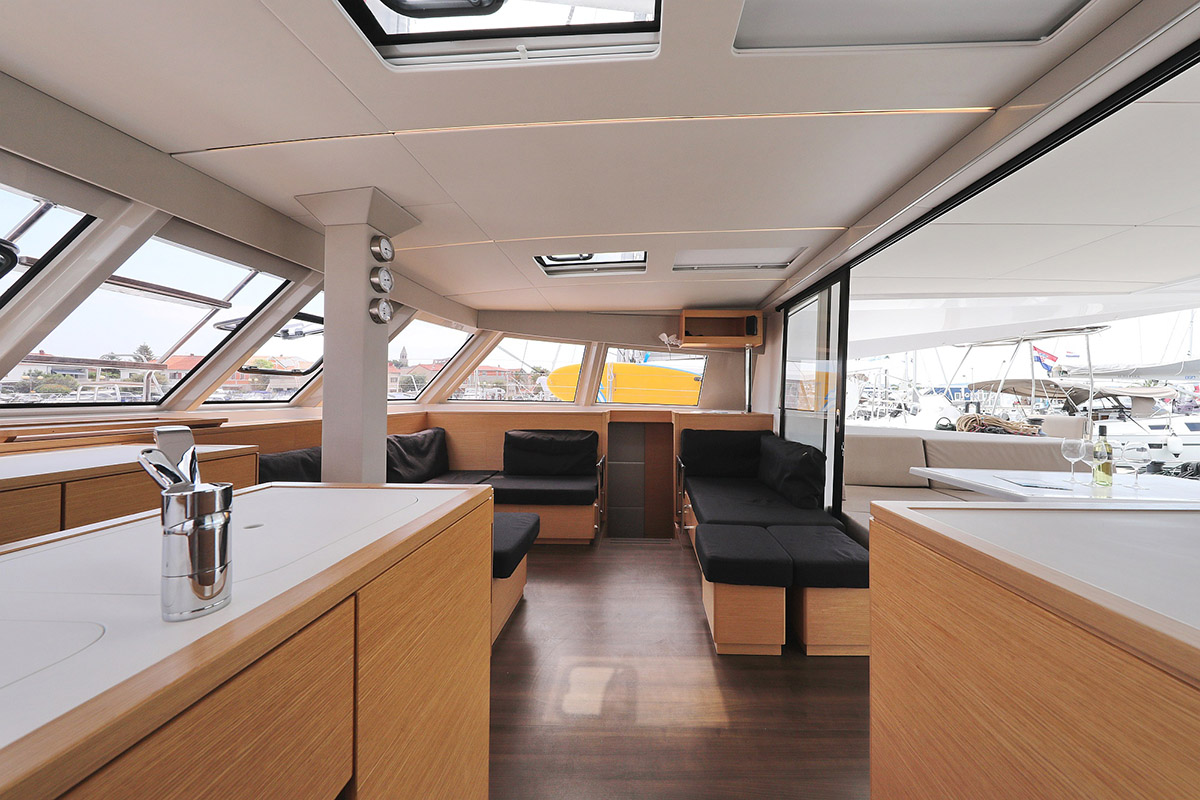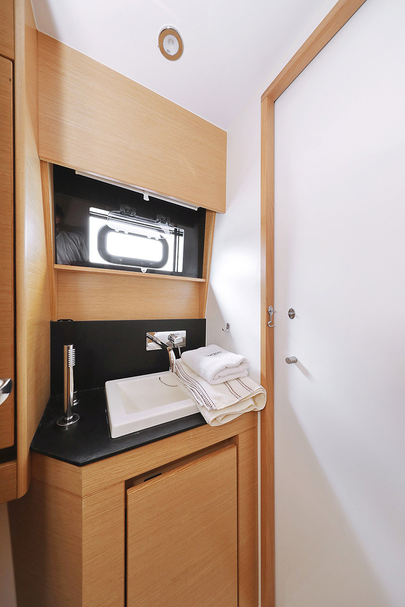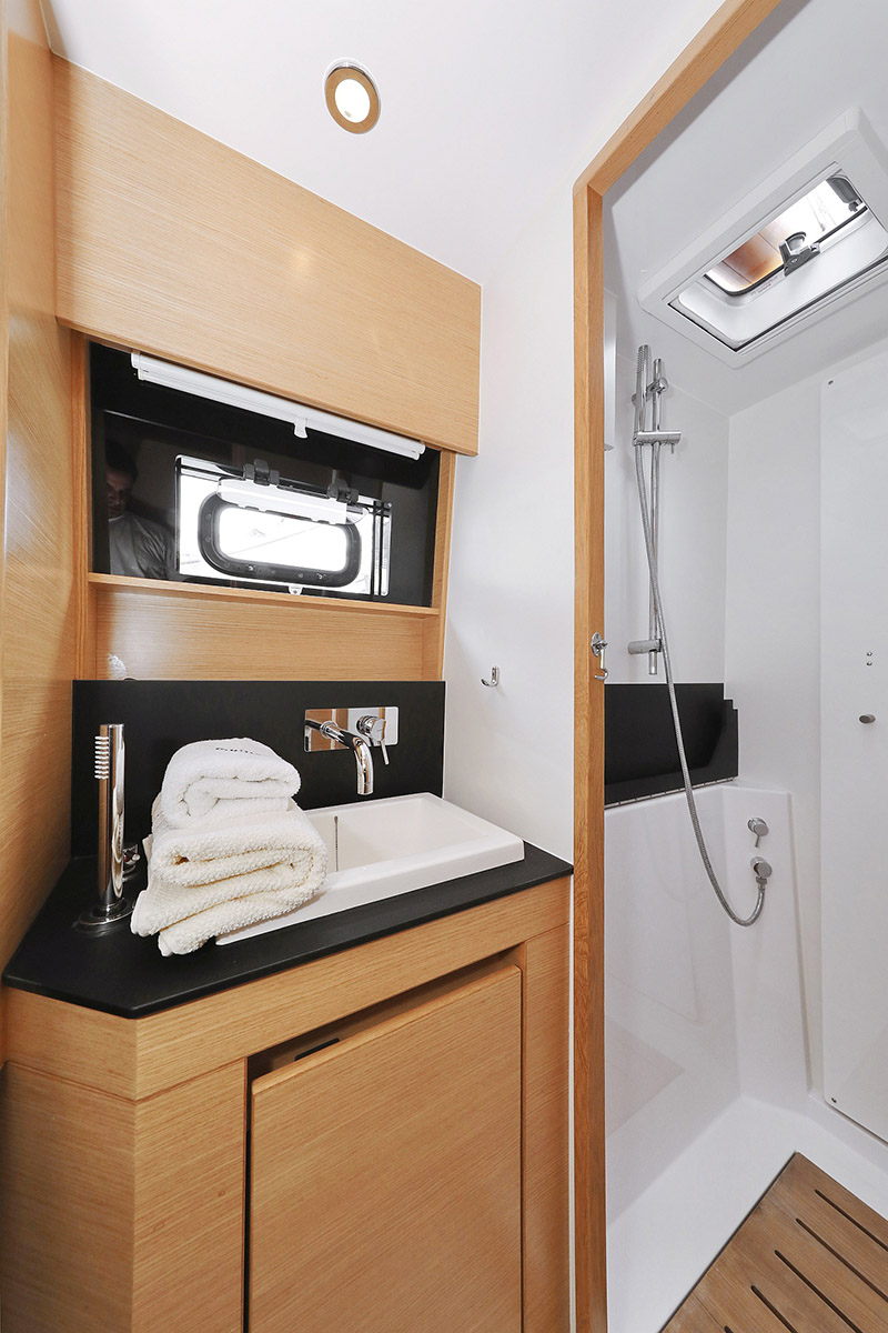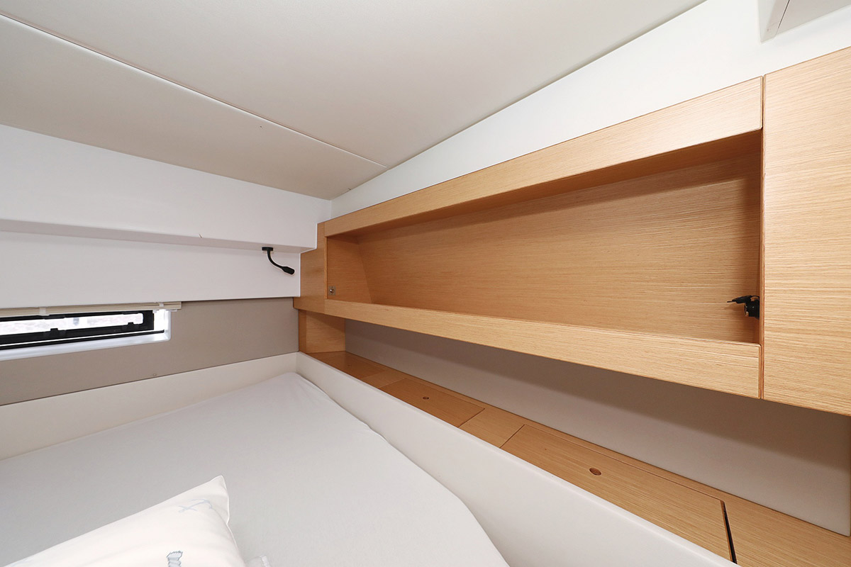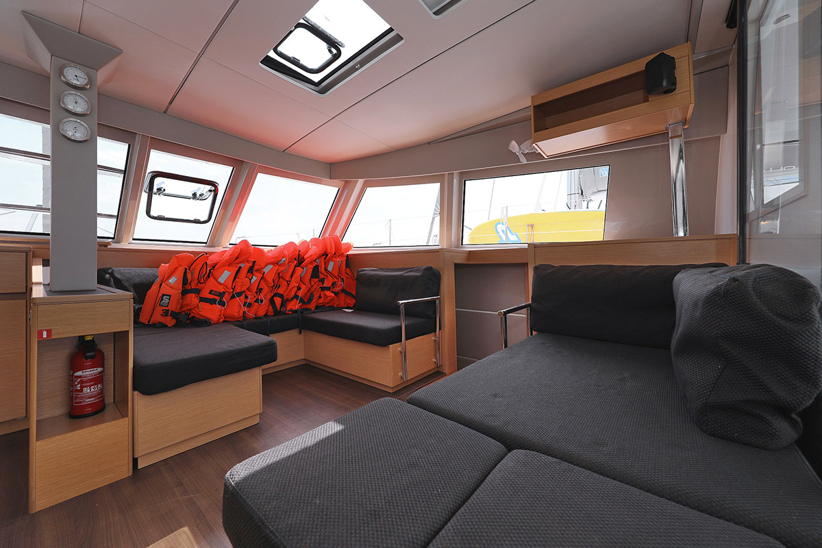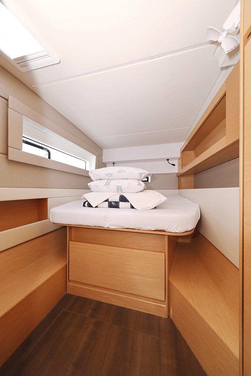 2. Kühlschrank, Borduhr, Dusche, Heizung, Inverter 12V/220V, Kühlschrank, Ladegerät, Luftpumpe für Beiboot, Pantryausstattung, Radio mit USB, MP3 und Bluetooth, USB Steckdosen in den Kabinen, Ventilatoren in Kabinen, Warmwasser |