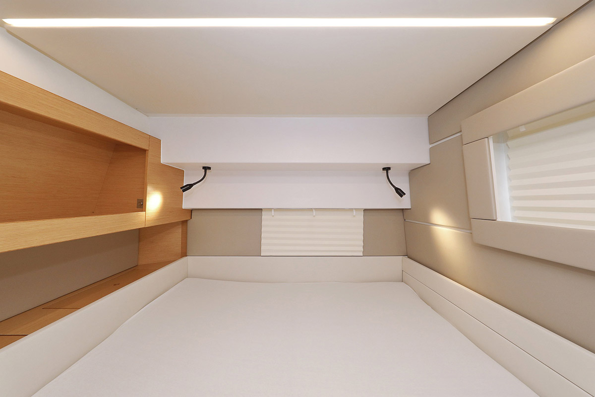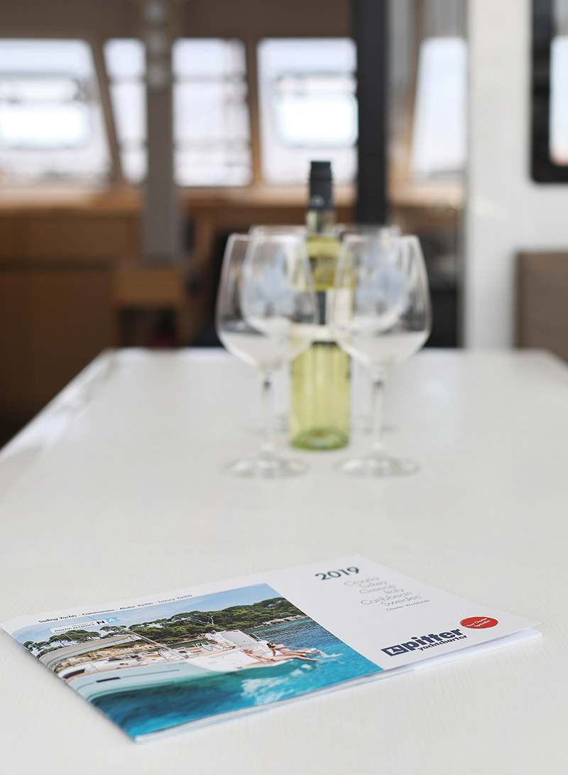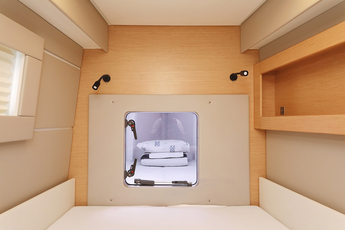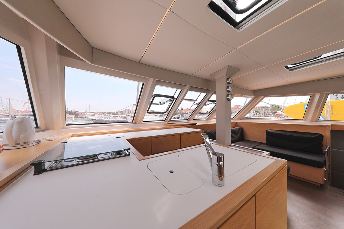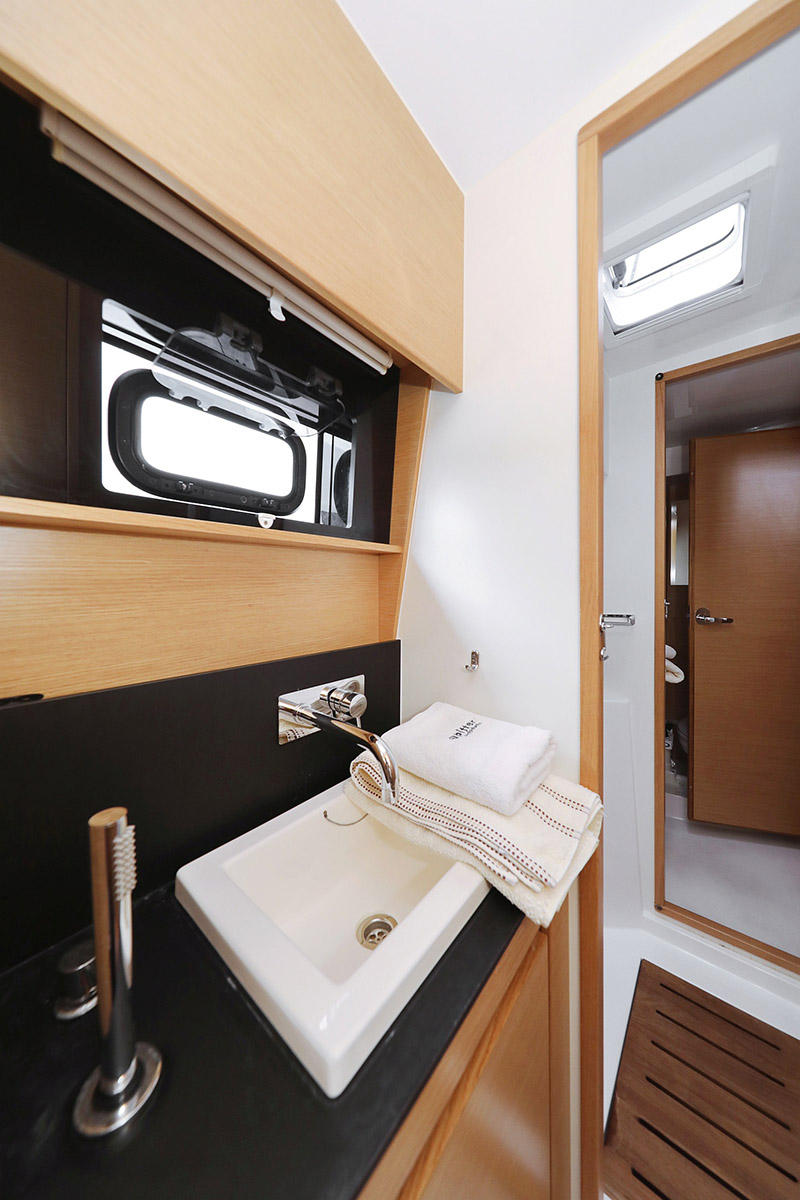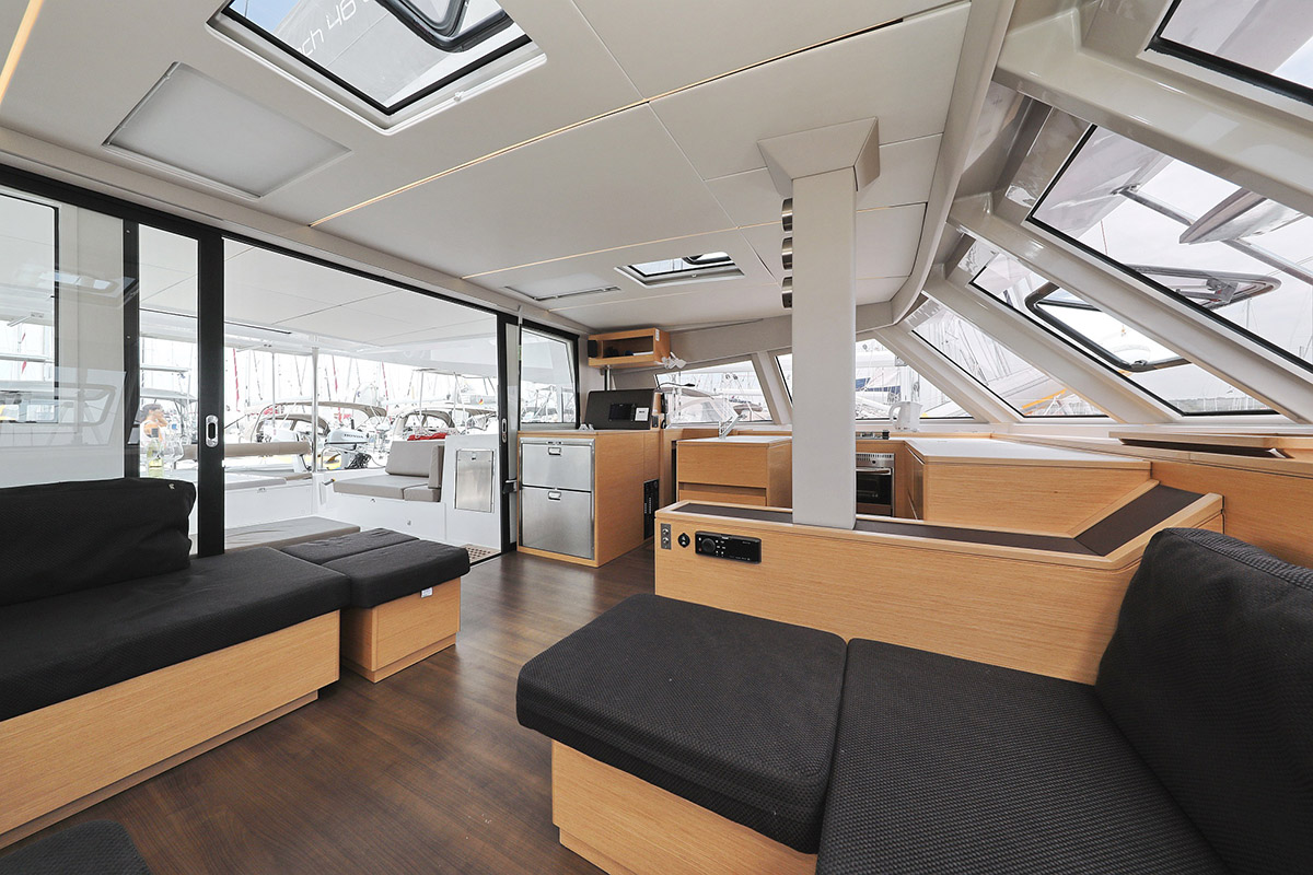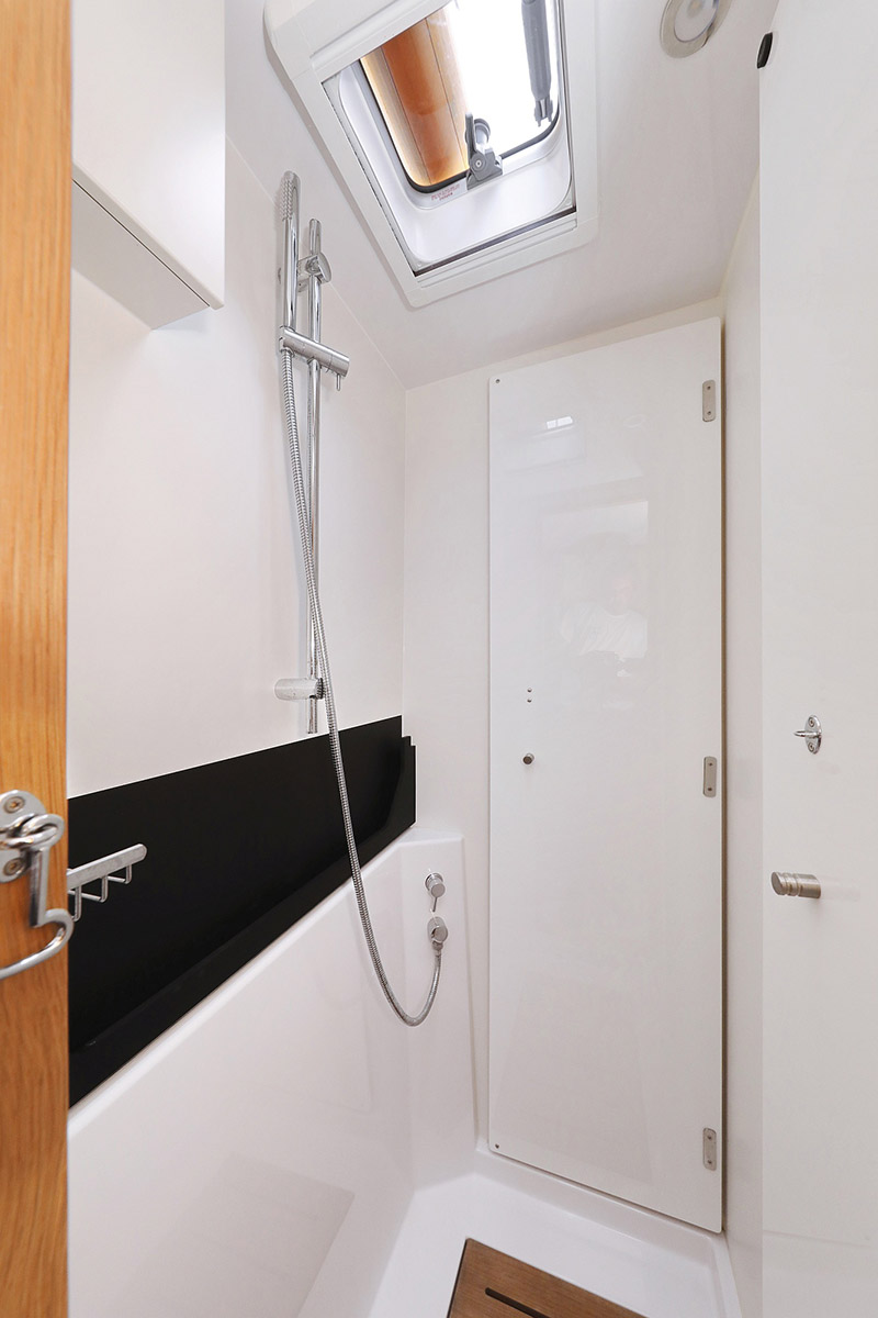 2. Kühlschrank, Borduhr, Dusche, Heizung, Inverter 12V/220V, Kühlschrank, Ladegerät, Luftpumpe für Beiboot, Pantryausstattung, Radio mit USB, MP3 und Bluetooth, USB Steckdosen in den Kabinen, Ventilatoren in Kabinen, Warmwasser |