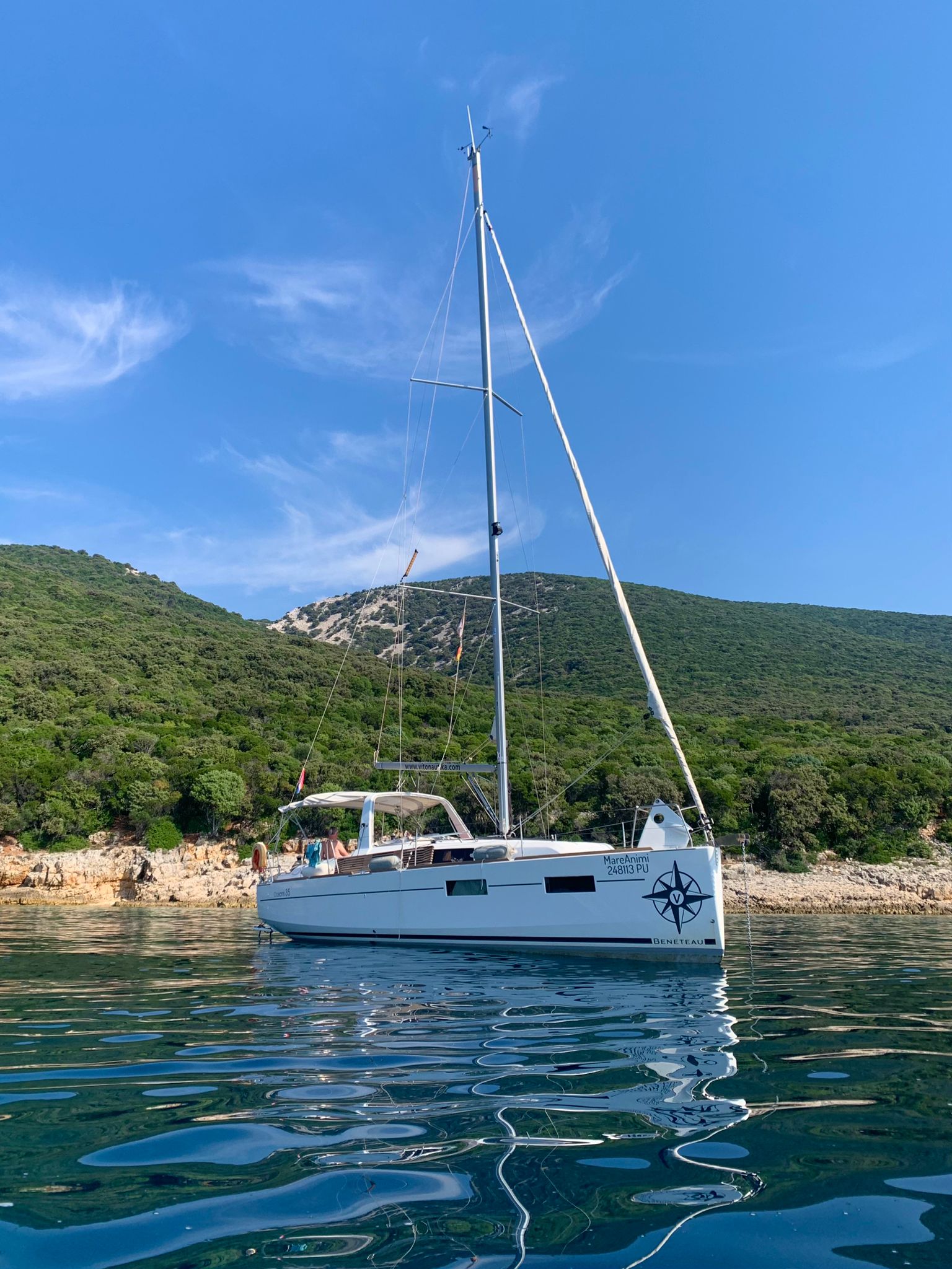 | Navigation | Barometer, Fernglas, GPS mit Kartenplotter im Cockpit, Hafenhandbücher, Handpeilkompass, Navigationsbesteck, Seekarten, Tridata (Log, Echolot, Windm.) |
