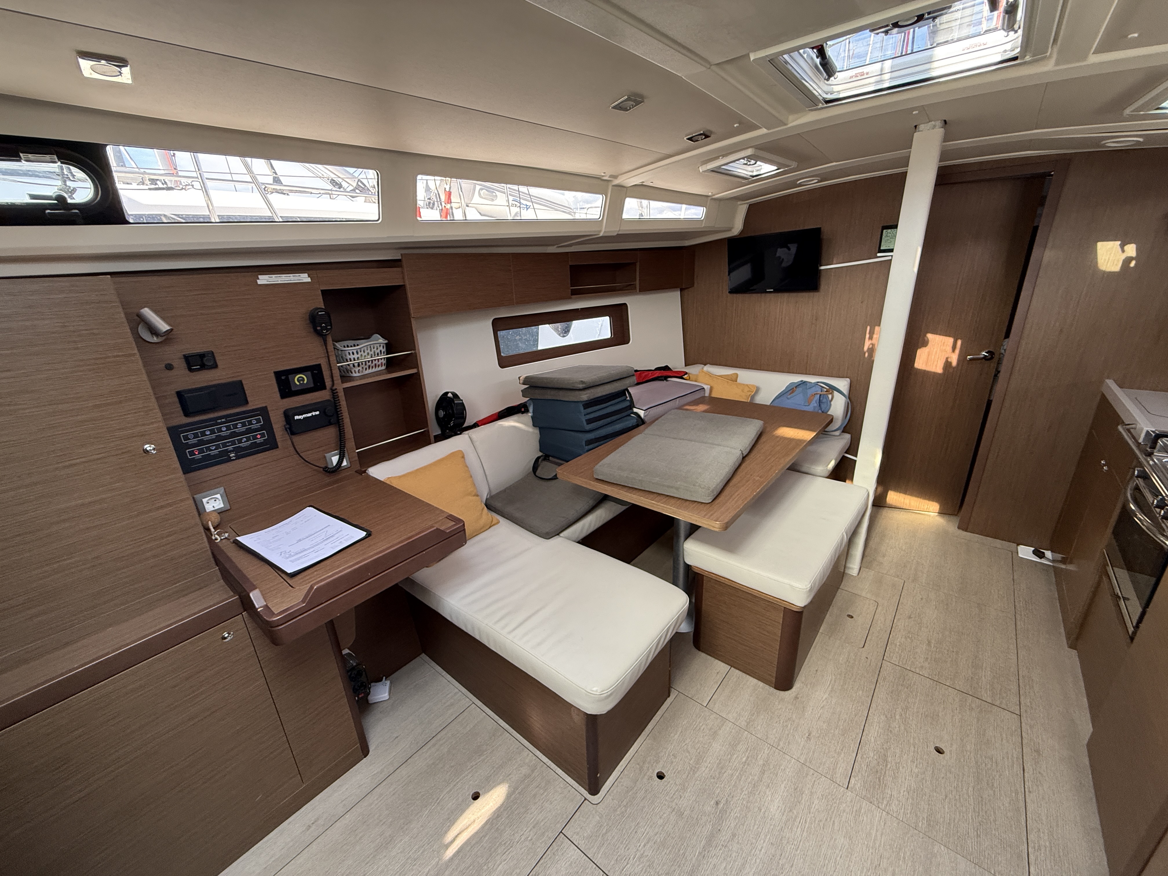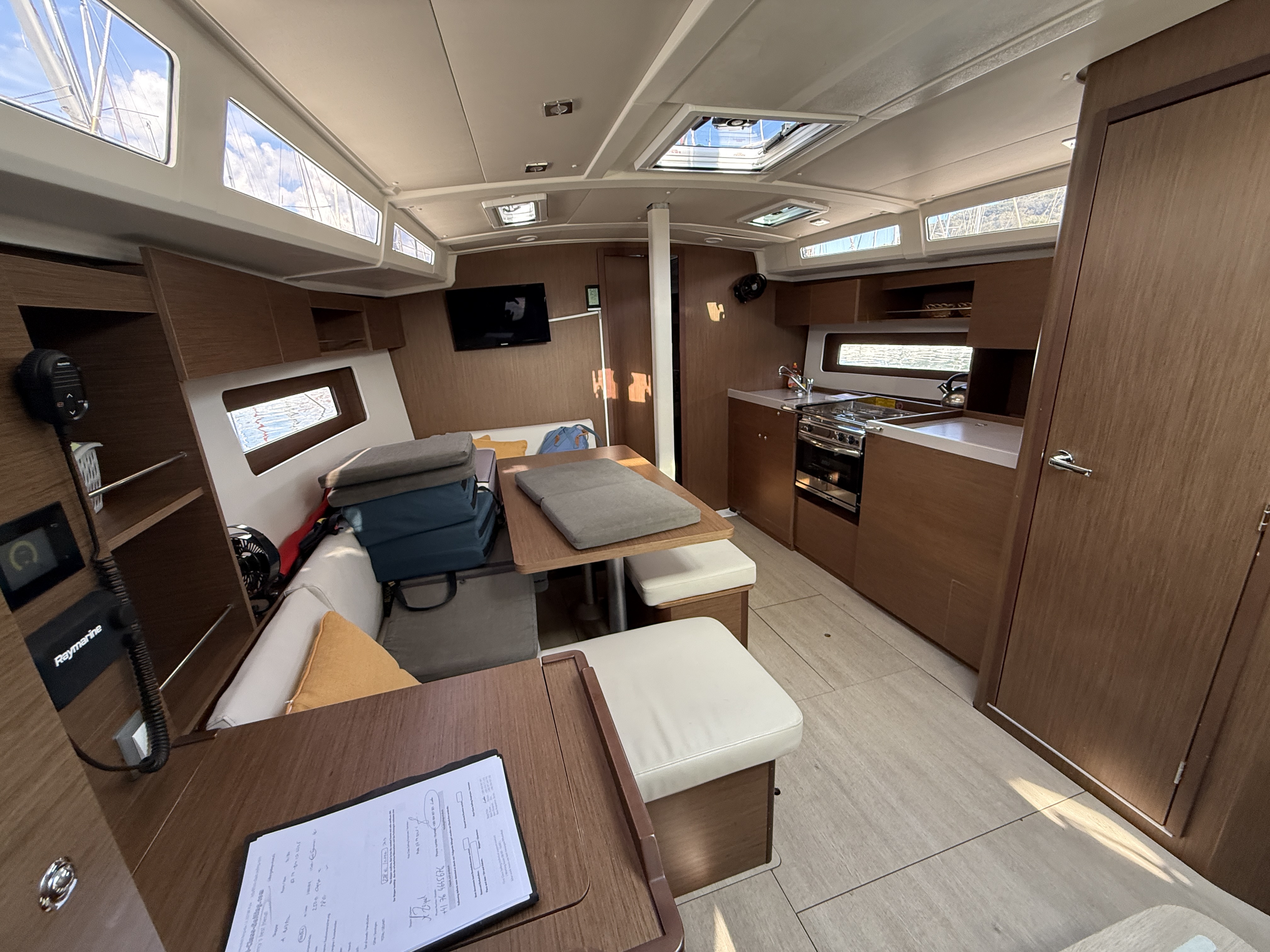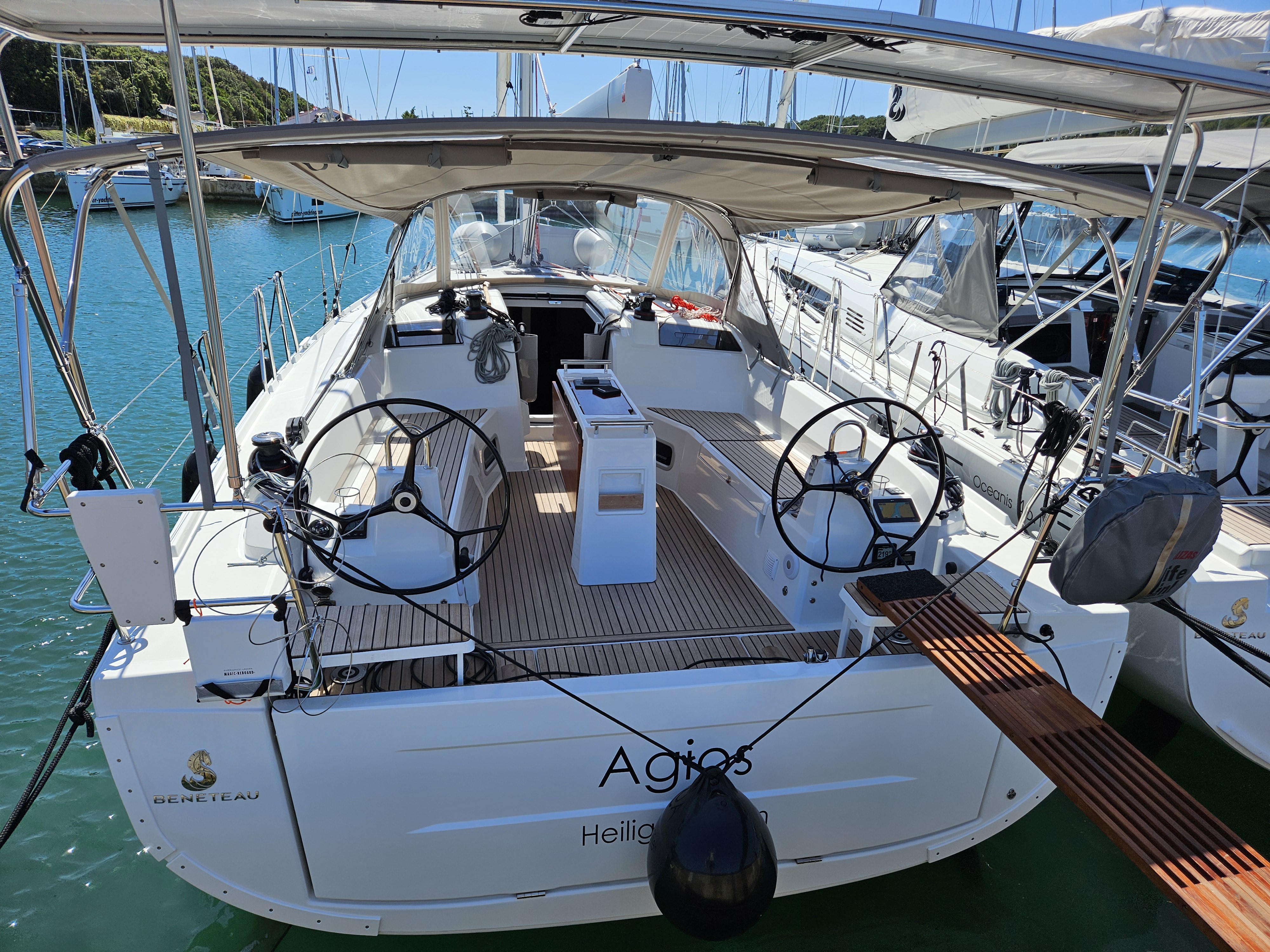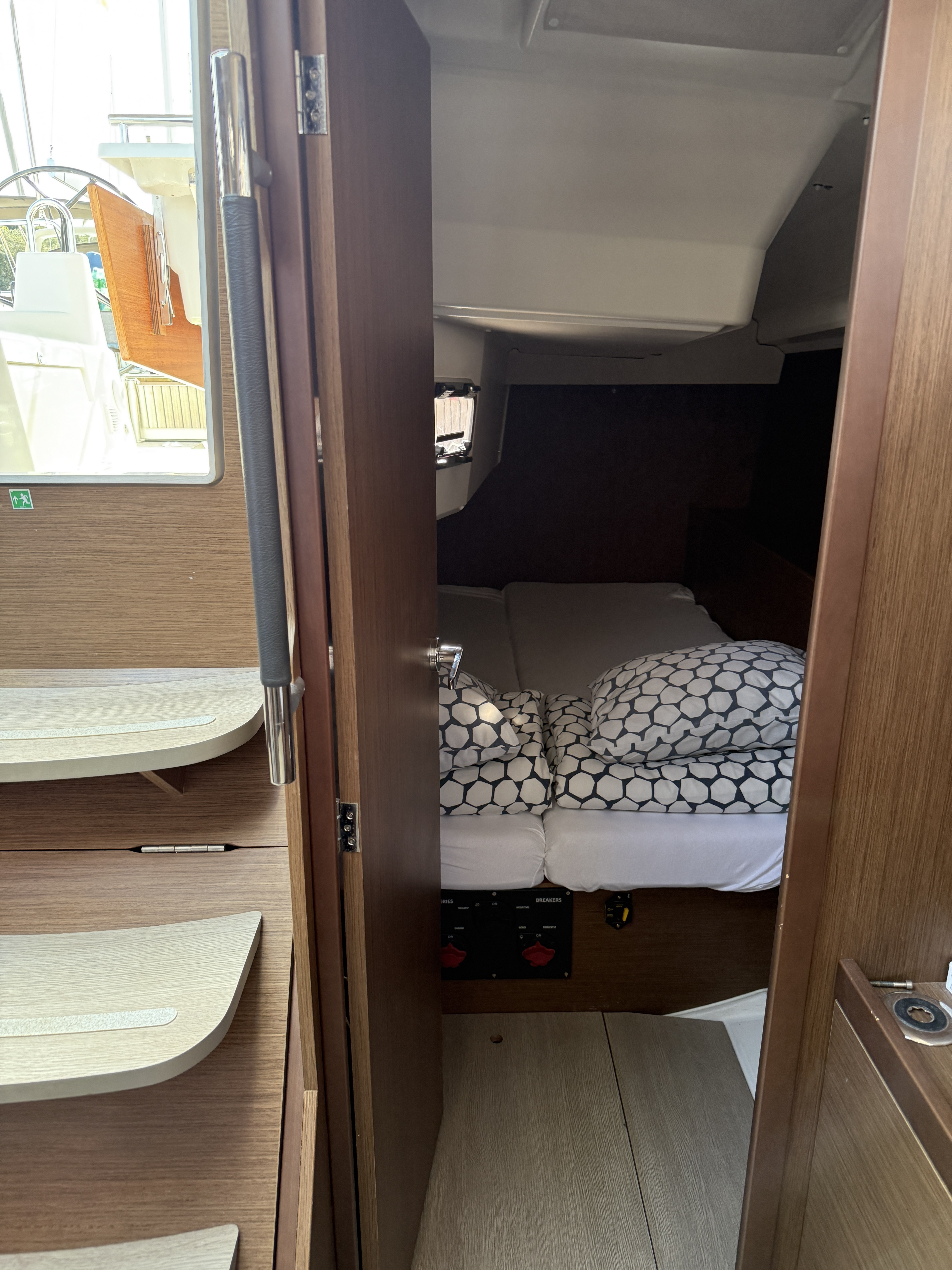 | Safety | AIS Empfänger, Ankerlicht, Automatikwesten, Autopilot, Bootmesser, Bootsmannstuhl, Bordapotheke, Bordwerkzeug, Bugstrahlruder, elektr. Bilgepumpe, Feuerlöscher, Flaggen, Handbilgepumpe, Navigationslichter, Nebelhorn, Notpinne, Notsignale, Rettungsinsel, Rettungskragen, Taschenlampe, UKW-Funk, Zweitanker |