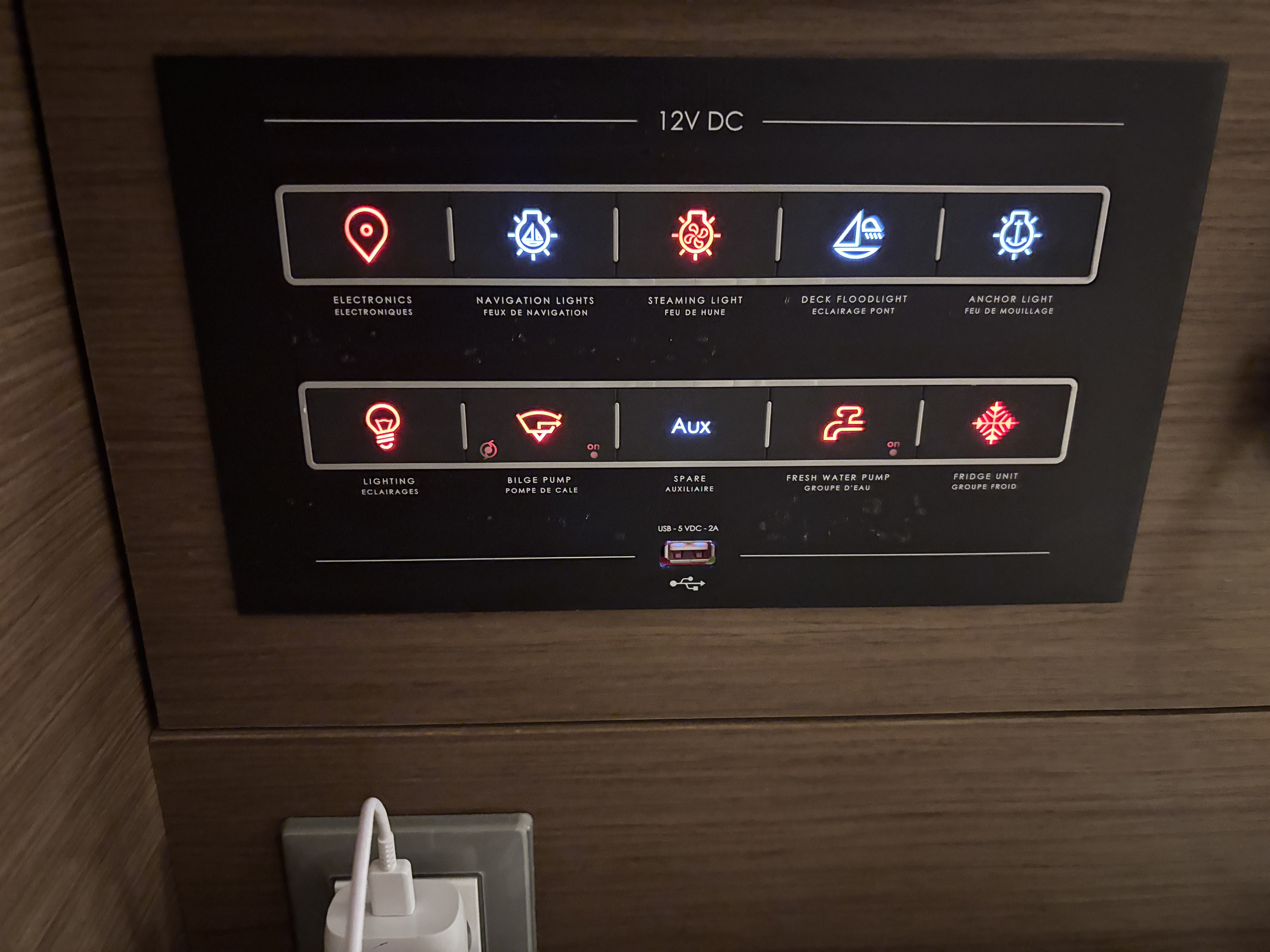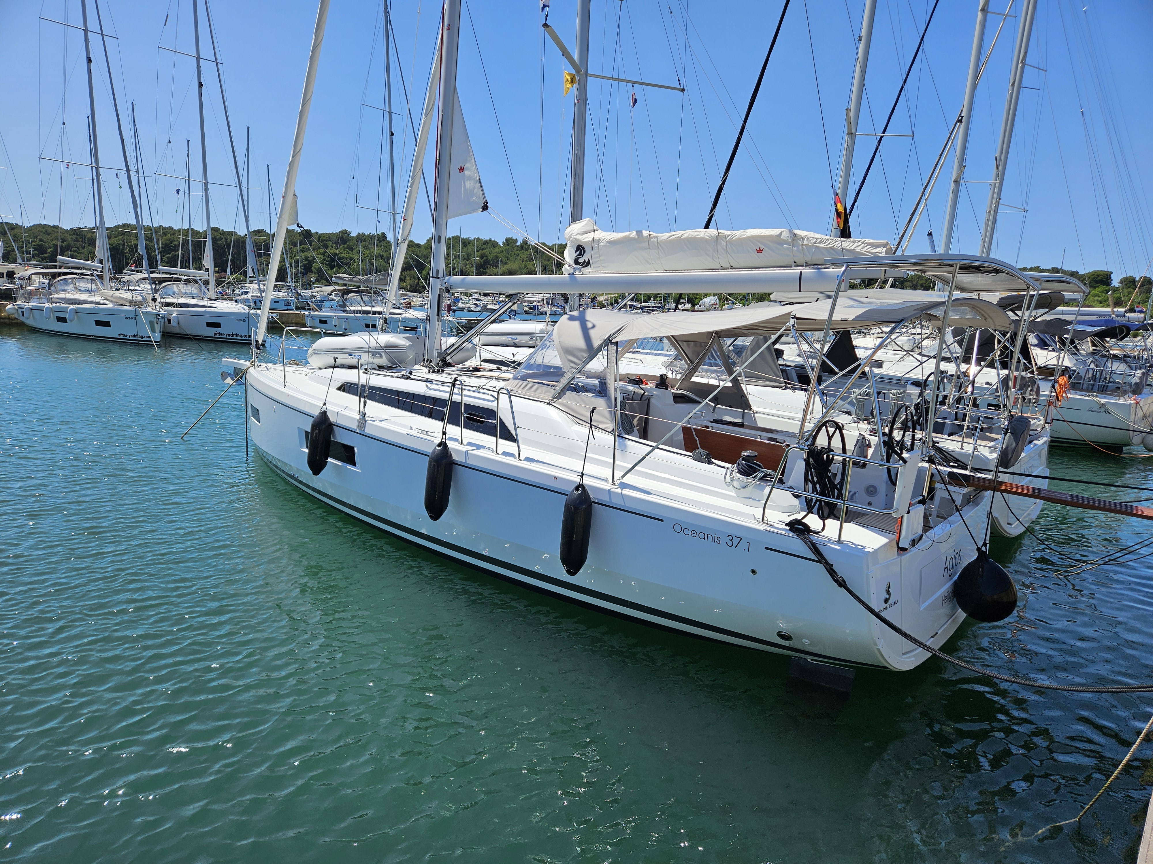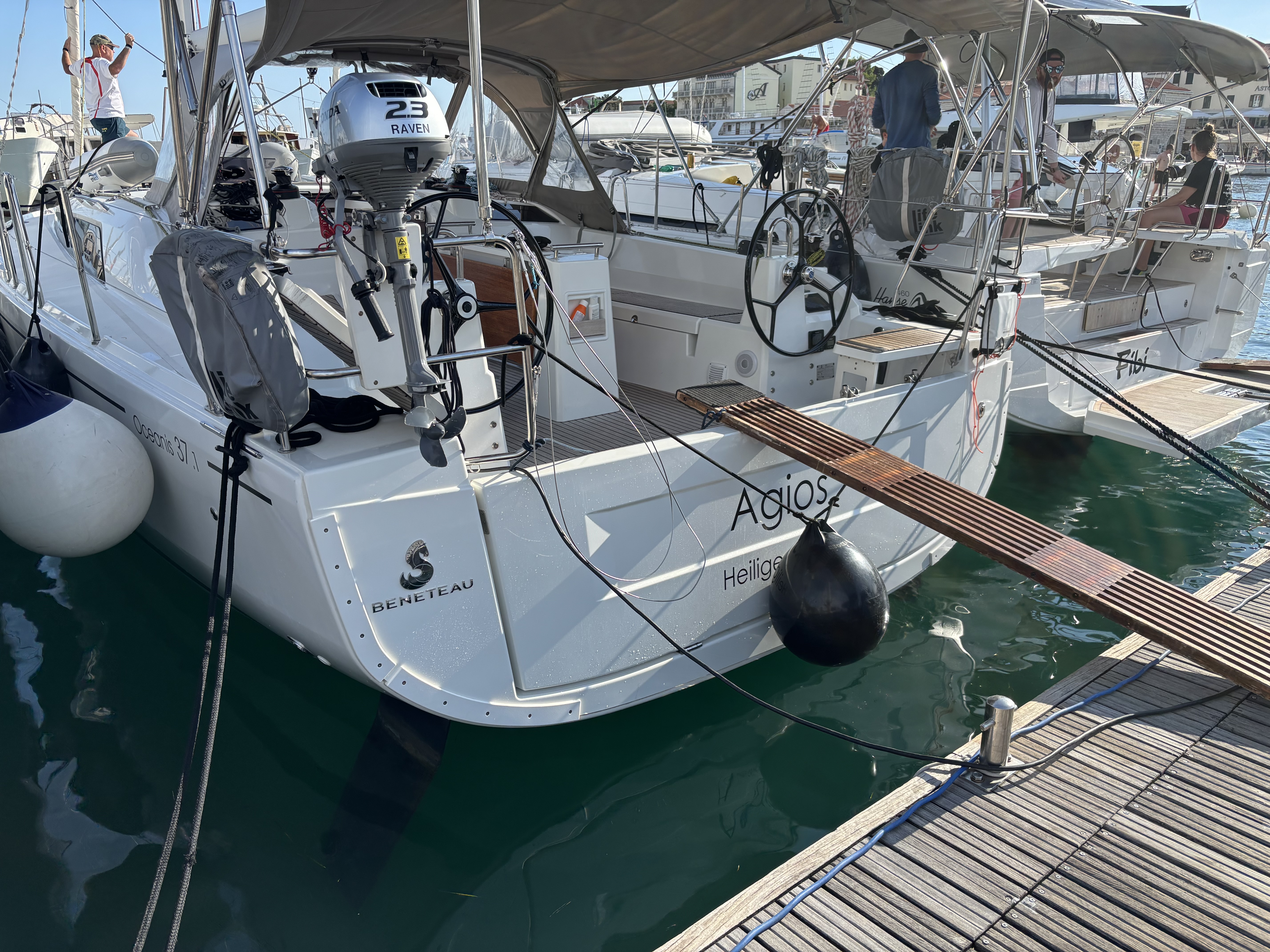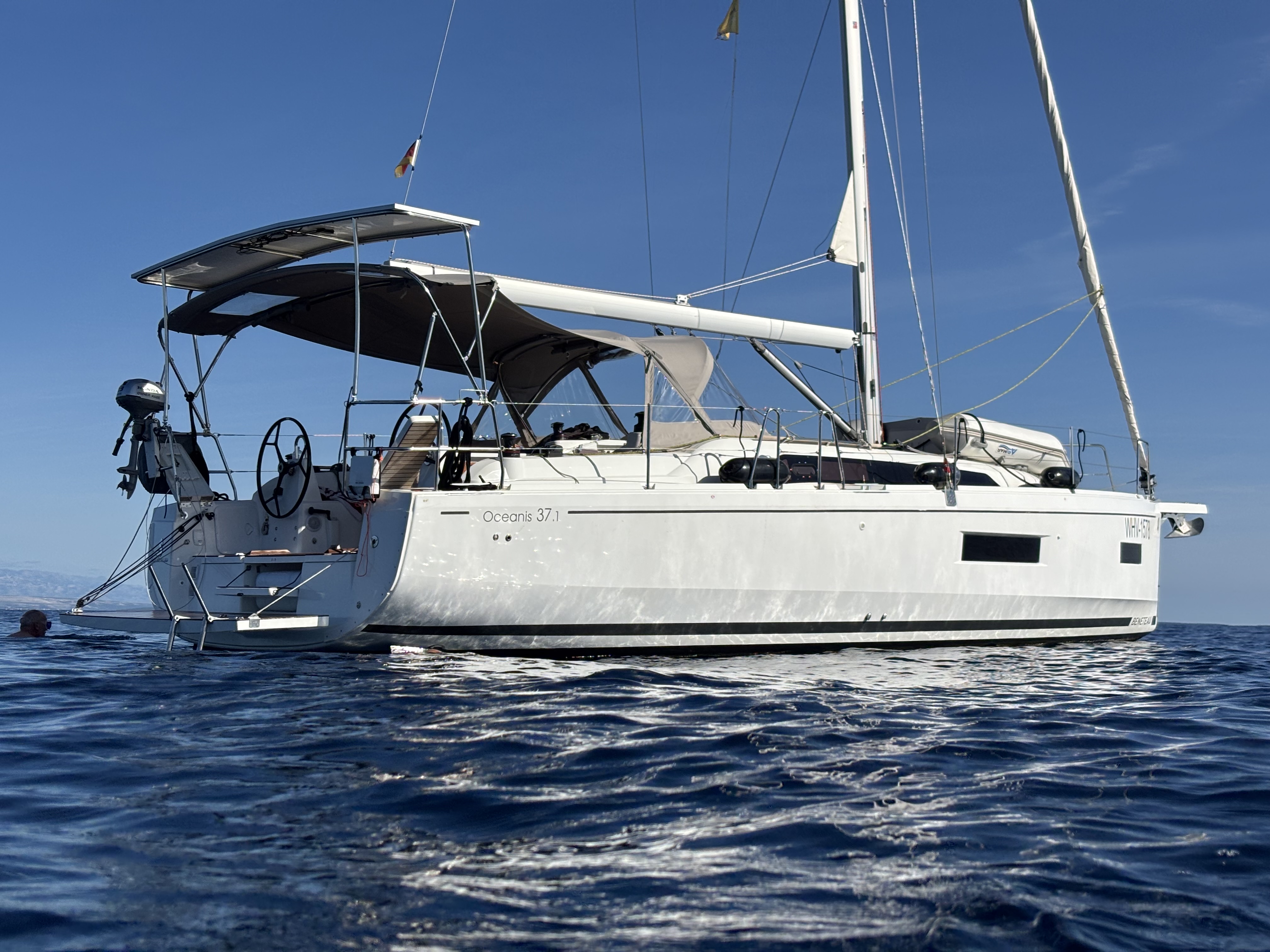 | Safety | AIS Empfänger, Ankerlicht, Automatikwesten, Autopilot, Bootmesser, Bootsmannstuhl, Bordapotheke, Bordwerkzeug, Bugstrahlruder, elektr. Bilgepumpe, Feuerlöscher, Flaggen, Handbilgepumpe, Navigationslichter, Nebelhorn, Notpinne, Notsignale, Rettungsinsel, Rettungskragen, Taschenlampe, UKW-Funk, Zweitanker |
