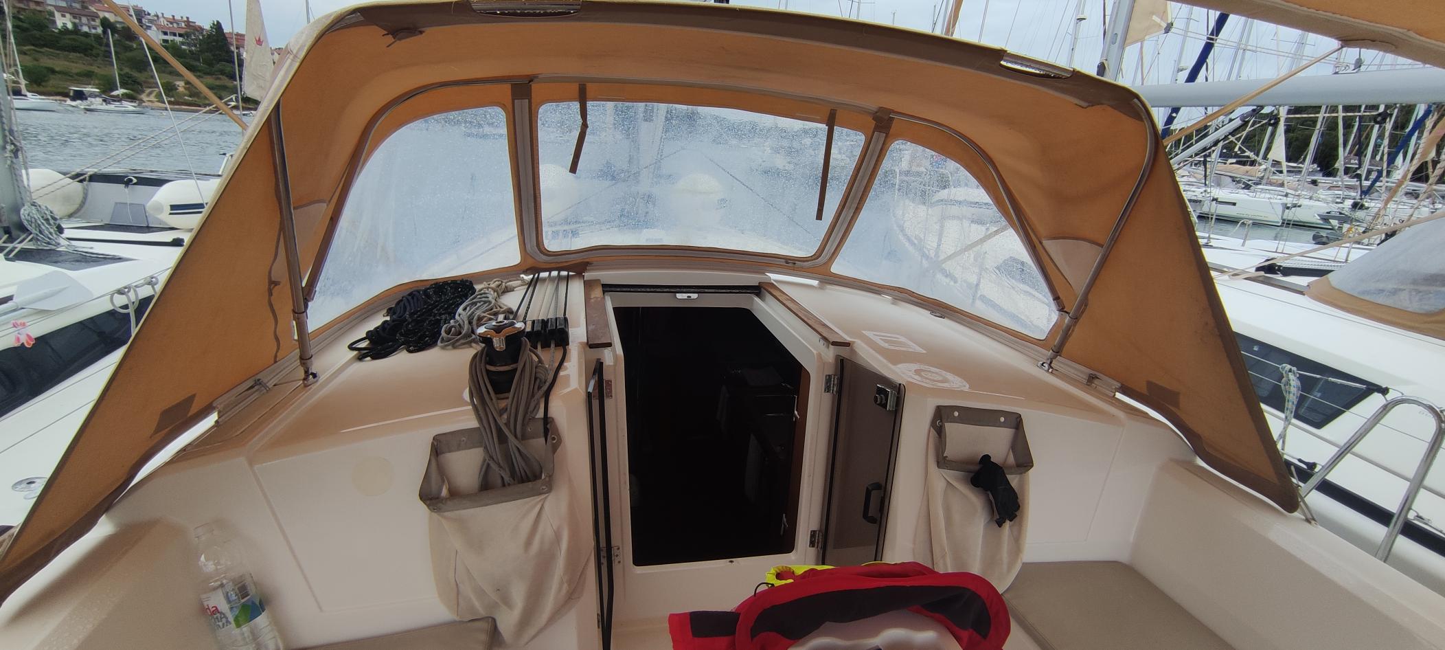 | Safety | Autopilot, Bootsmannstuhl, Bordapotheke, Bordwerkzeug, Bugstrahlruder, elektr. Bilgepumpe, Feststoffschwimmwesten, Feuerlöscher, Navigationslichter, Nebelhorn, Notpinne, Notsignale, Radarreflektor, Taschenlampe, UKW-Funk, Zweitanker |