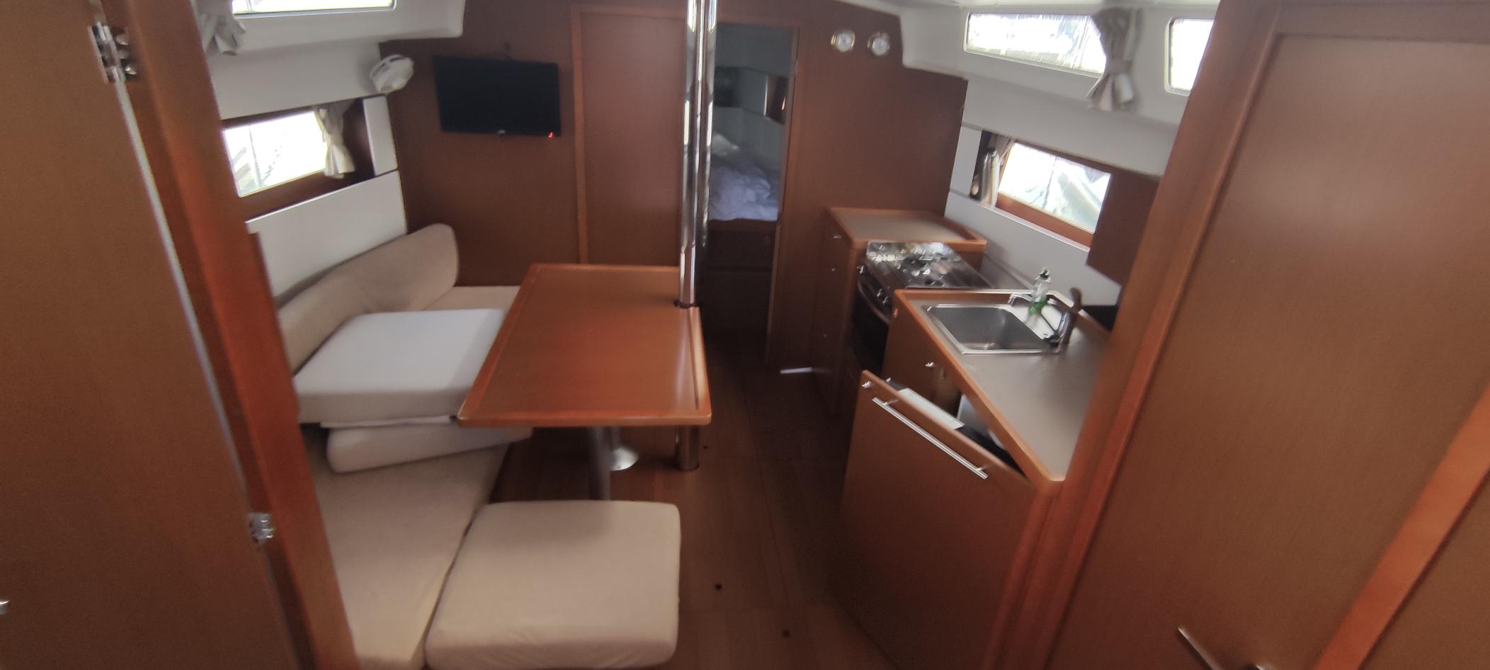 | Inside | Borduhr, elektr. Druckwasserpumpe, Kühlschrank, Ladegerät, Landstromkabel, LCD Fernseher + DVD, Luftpumpe für Beiboot, Radio mit CD oder MP3, Salontisch absenkbar, Trichter, Warmwasser |
