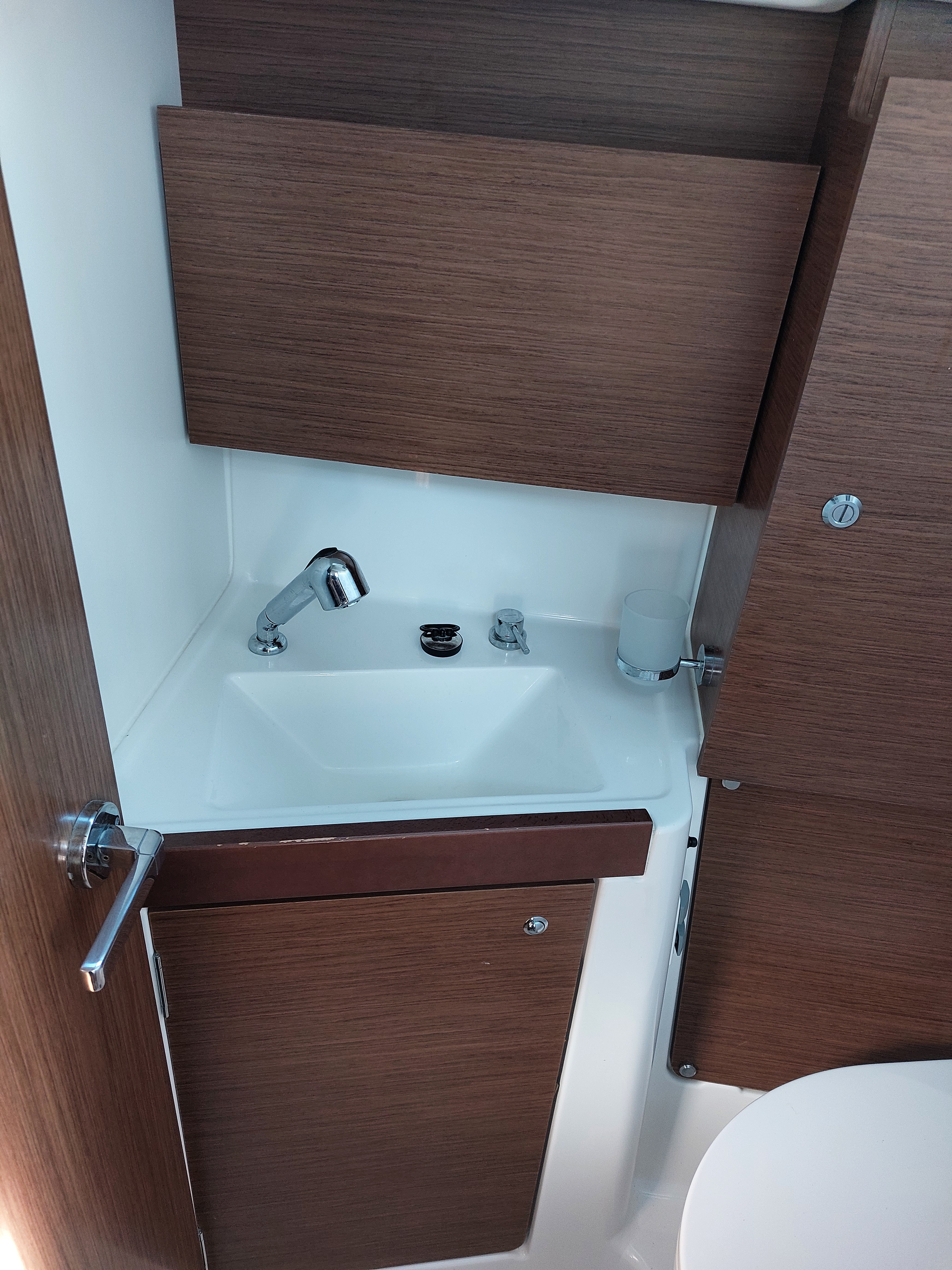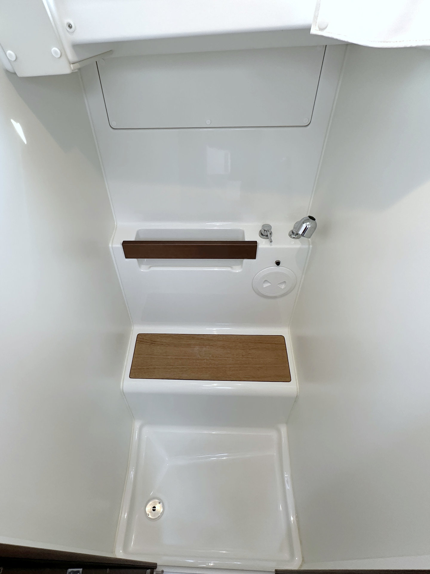 | Outside | 12 V-Anschluss, 220 V-Landanschluss, Anker mit Kette, Badeleiter, Badeplattform, Biminitop, Cockpitdusche warm/kalt, Cockpitlautsprecher, Cockpitpolster, Cockpittisch, elektr. Ankerwinsch, Gangway, Lifeline System, Sprayhood, Teak im Cockpit |