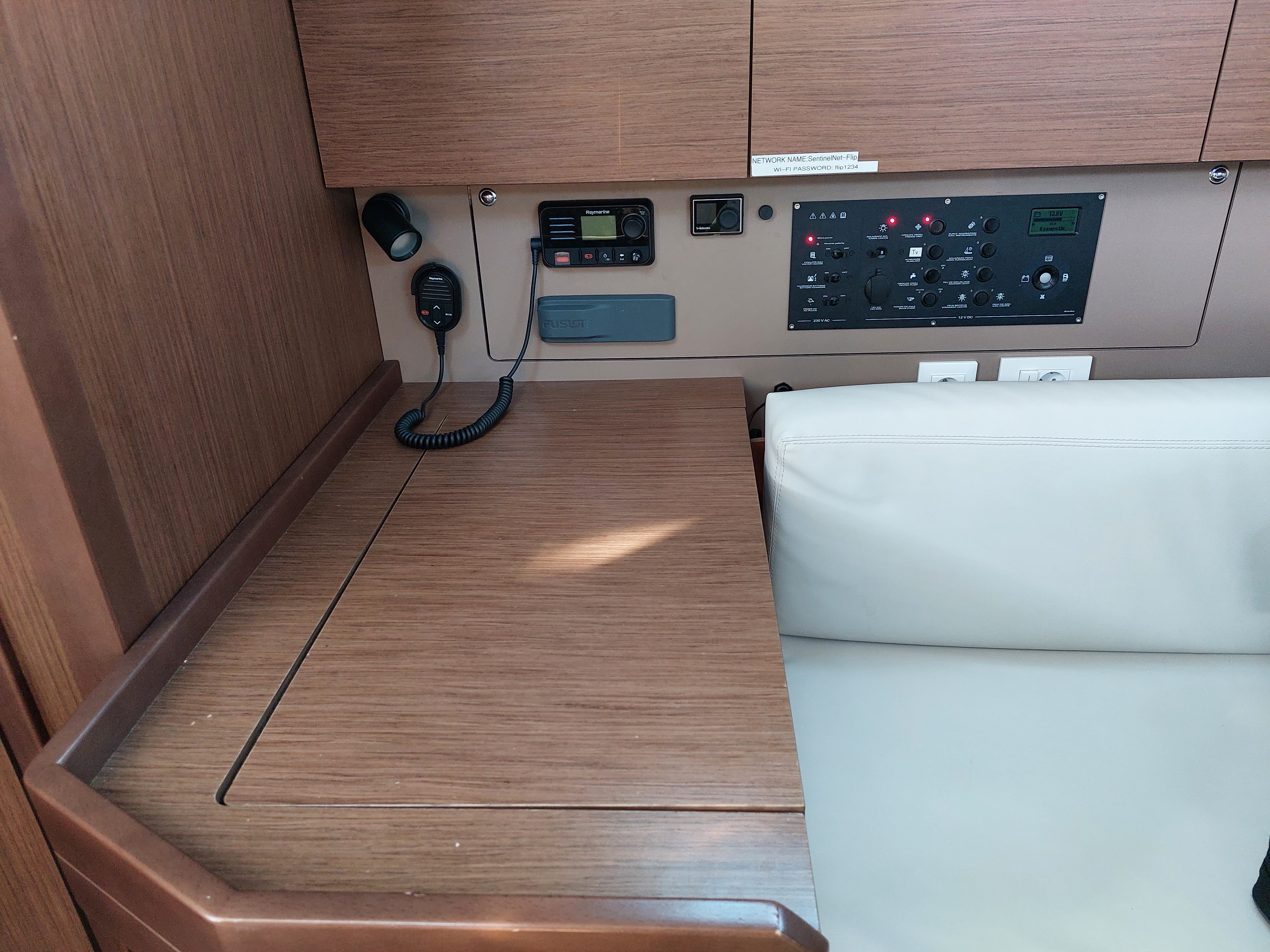 | Safety | AIS Empfänger, Automatikwesten, Autopilot, Blitzboje, Bootsmannstuhl, Bugstrahlruder, Feuerlöscher, Notsignale, Rettungsinsel, UKW-Funk |