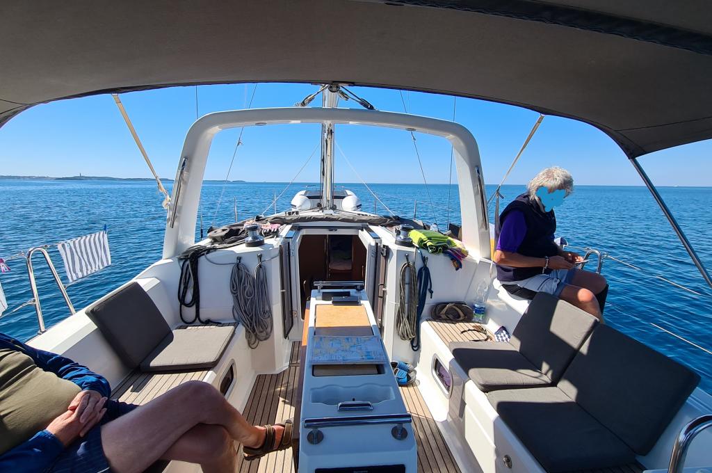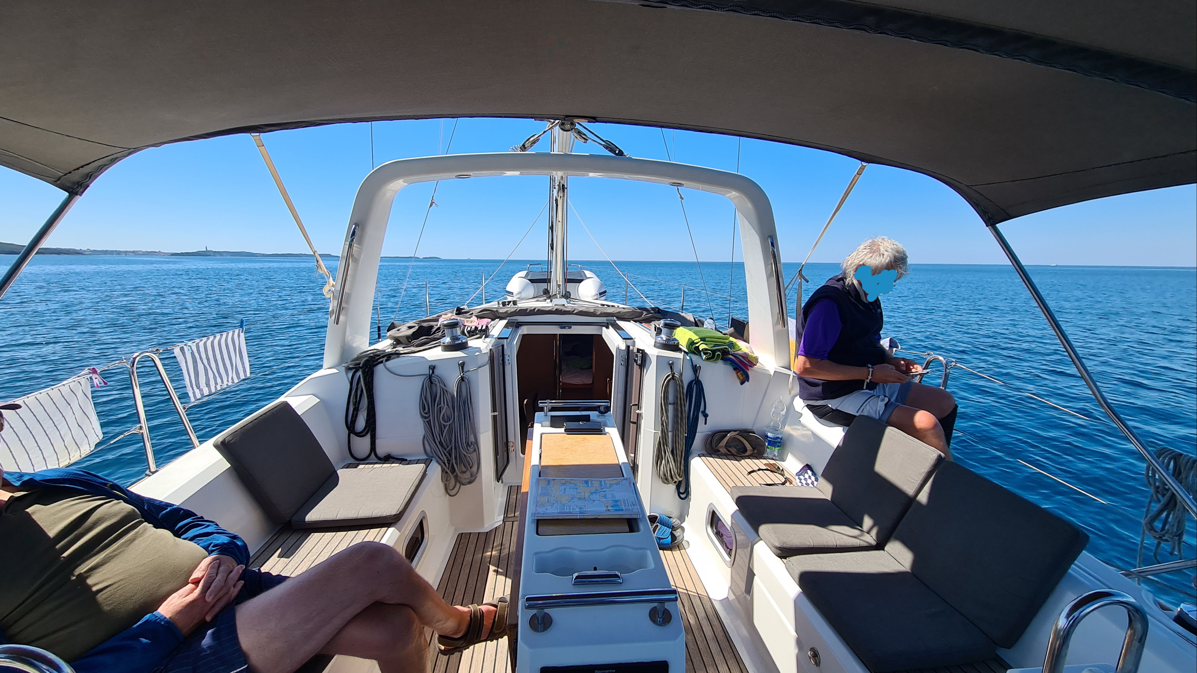 | Navigation | Barometer, Fernglas, GPS mit Kartenplotter im Cockpit, Hafenhandbücher, Handpeilkompass, iPad, Kompass, Navigationsbesteck, Seekarten, Tridata (Log, Echolot, Windm.), Windmesser |