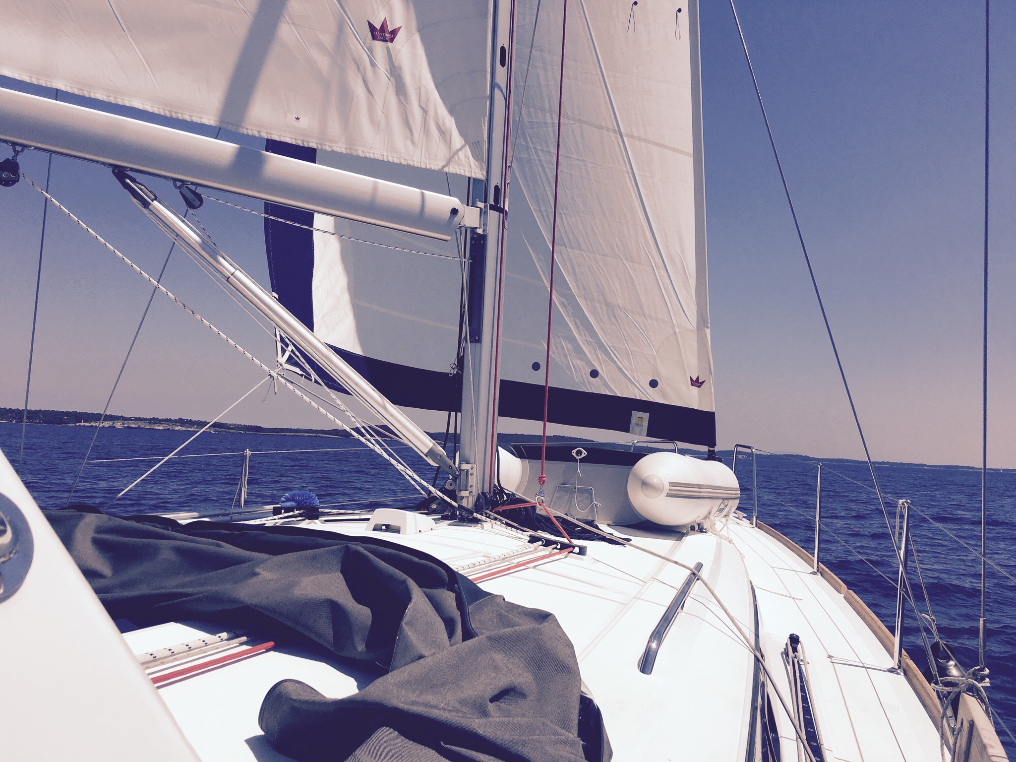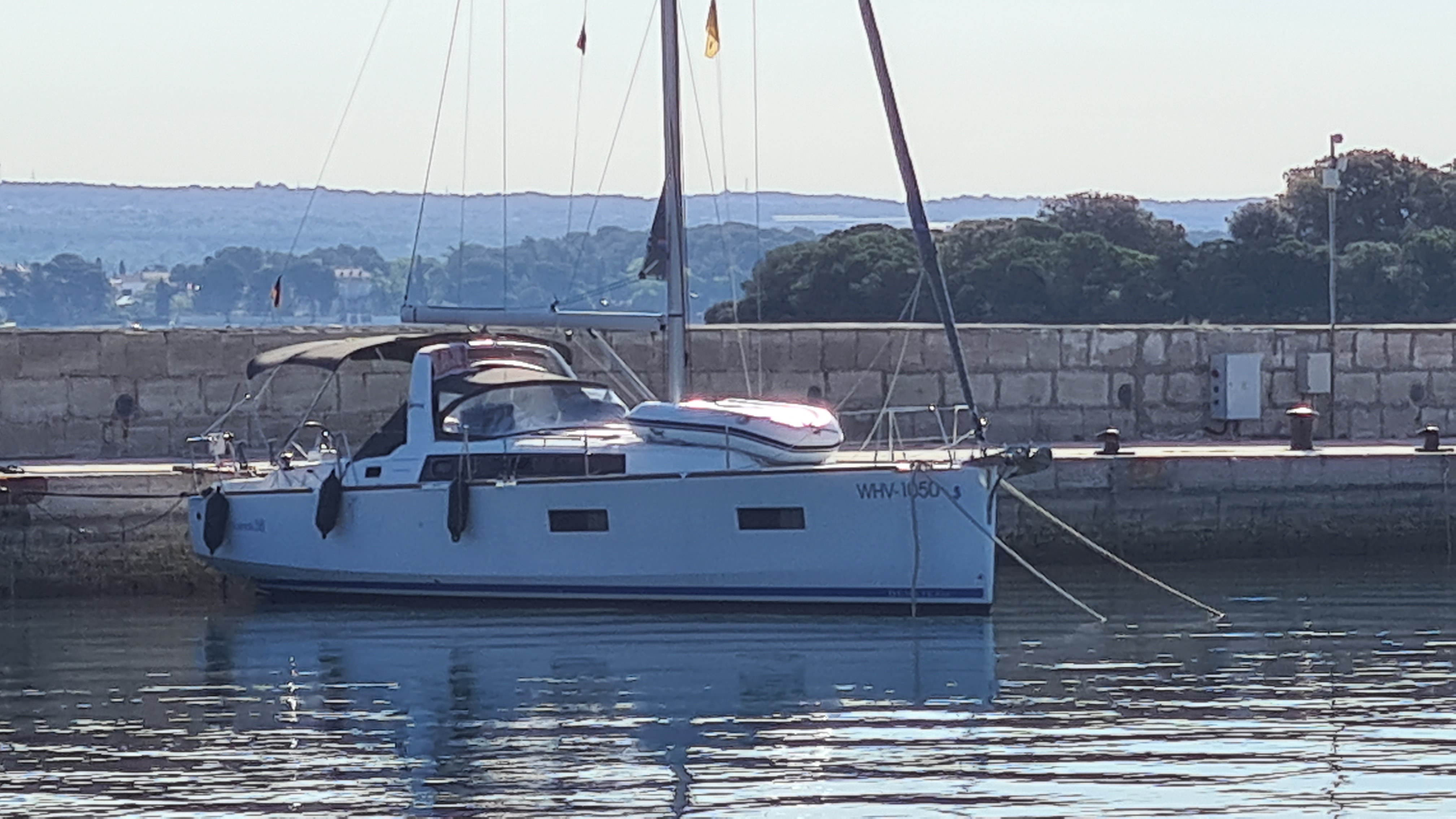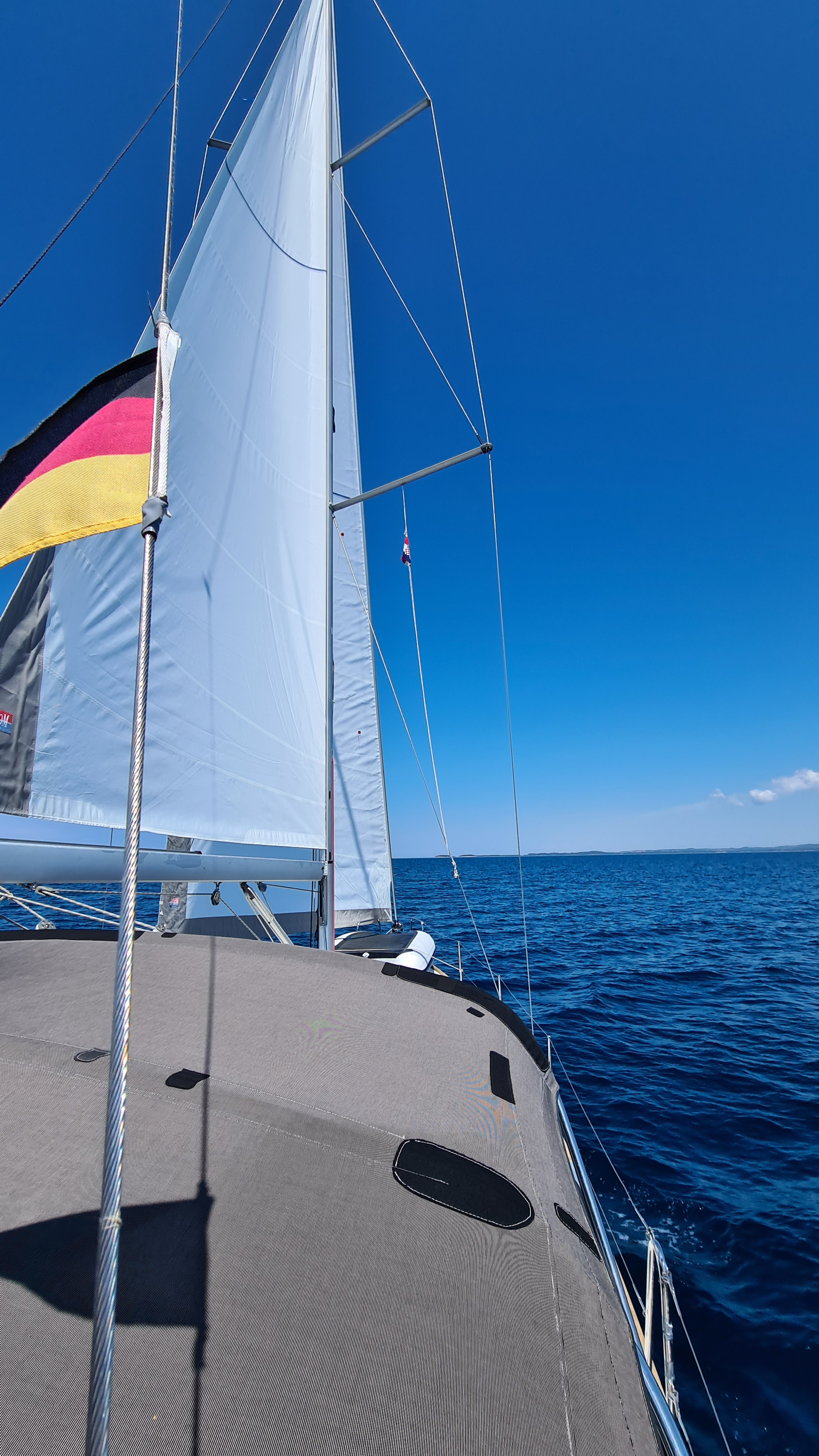 technischer Zustand yacht, gut, blöd war dass gerade die Umlenkrolle für das Seil des Baumniederholers am mast im gegensatz zu den anderen für dirk, großschot, .. bei genauerem hinsehen völliges spielzeug war, das viel zu klein für den baumniederholer war, hinten das obere Drahtseil für die Reling war auch viel zu labbrig, also lang. Sonst war technisch alles perfekt!
