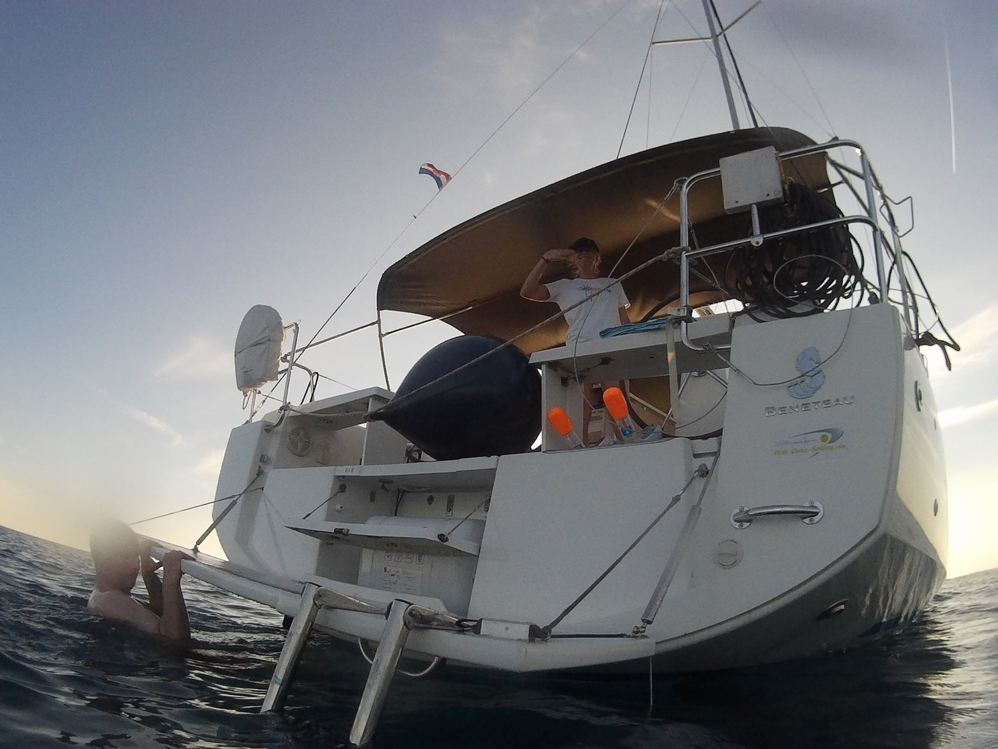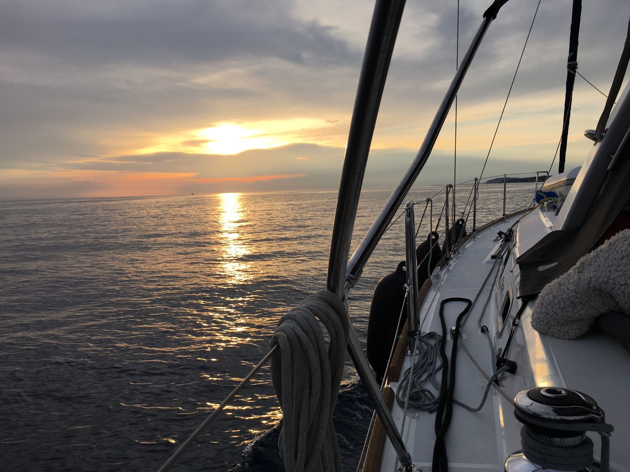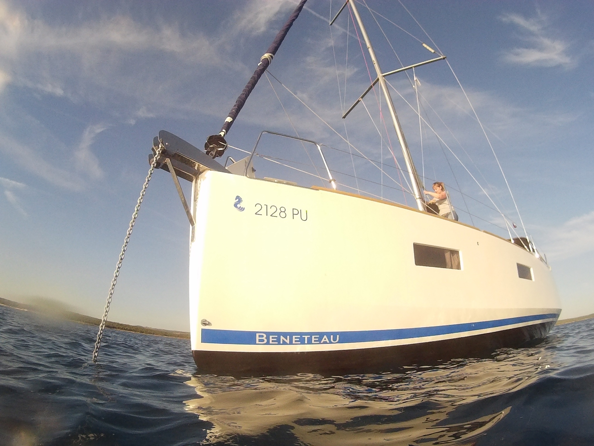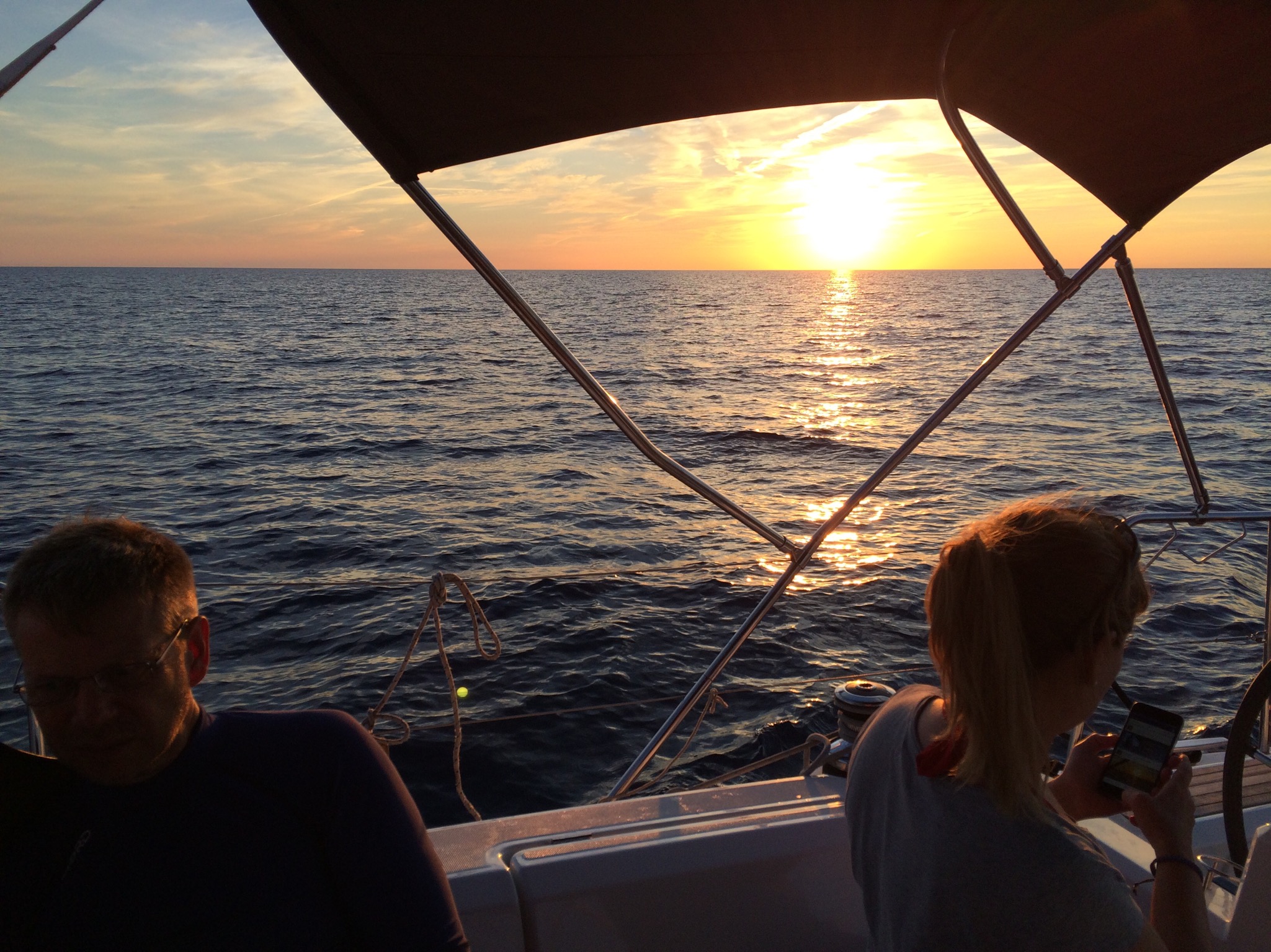 technischer Zustand yacht, gut, blöd war dass gerade die Umlenkrolle für das Seil des Baumniederholers am mast im gegensatz zu den anderen für dirk, großschot, .. bei genauerem hinsehen völliges spielzeug war, das viel zu klein für den baumniederholer war, hinten das obere Drahtseil für die Reling war auch viel zu labbrig, also lang. Sonst war technisch alles perfekt!